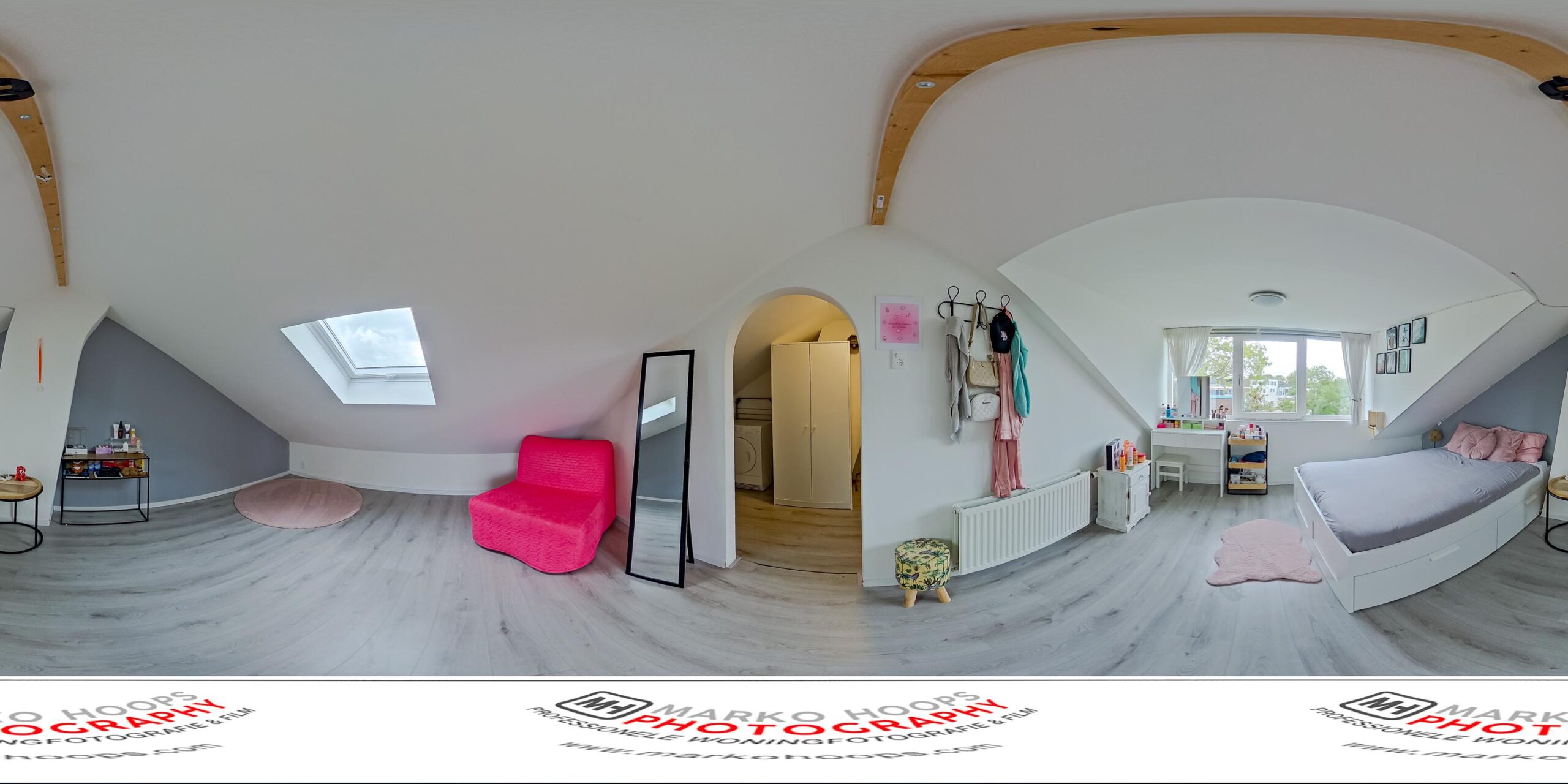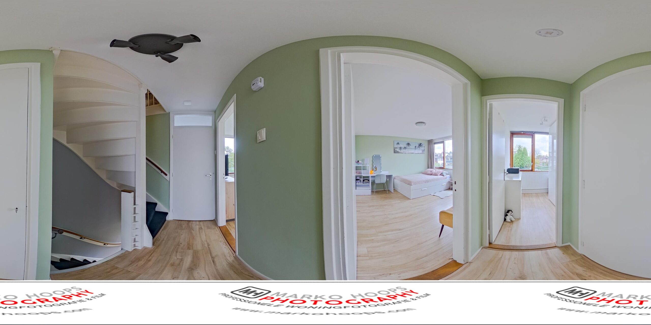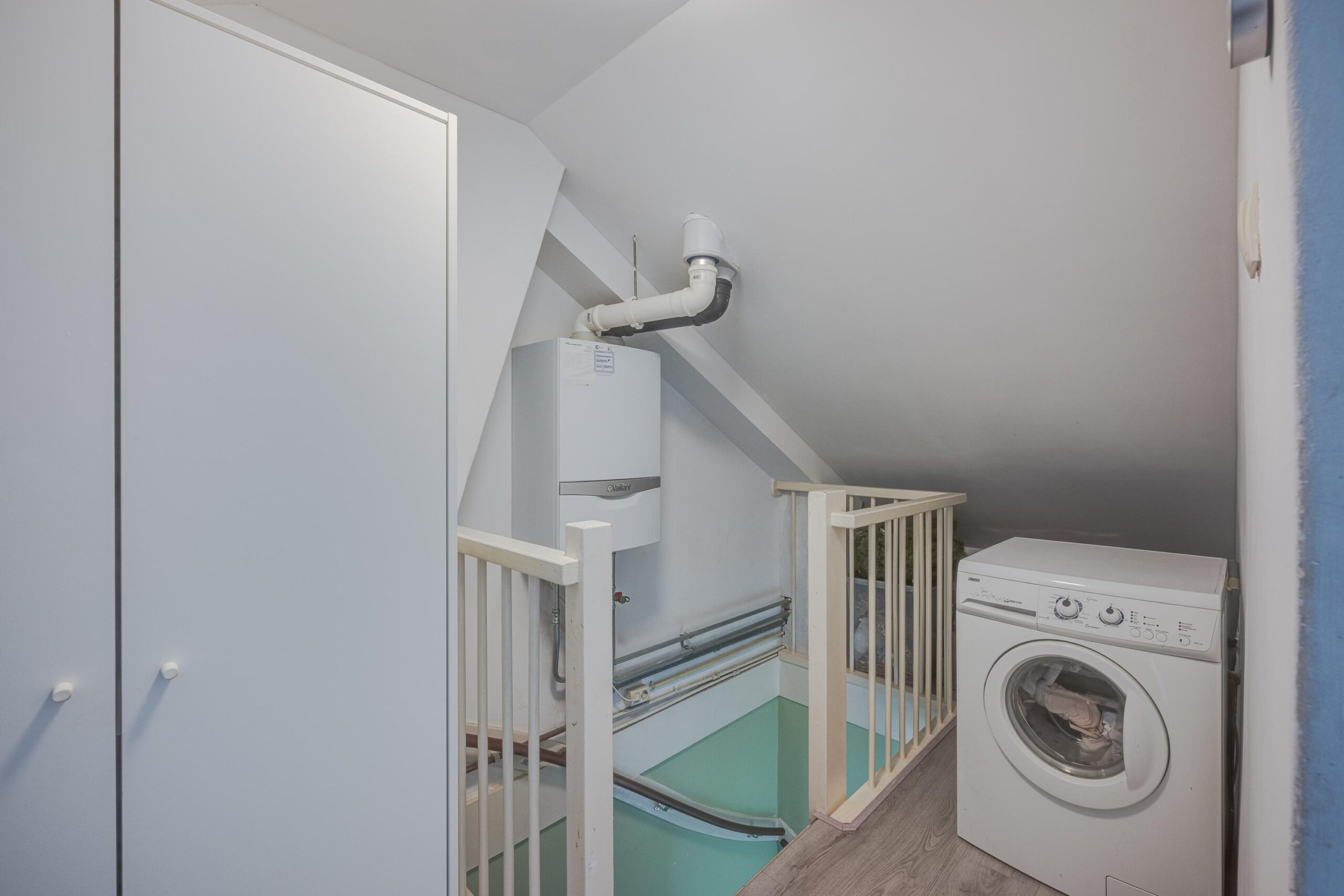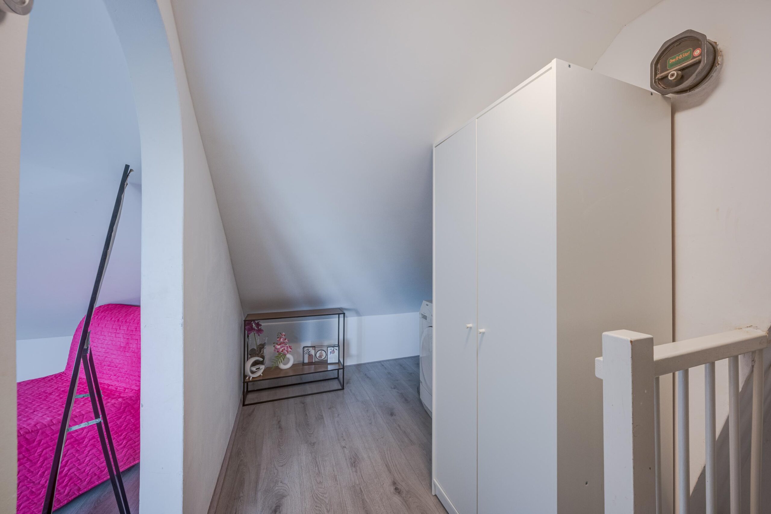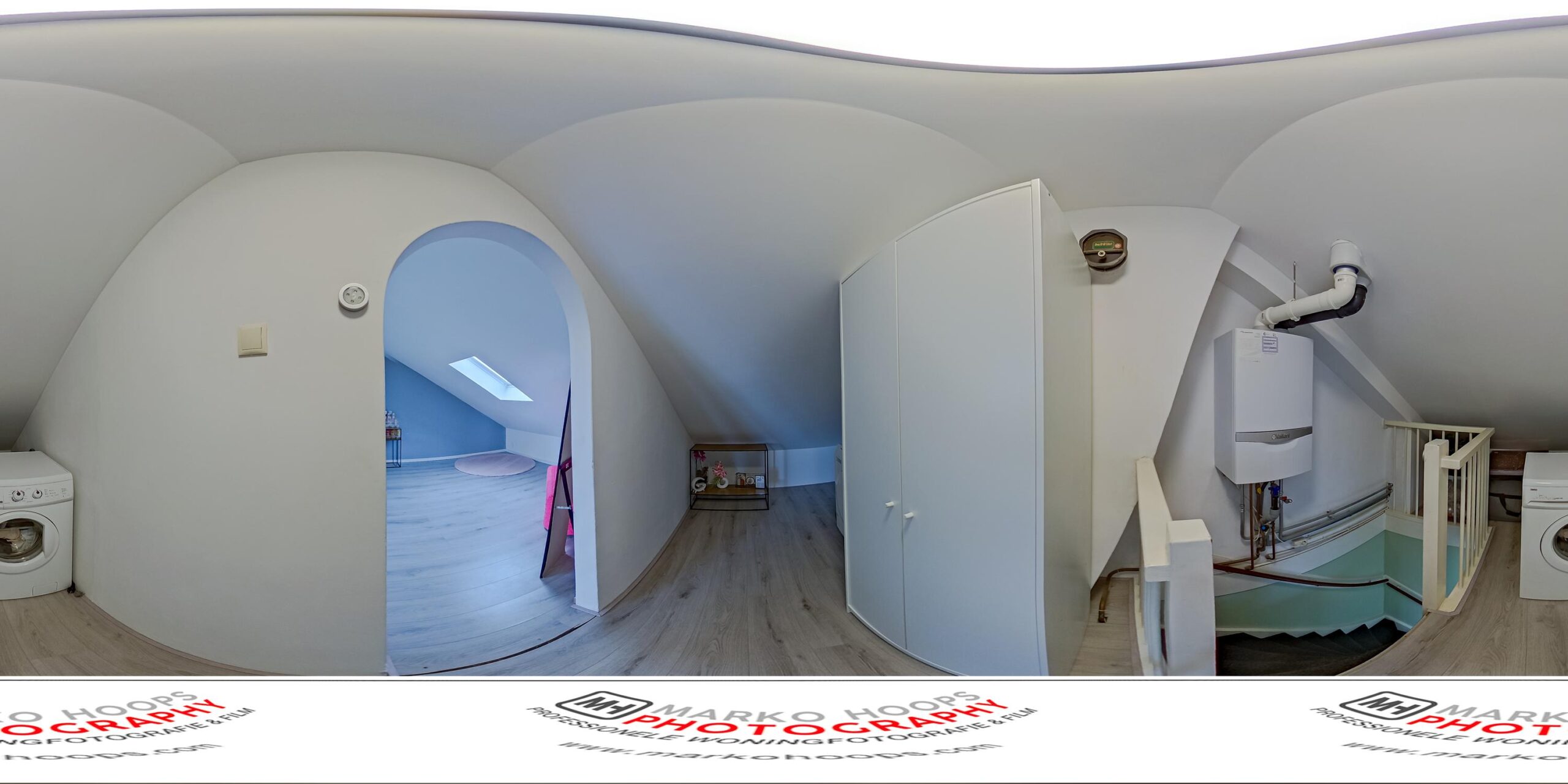 Tweede verdieping: Overloop met wasmachine aansluiting en toegang tot zeer ruime slaapkamer vier.