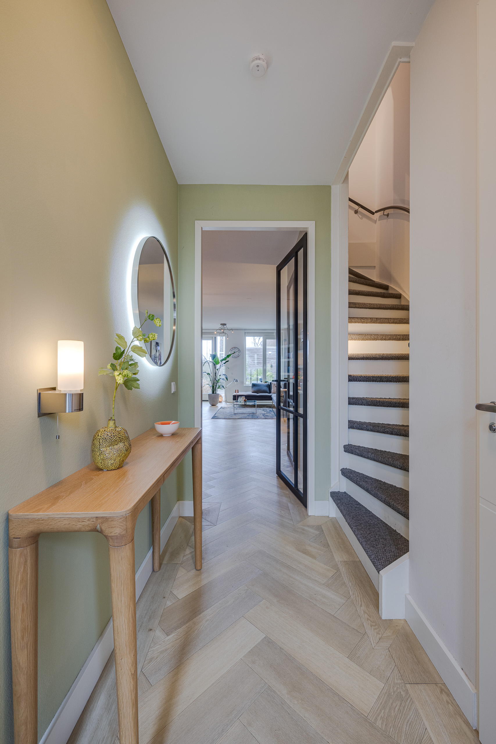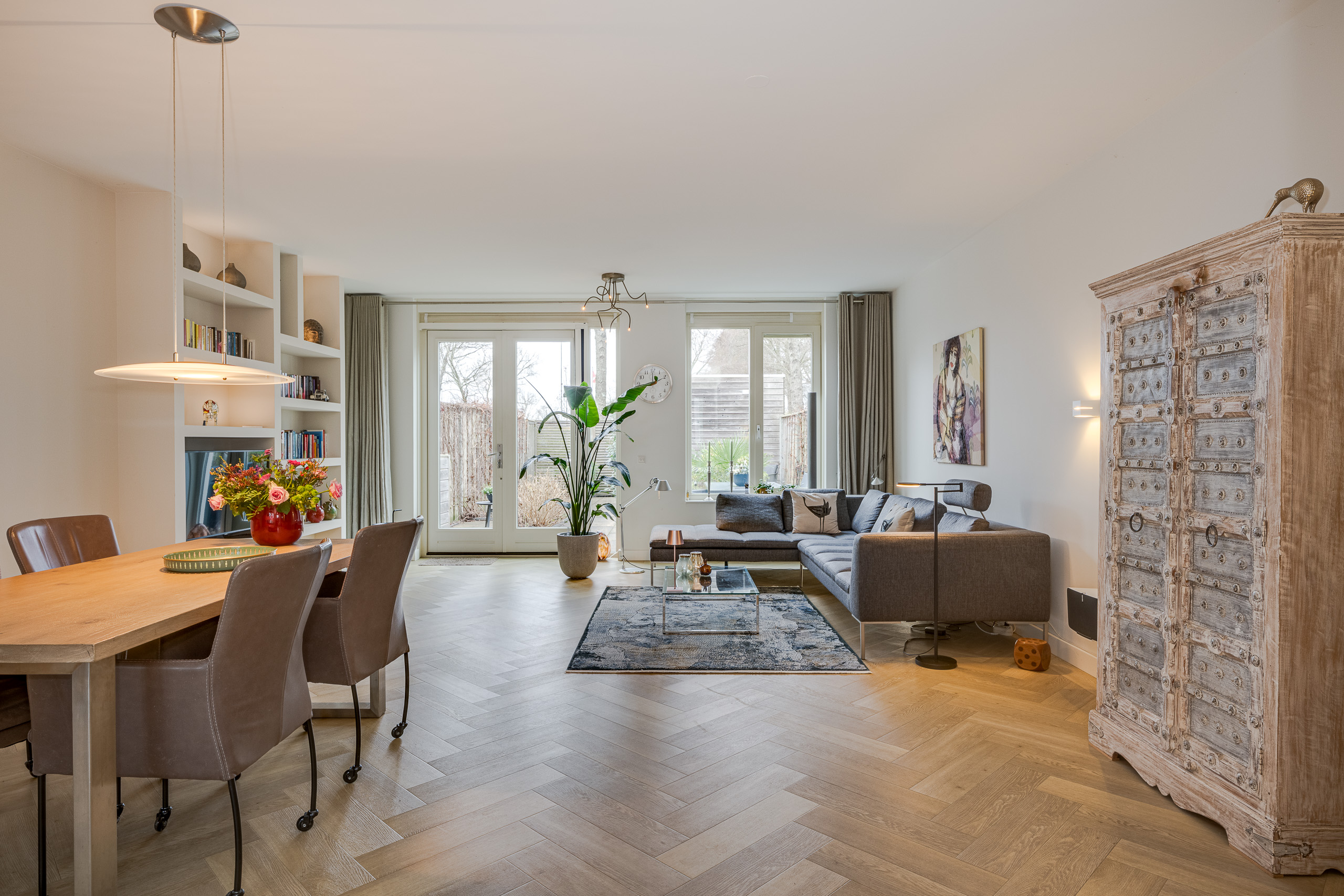 In één van de meeste gewilde woonwijken van Voorschoten “Het Voorsche Park” ligt deze drie-onder-1 kap tussenwoning uit 2010. Een prachtig Herenhuis met aan de achterzijde vrij uitzicht op het weiland. Een in topstaat verkerende vijfkamer woning (voorheen zes-kamer woning). De huidige eigenaren hebben een tussenwand op de eerste verdieping verwijderd, waardoor er een grote slaapkamer is ontstaan. Deze wand is op eenvoudige wijze weer terug te plaatsen. De woning is door de huidige bewoners altijd met veel liefde bewoond en onderhouden. Dat merk je gelijk bij binnenkomst. In 2018 is de hele woning opnieuw gestyled. Zo zijn de plafonds en wanden op de begane grond gestukt en is er een fraaie stucwerkkast aangebracht. De design deuren springen in het oog. Ook op de eerste verdieping zijn de hoge plafonds en wanden gestukt. De huidige eigenaar heeft op de tweede verdieping veel bergruimte op maat gemaakt. Verder zit er vloerverwarming op alle verdiepingen.