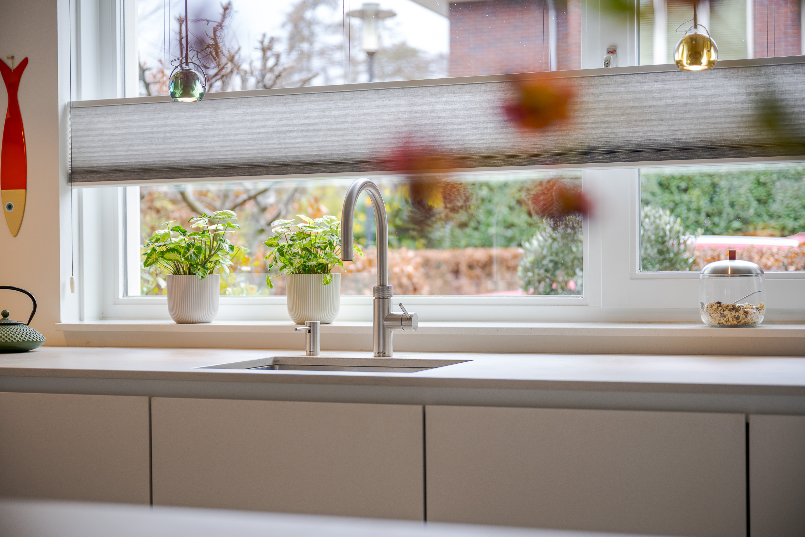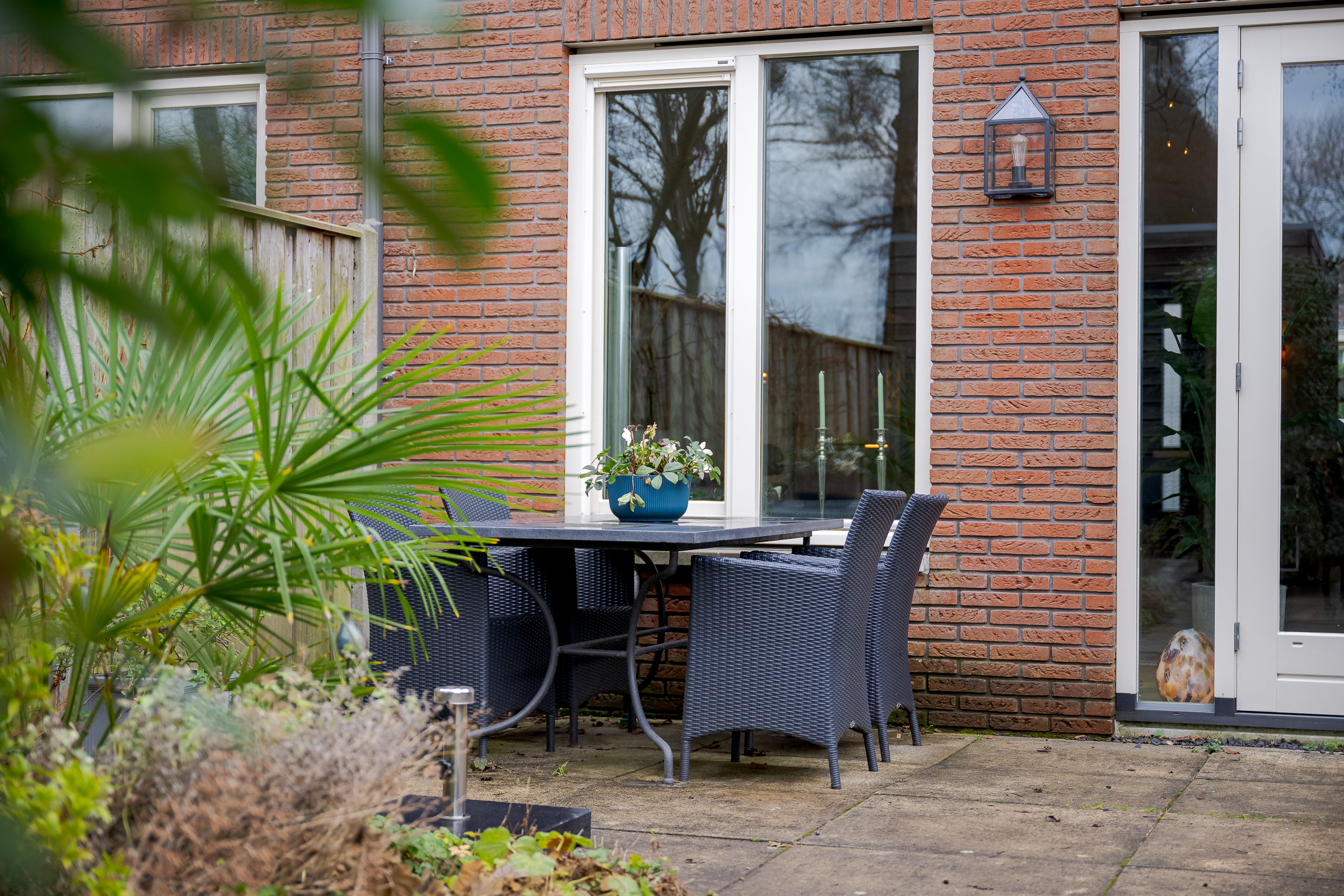 Begane grond: recent aangelegde voortuin met beregening en elektra. Entree woning, hal met meterkast, toilet en trap naar bovengelegen verdieping. Deur naar zeer ruime woonkamer met prachtige luxe keuken (2024) voorzien van alle moderne inbouwapparatuur (o.a. Bora inductieplaat, Qooker, Combi-magnetron, Combi-stoomoven e.d.) Openslaande deuren naar een royale achtertuin met achterom. Voorzien van een dubbelwandige houten schuur, beregening en elektra.