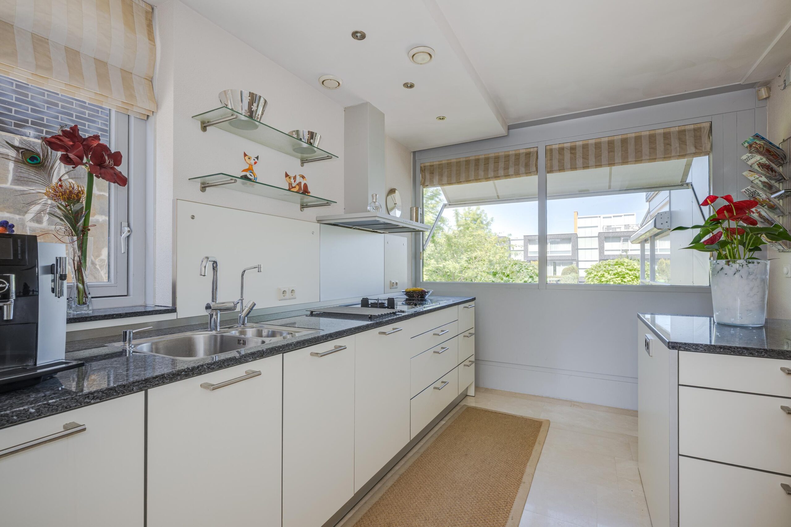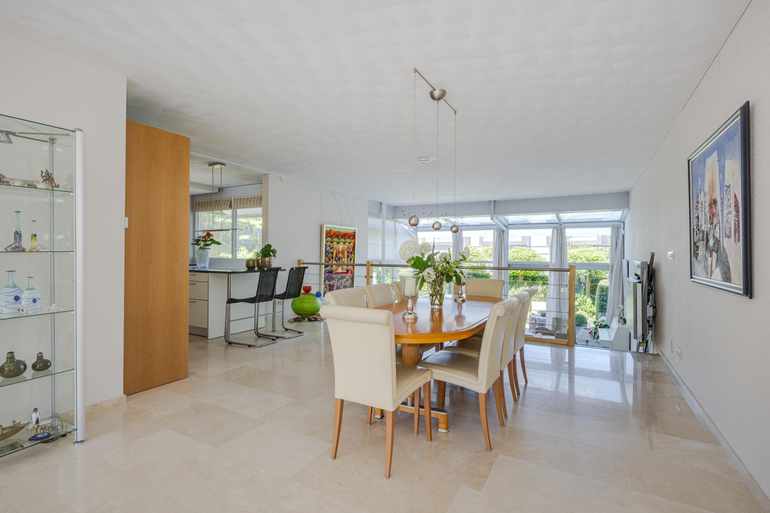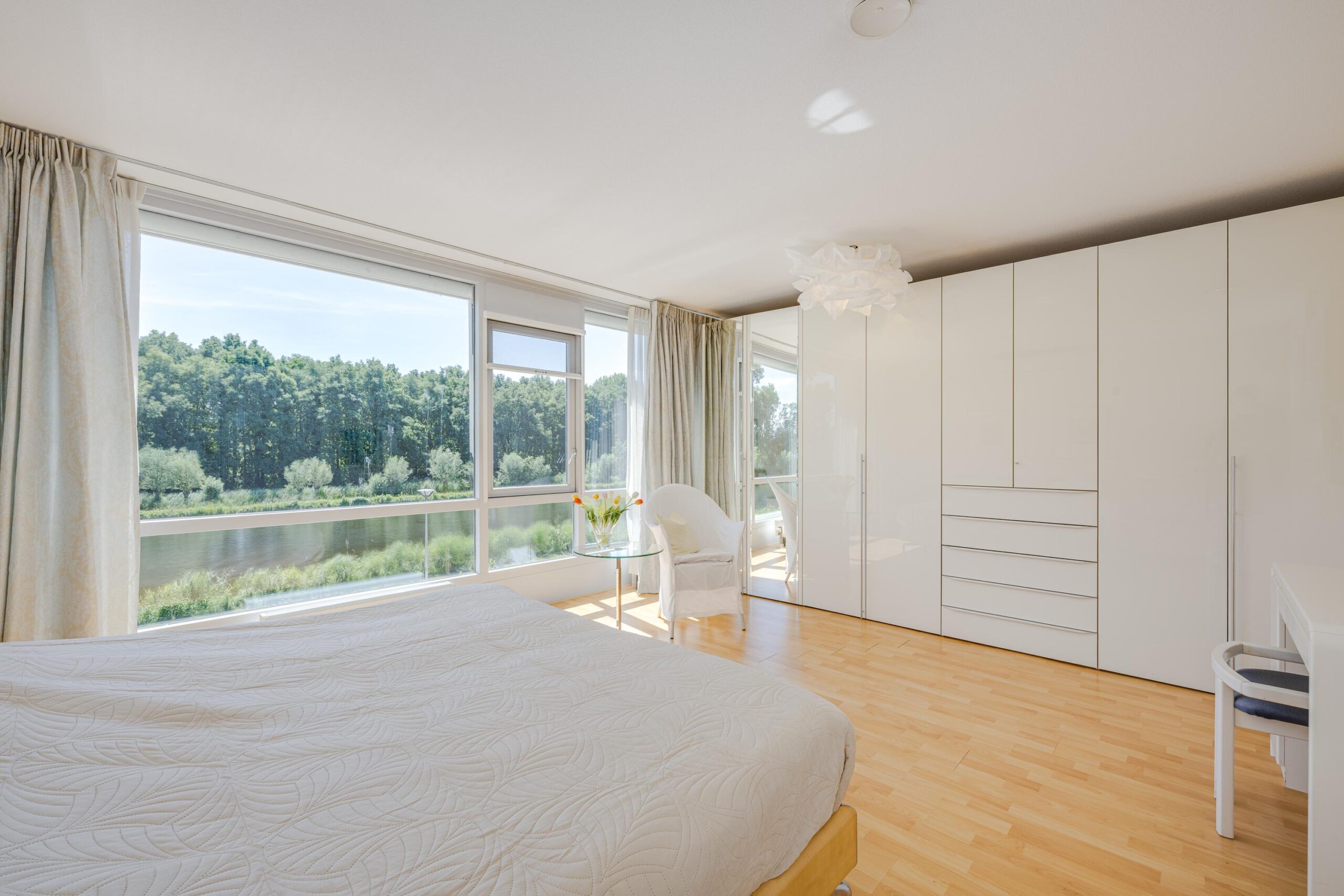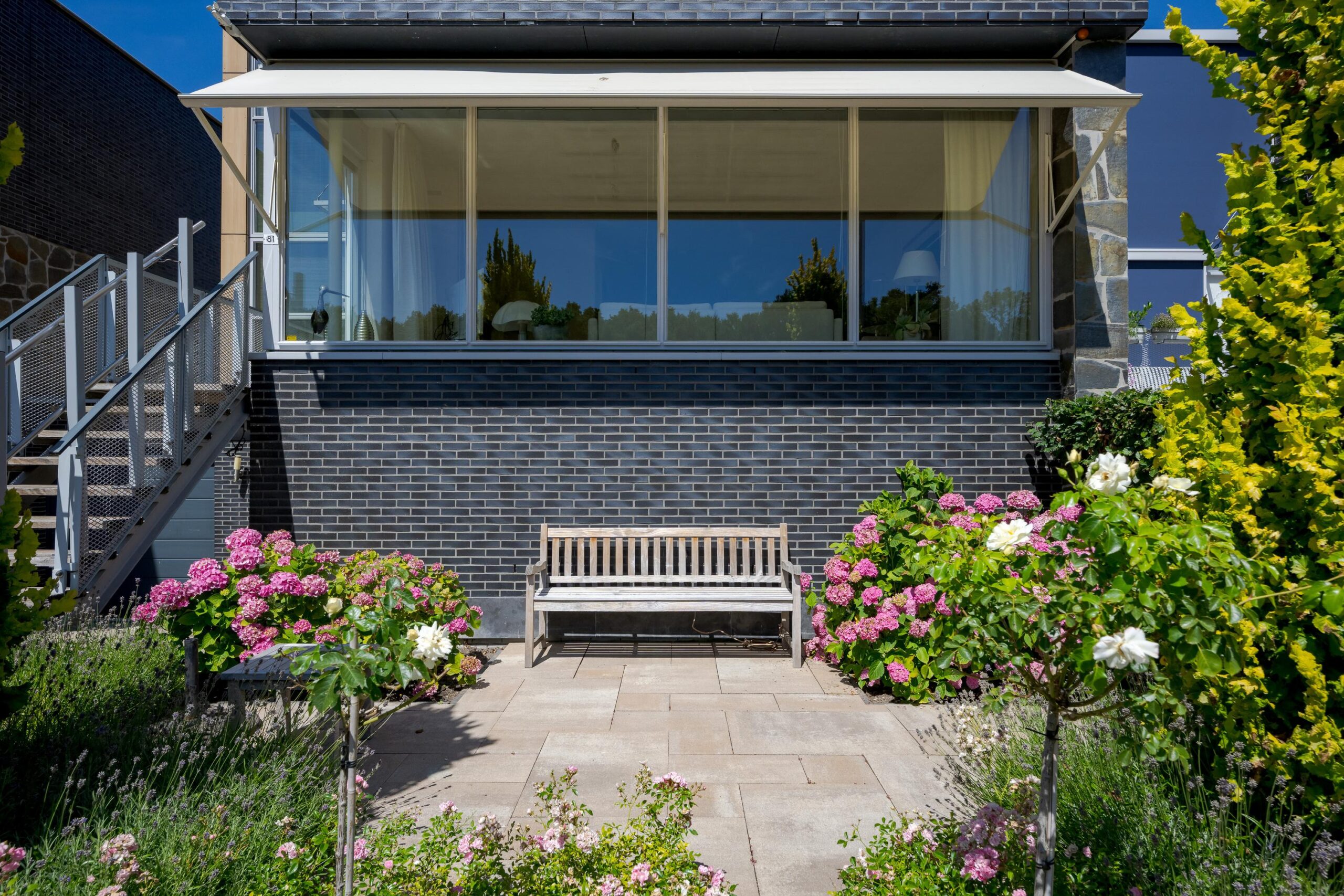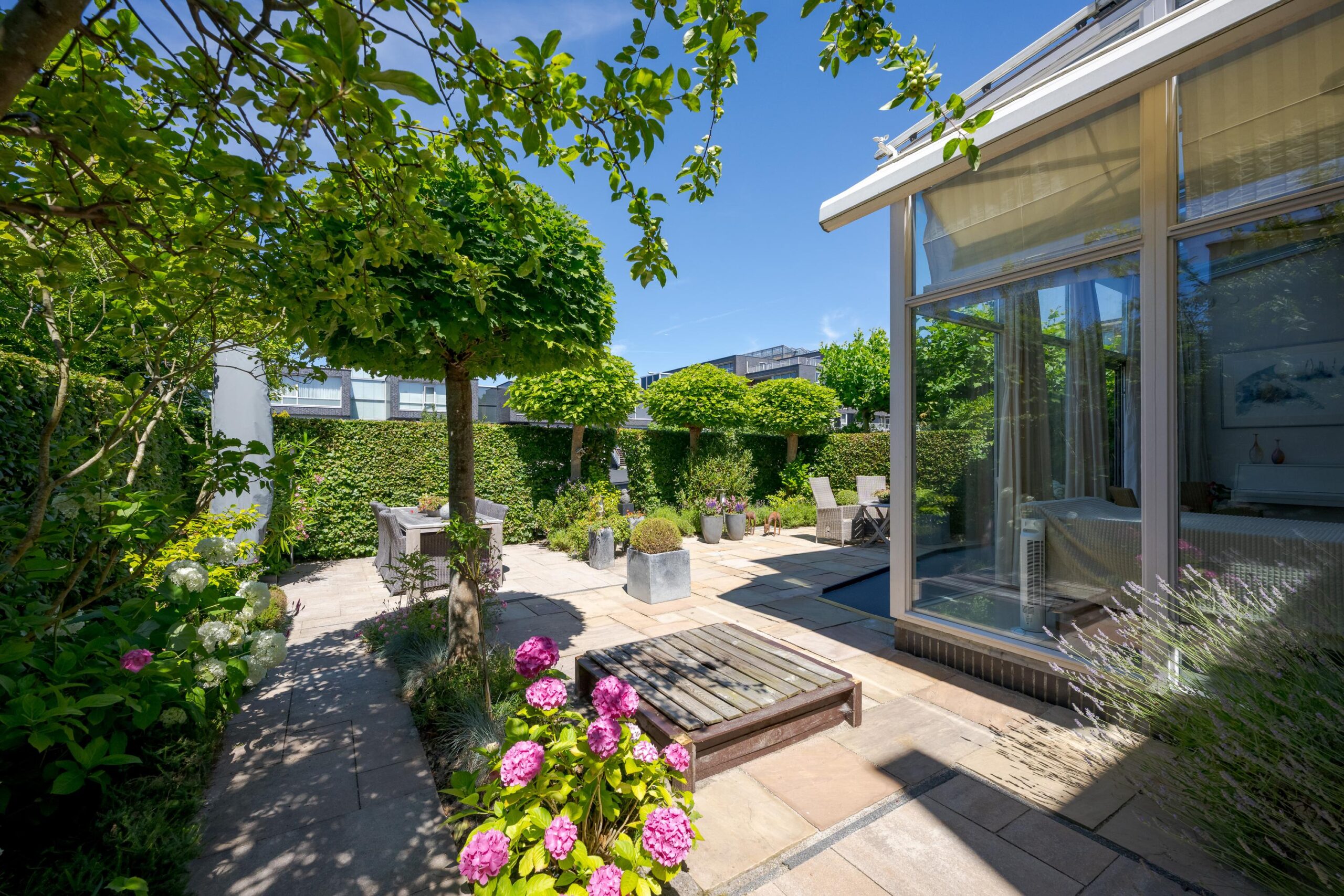 De achtertuin is direct gelegen aan open vaarwater met eigen steiger. Directe toegang naar doorgaand vaarwater de “Vliet”. Dus met de sloep naar bijvoorbeeld de historische Leidse binnenstad of rechtsaf richting Leidschendam en heerlijk lunchen aan de Sluis.