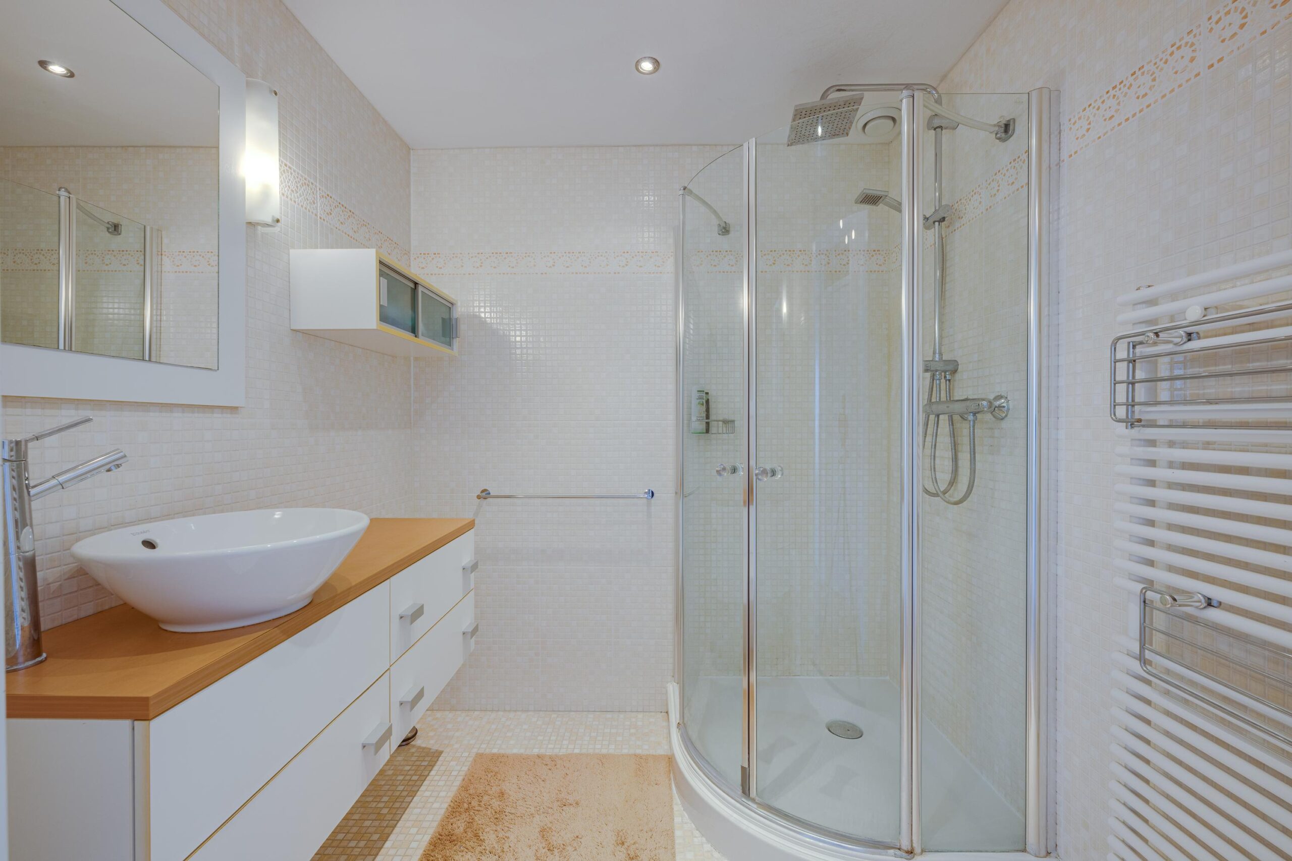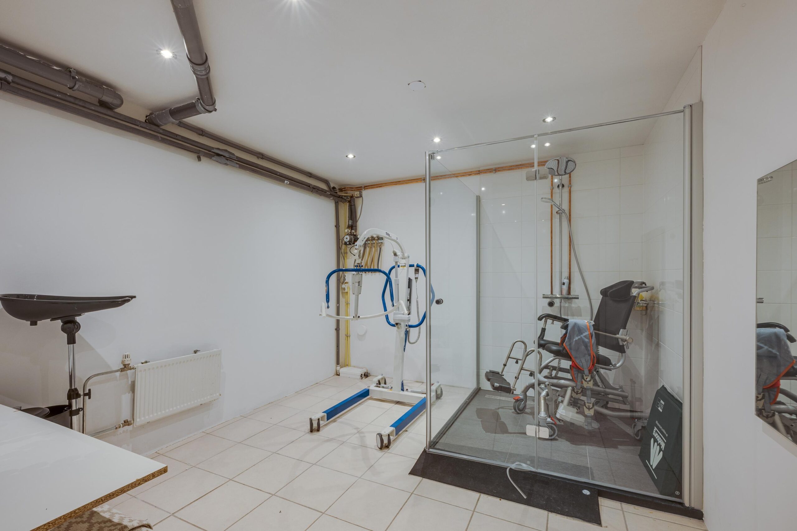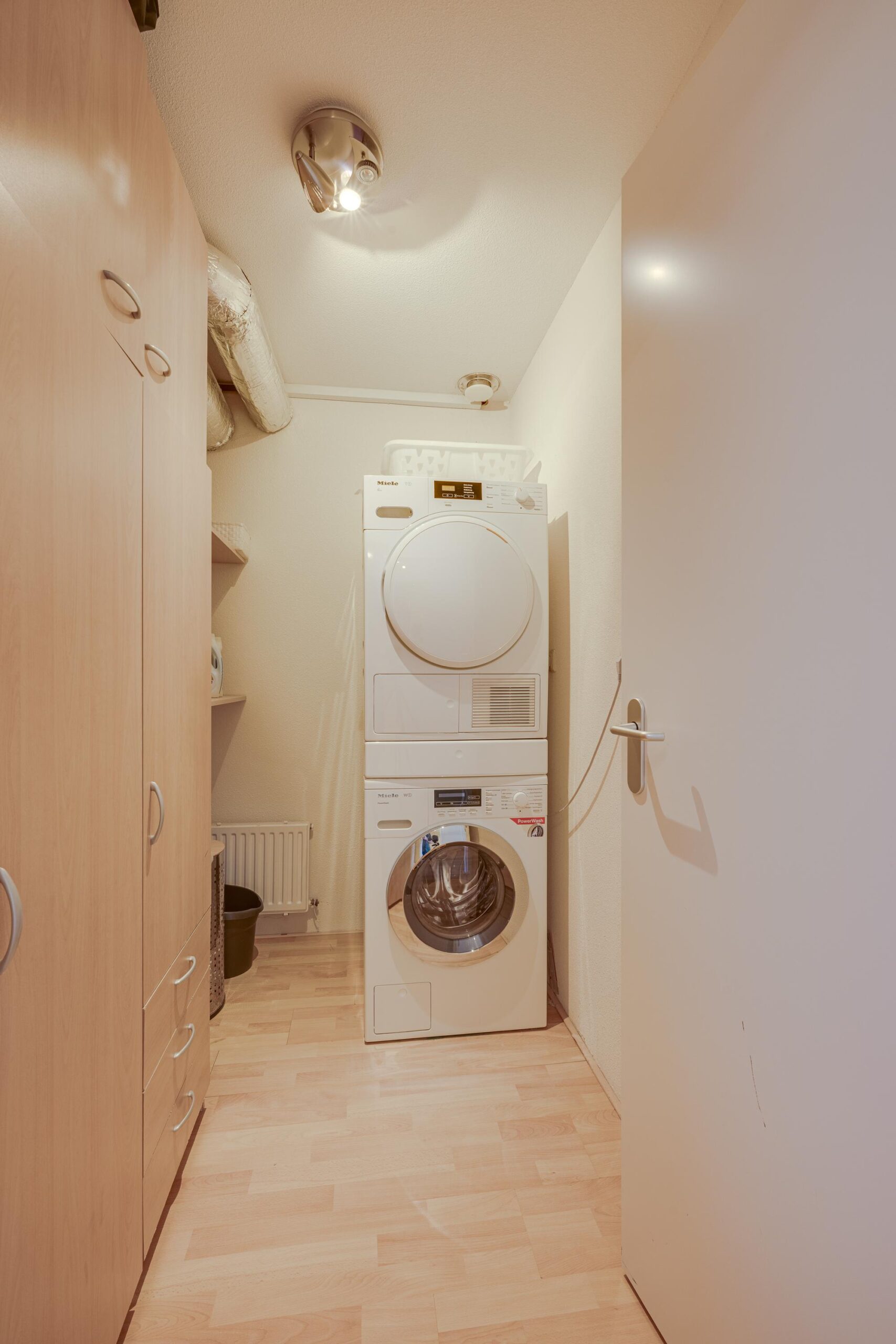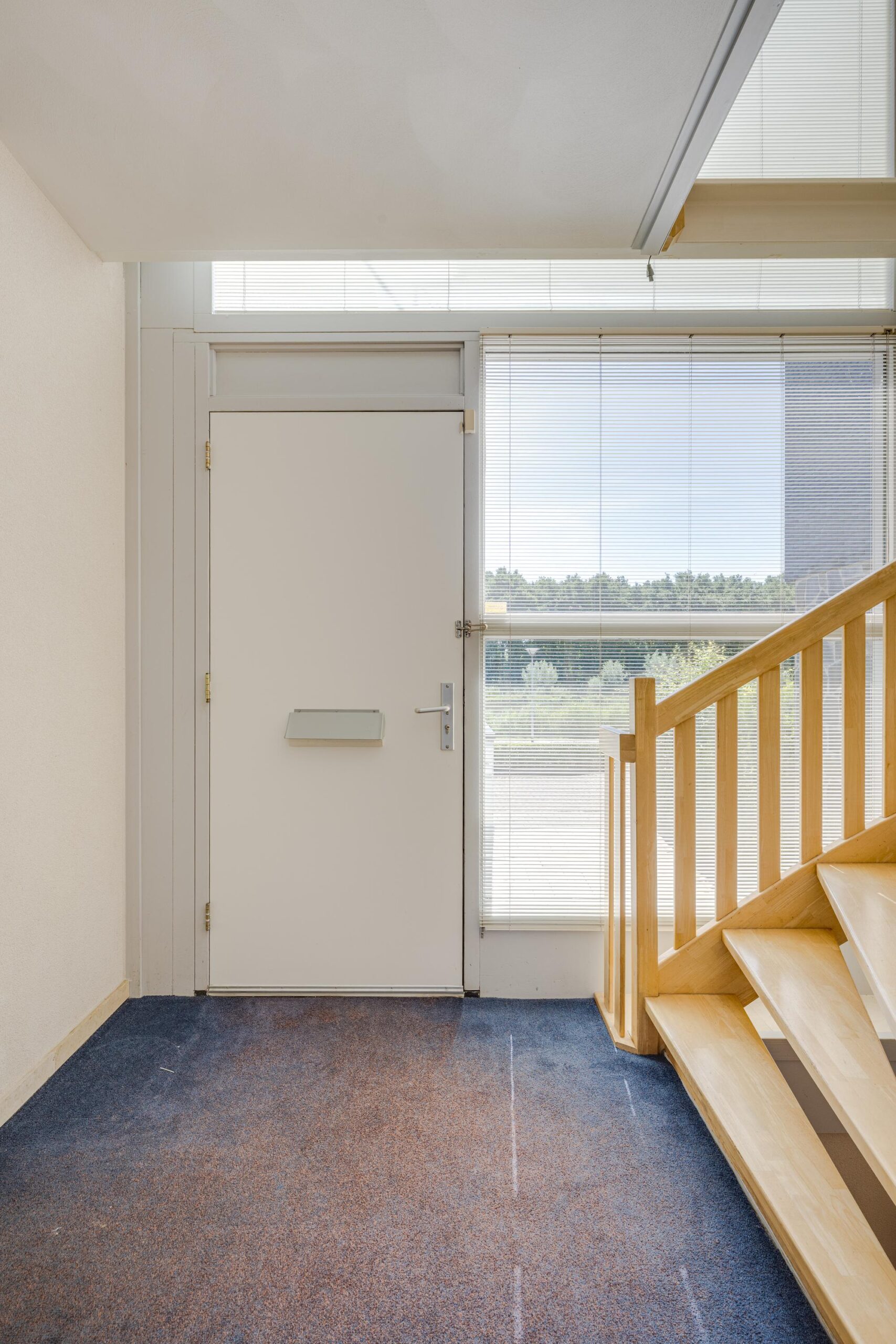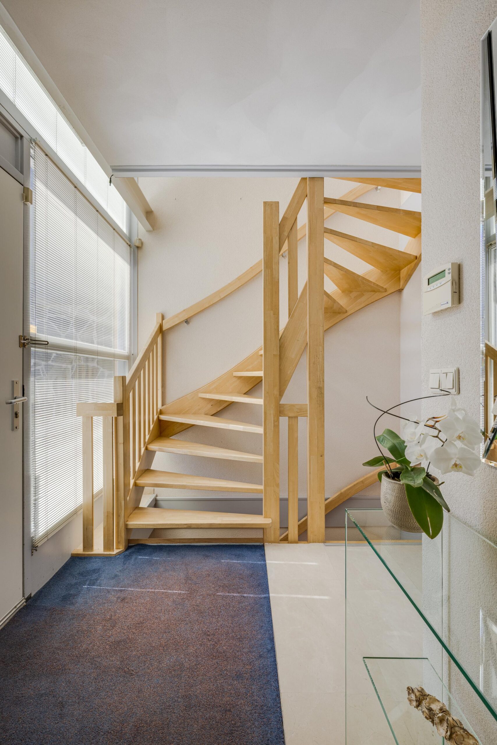 Inpandige garage met ruimte voor auto, fietsen etc en met eigen oprit die ruimte biedt voor een auto. Vanuit de garage is de achtertuin bereikbaar. Overloop met trap naar de begane grond en meterkast. Deur naar gang die toegang biedt tot de ruime hobbykamer, ruime berging en extra badkamer.