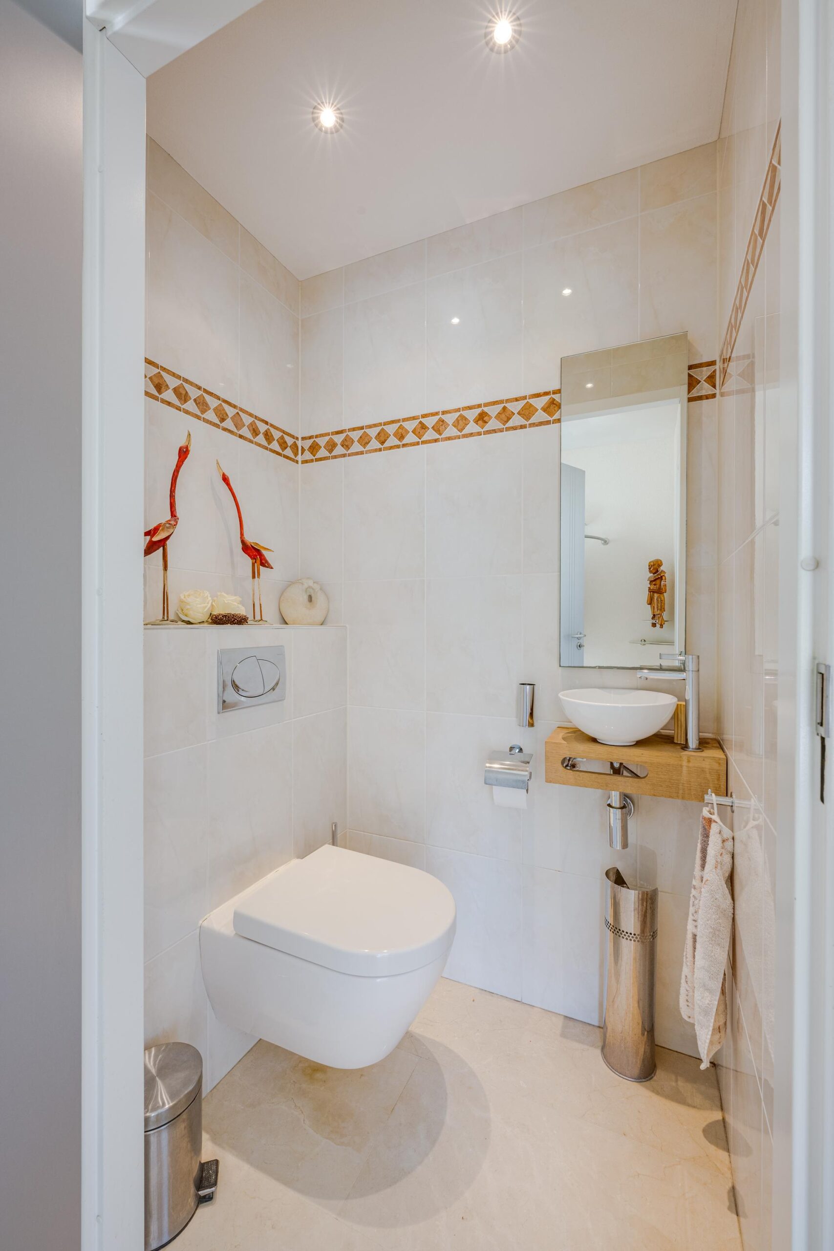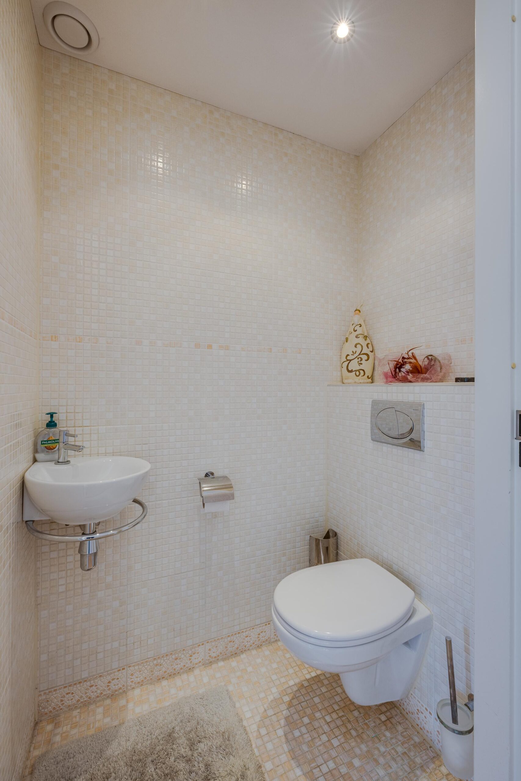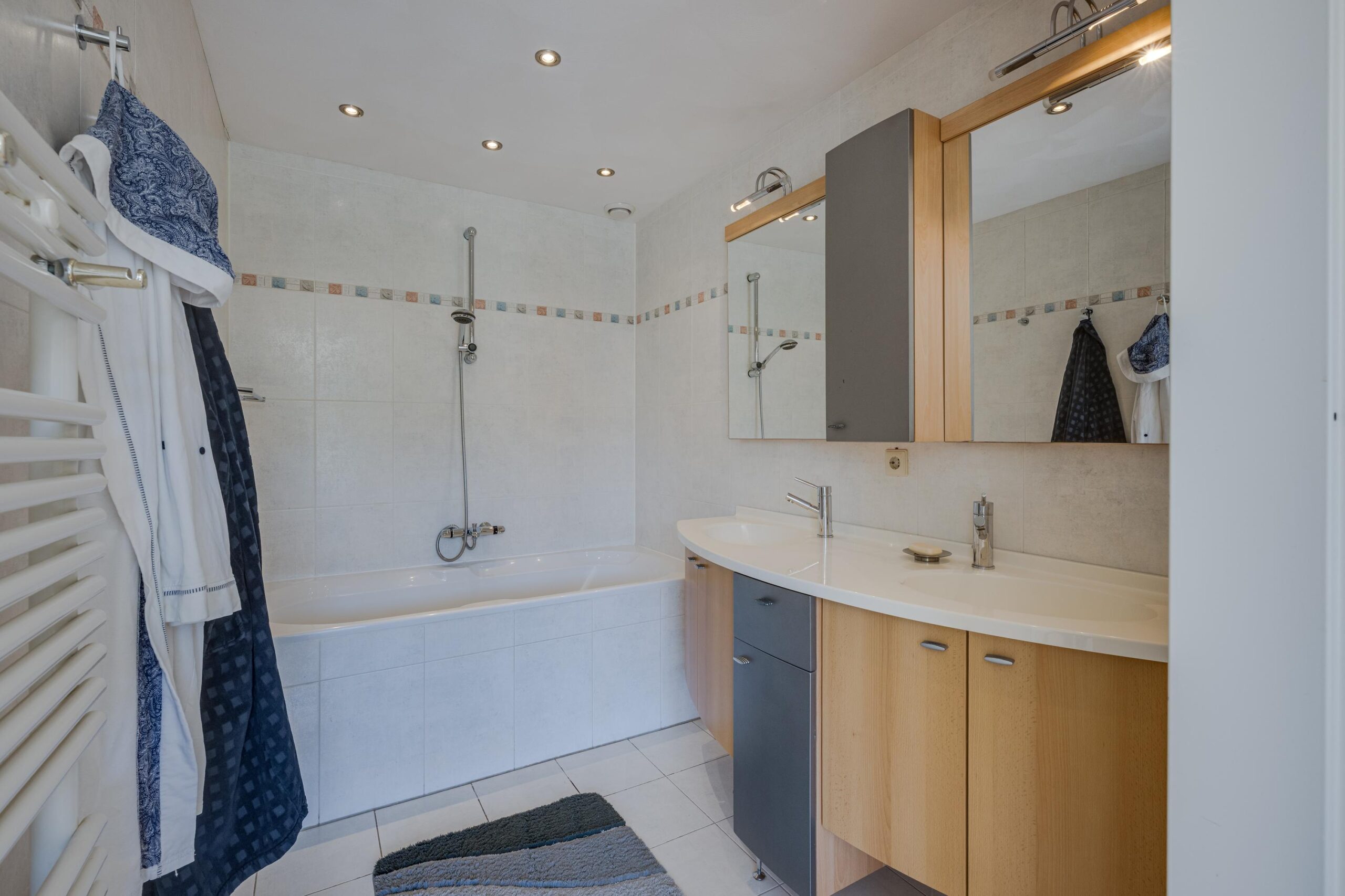 Eerste verdieping: Overloop met berging, apart toilet, kast met cv opstelling, warmtewisselaar/mechanische ventilatie en een badkamer met douche en wastafelmeubel. Riante slaapkamer aan de voorzijde met en suite (dubbele wastafel en ligbad). Aan de achterzijde bevinden zich drie slaapkamers.
