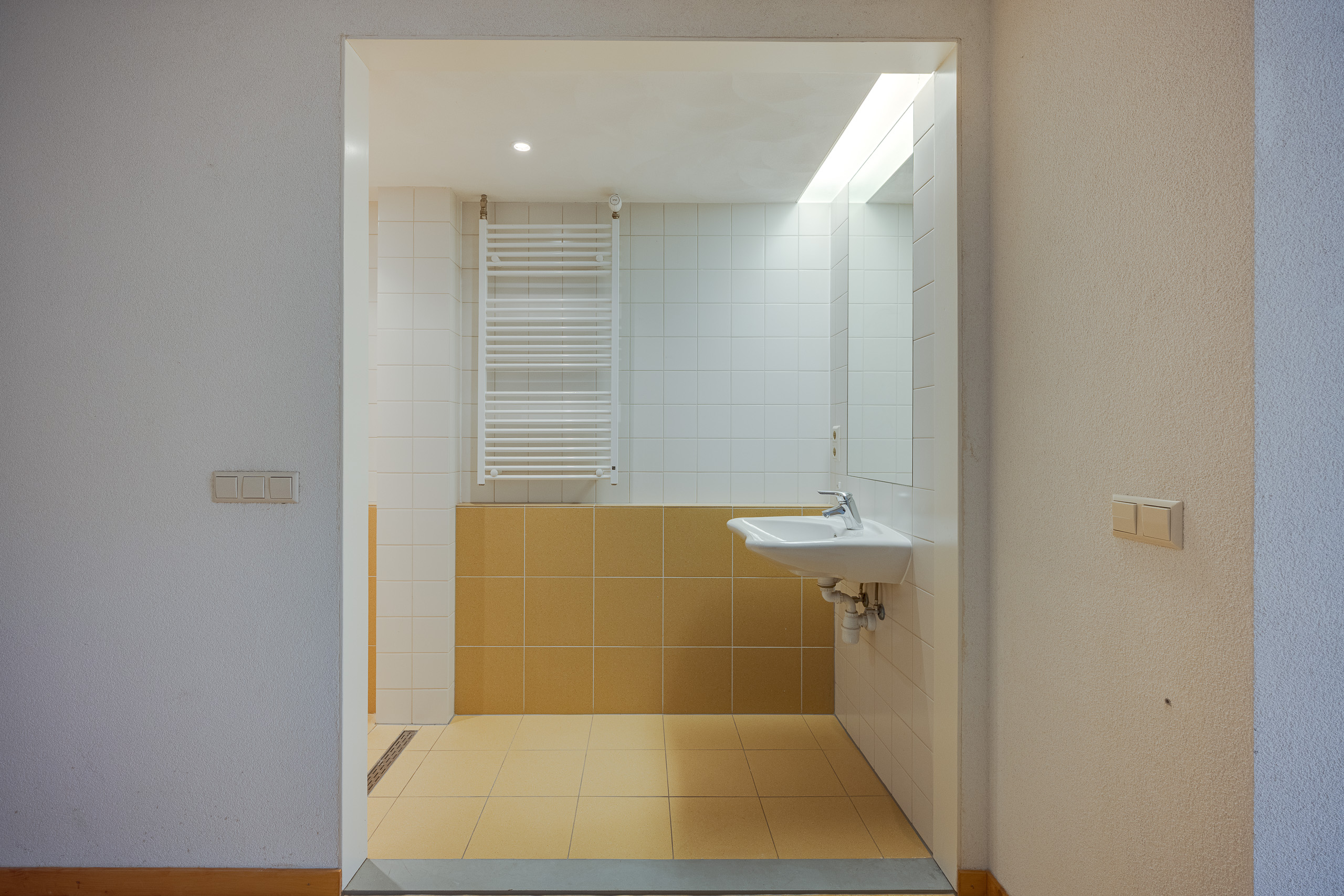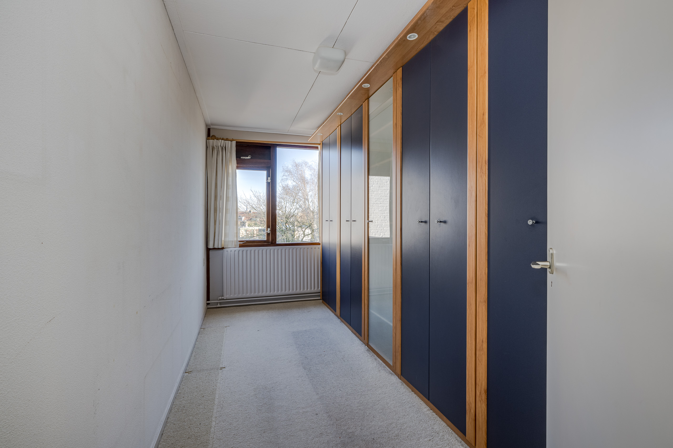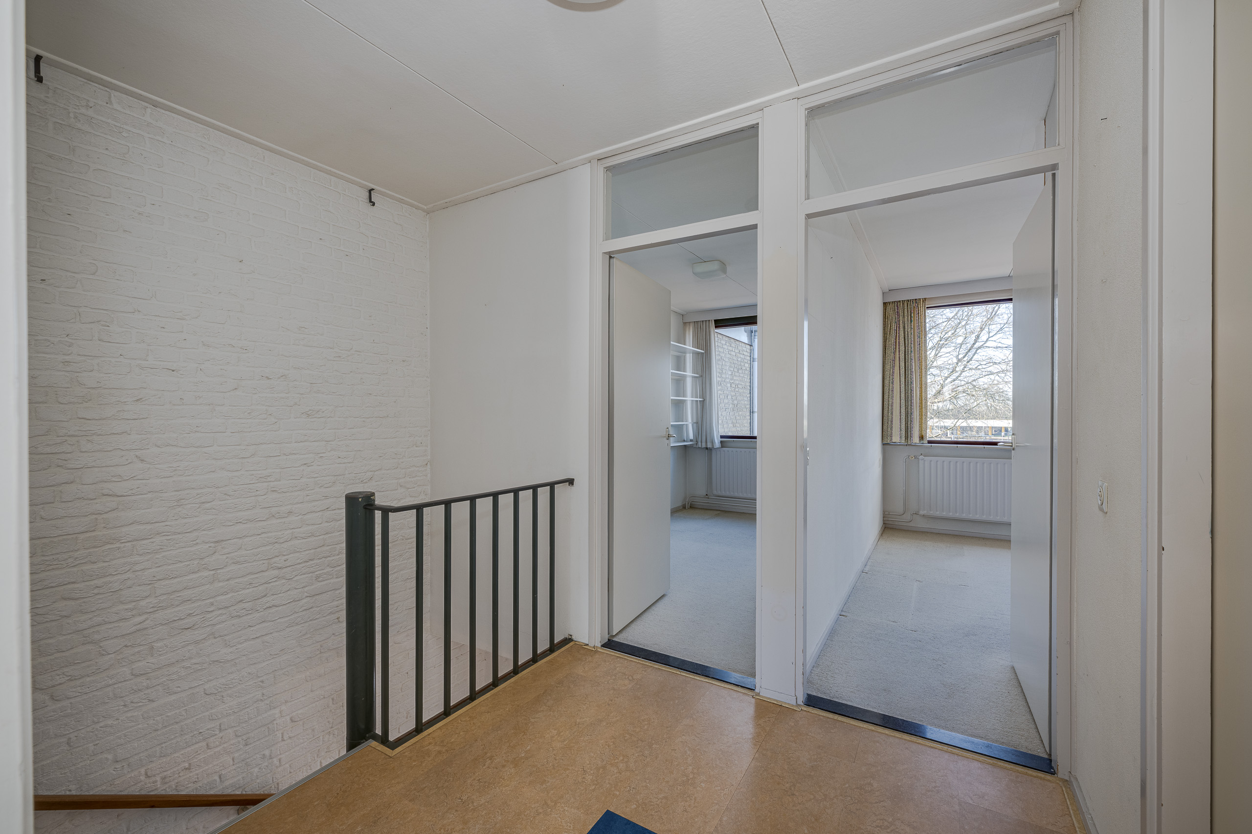 2e verdieping: overloop met vier deuren naar vier slaapkamers en deur naar de badkamer.