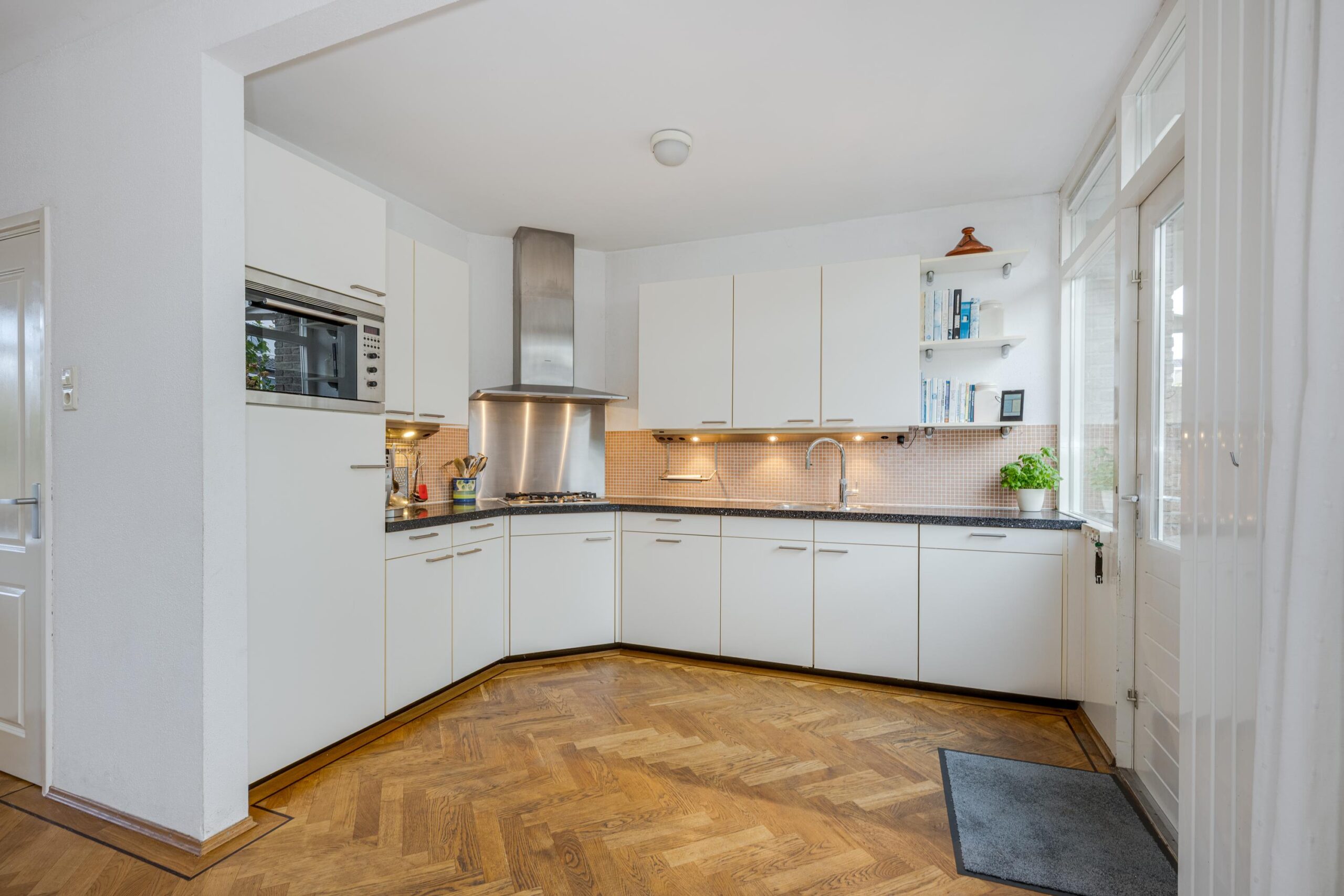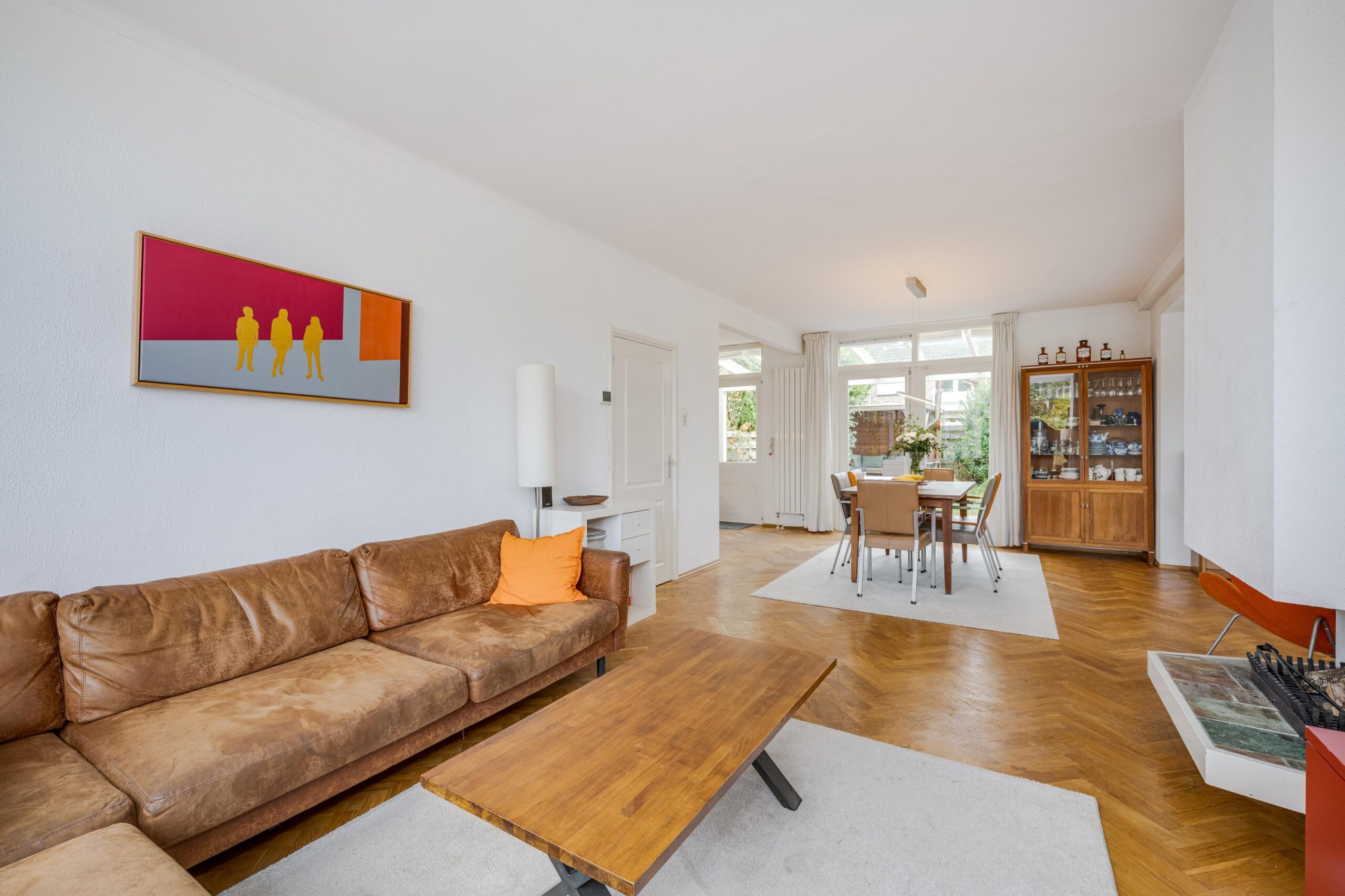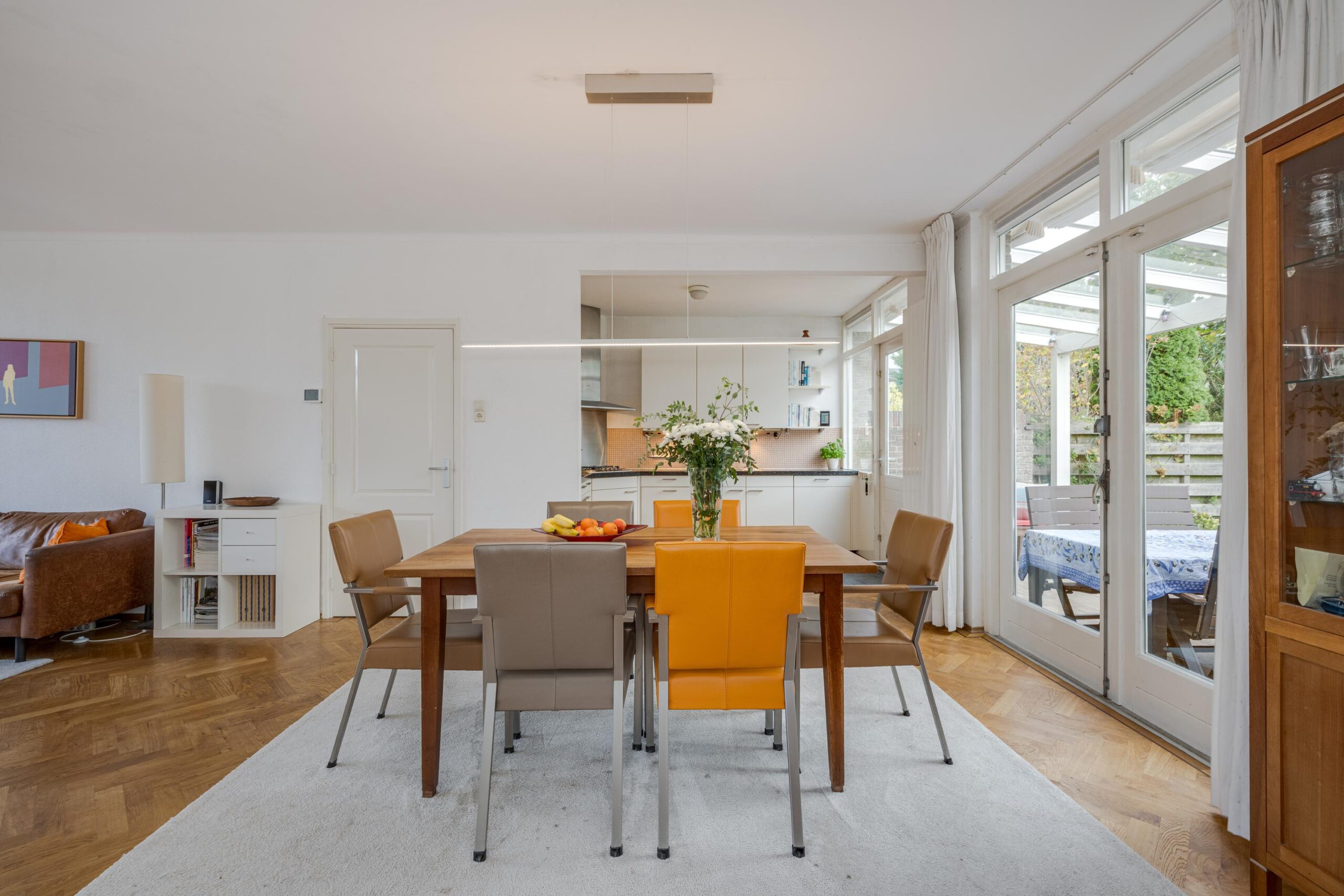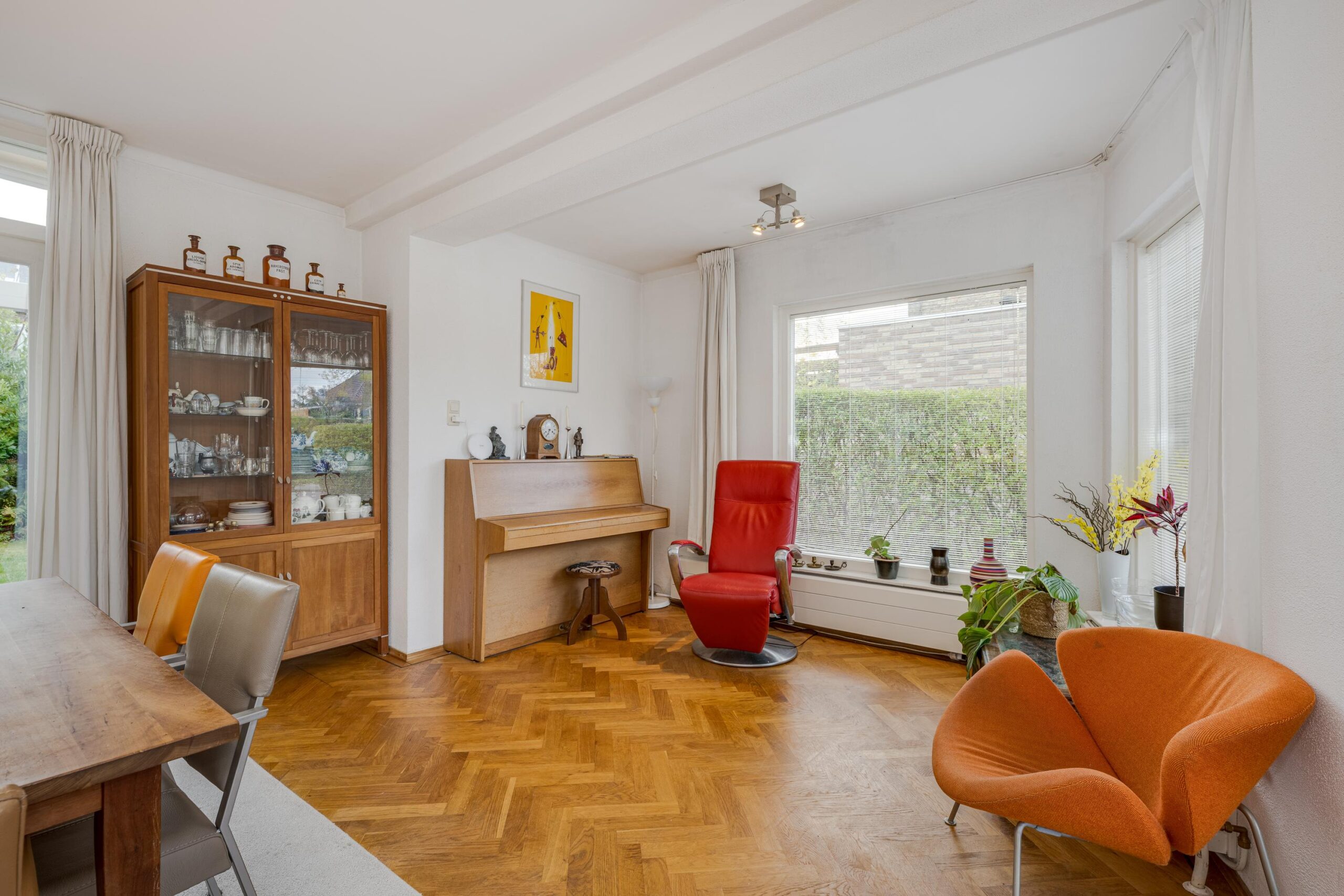 De ruime, lichte woonkamer is het hart van de woning. Dankzij de grote raampartijen en de hoekligging op de zonkant is er volop daglicht. De open haard, de eikenhouten parketvloer en de uitbouw aan de zijkant zorgen voor sfeer, of het nu een tweede zithoek wordt, een werkplek of een speelkamer, de uitbouw voelt direct als een luxe extra leefruimte.