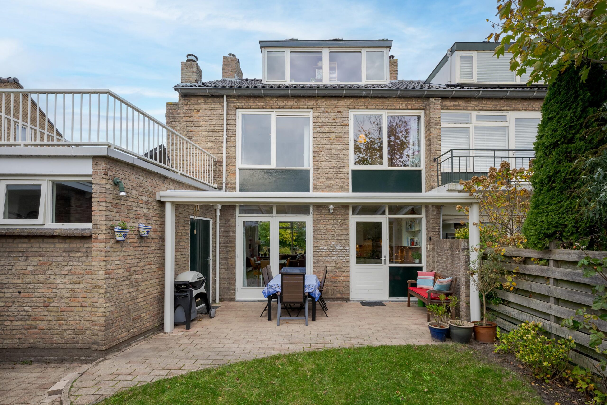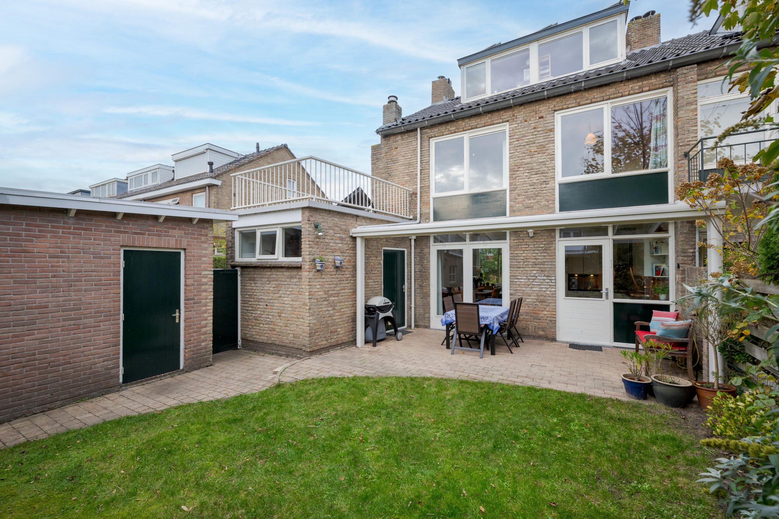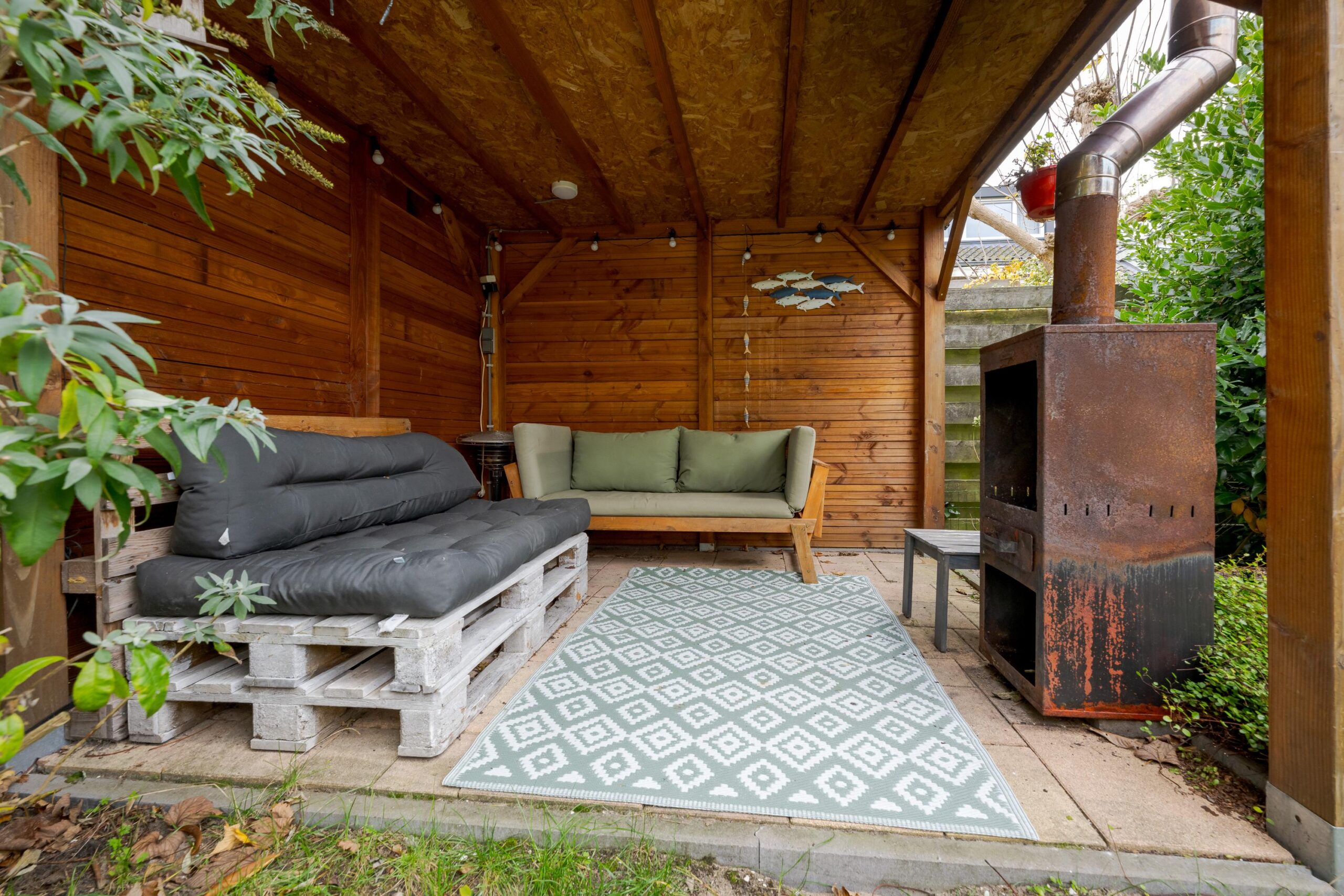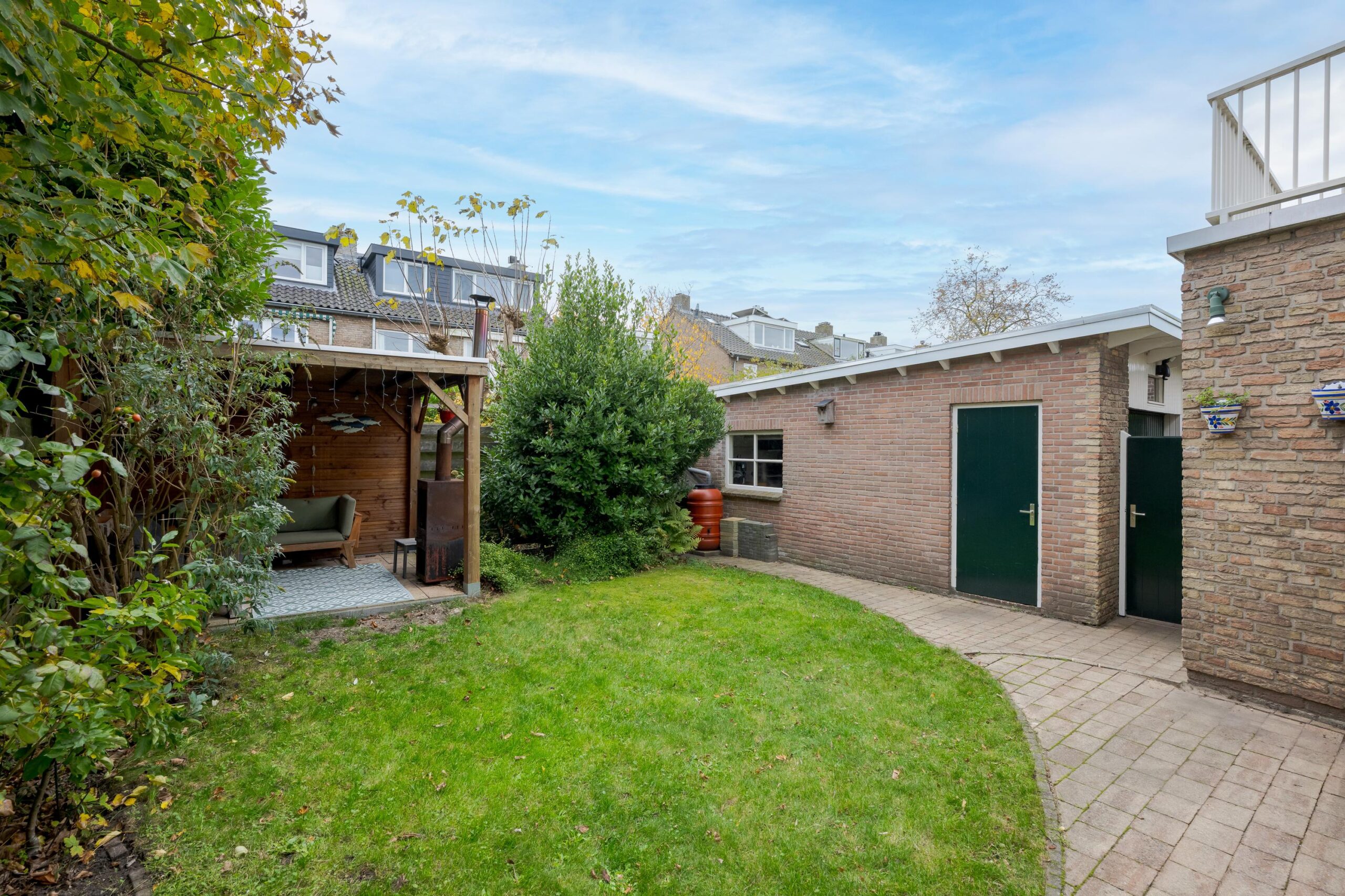 Tuin: De tuin is te bereiken via de achterdeur aan de keuken, en vanuit de eetkamer met twee openslaande deuren. De achtergevel is voorzien van een overkapping over het terras. Ook dat is een plekje om al vroeg in het voorjaar heerlijk beschut buiten te zitten. Achterin de tuin staat een open tuinhuisje met elektriciteit, aan de zijkant is de deur naar de garage en een achterom.