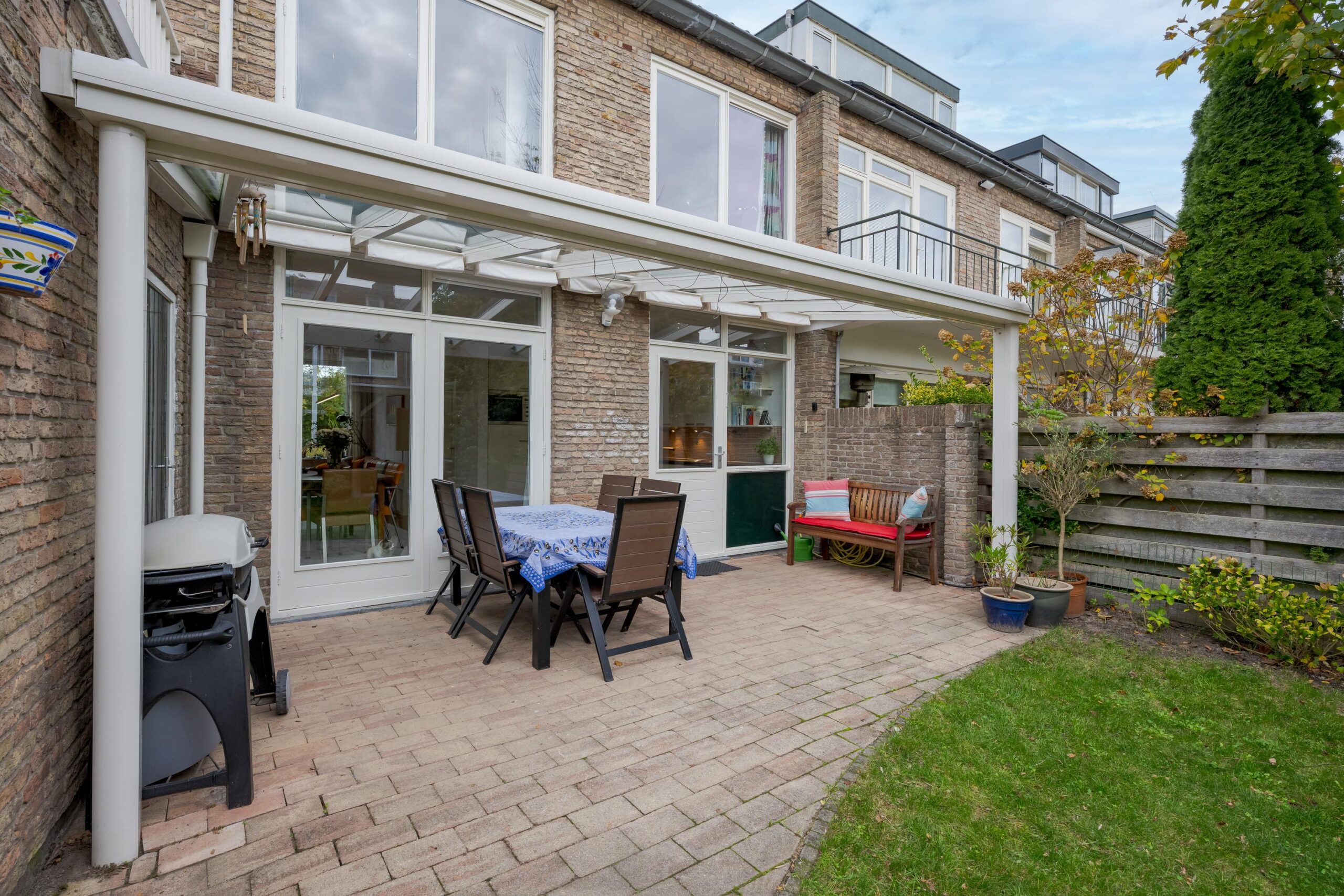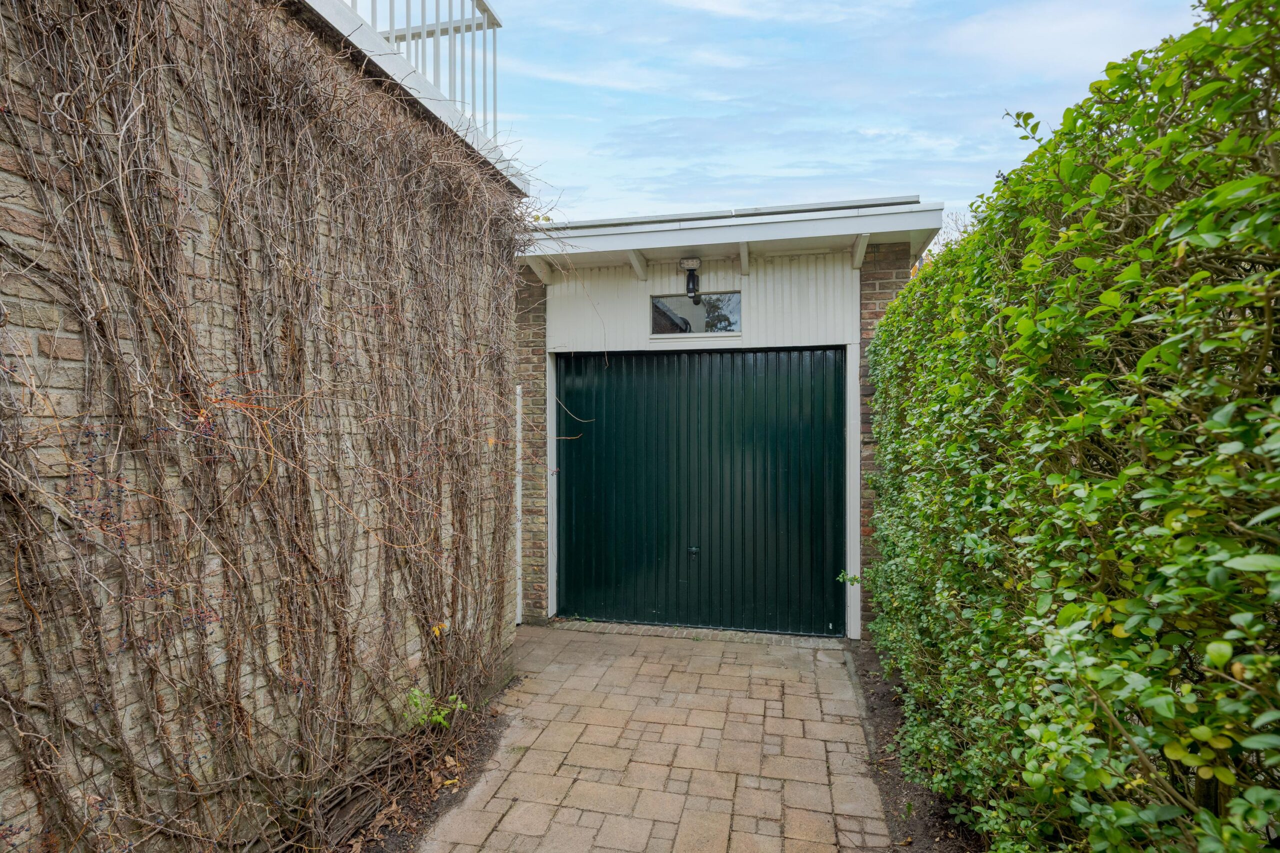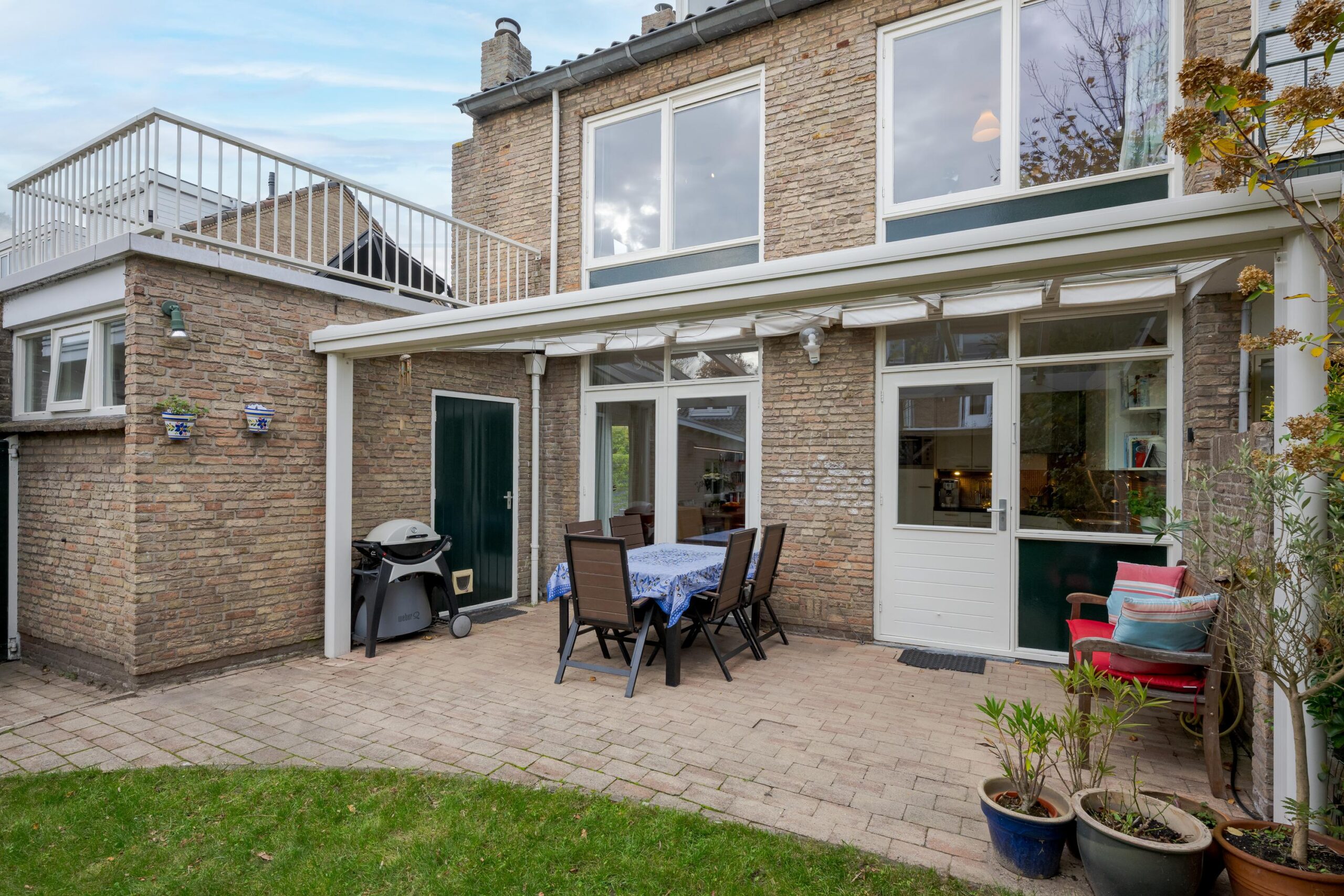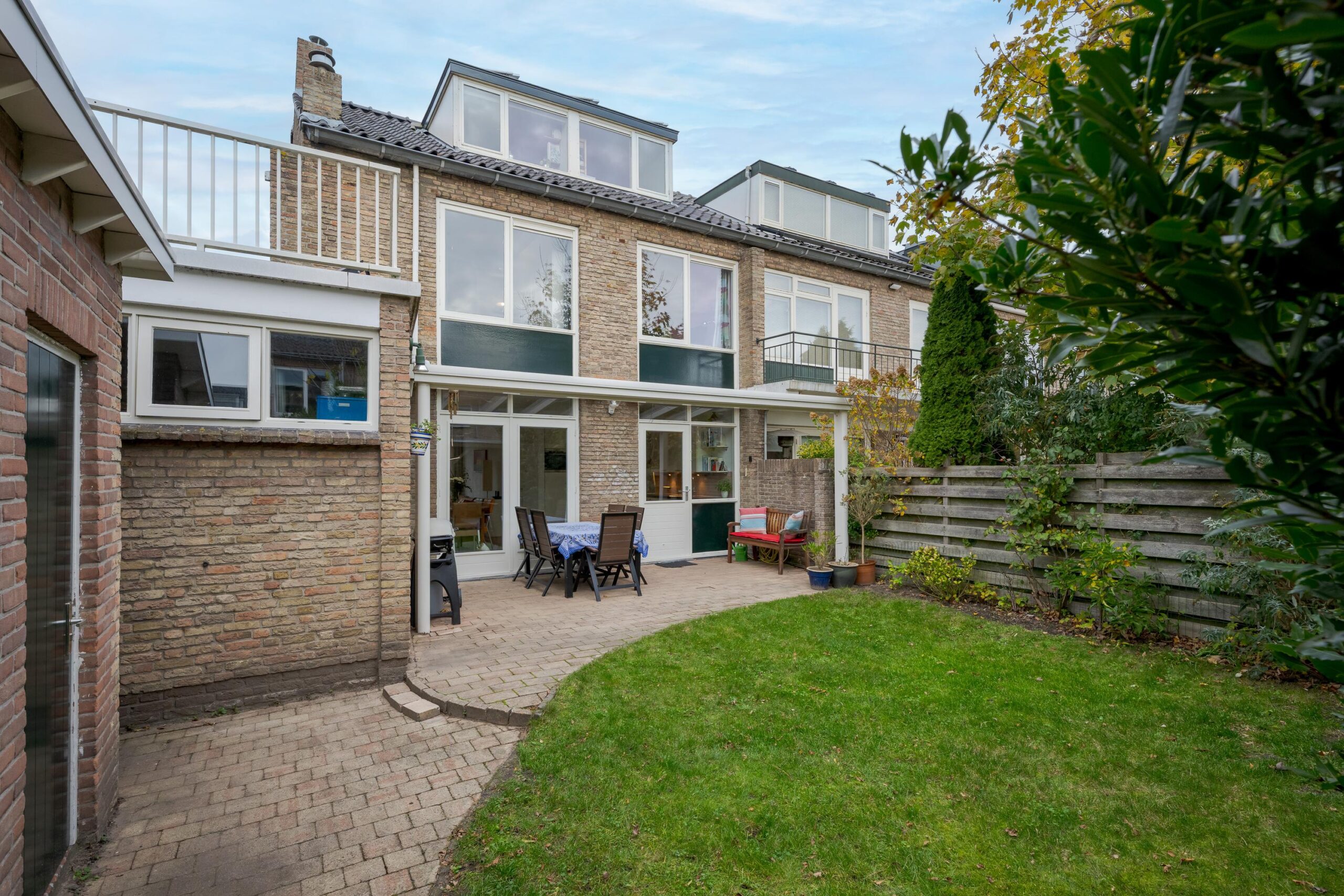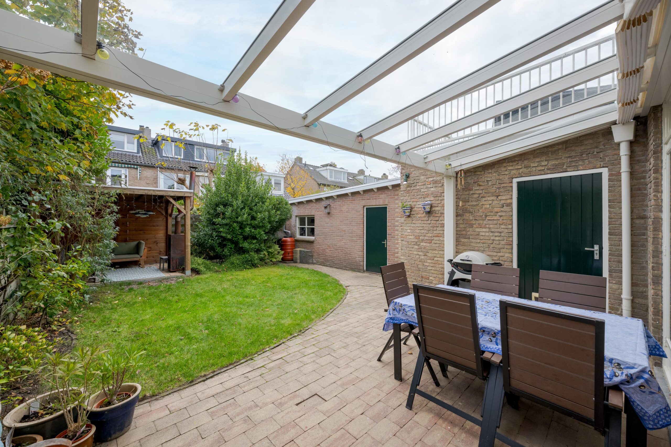 Tuin: De tuin is te bereiken via de achterdeur aan de keuken, en vanuit de eetkamer met twee openslaande deuren. De achtergevel is voorzien van een overkapping over het terras. Ook dat is een plekje om al vroeg in het voorjaar heerlijk beschut buiten te zitten. Achterin de tuin staat een open tuinhuisje met elektriciteit, aan de zijkant is de deur naar de garage en een achterom.