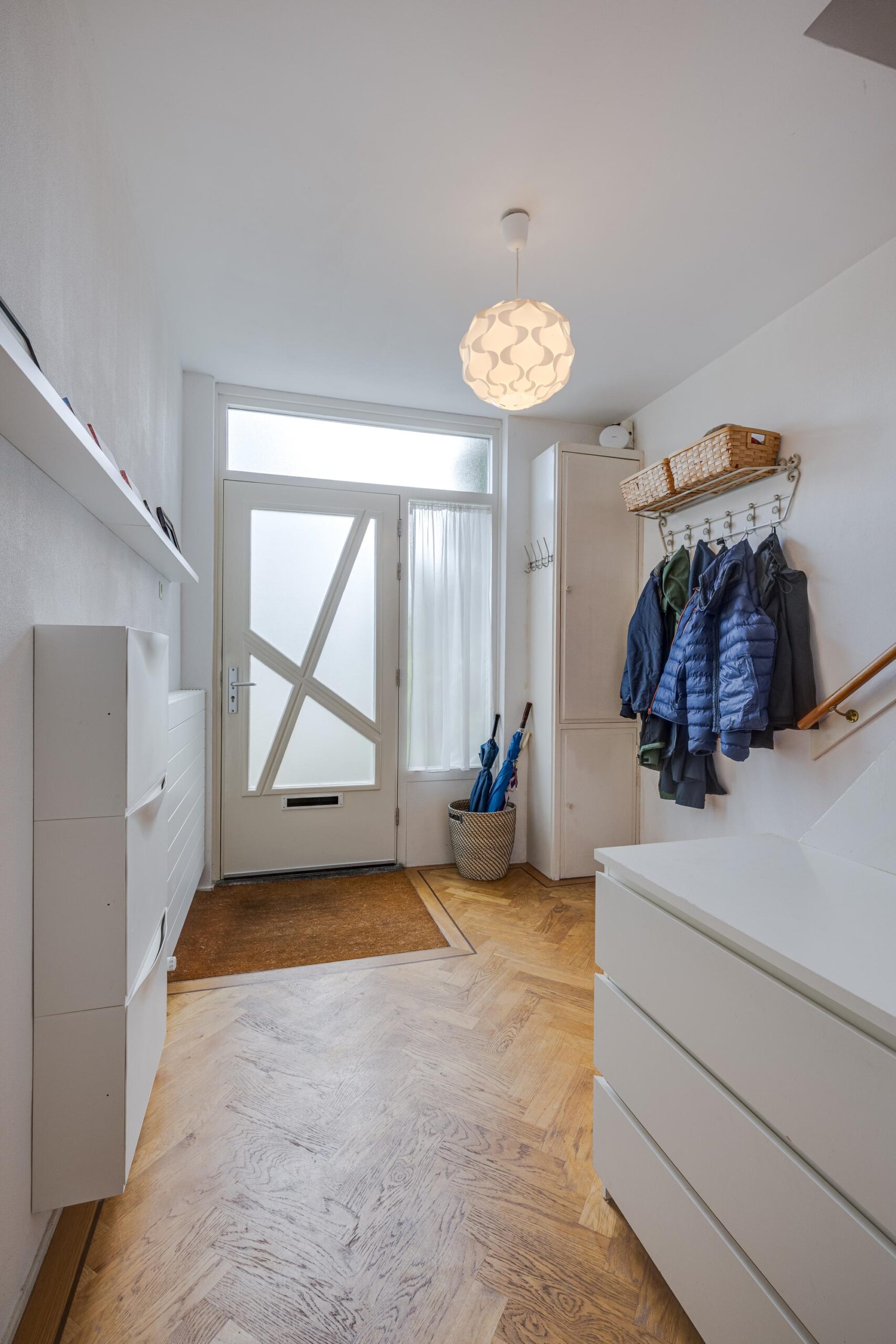 Begane grond: Via de voortuin bereik je de entree van de woning. De ruime hal is voorzien van meterkast (3 fasen, in 2023 vernieuwd), gangkast, separaat toilet, trap naar de eerste verdieping en deur naar de woonkamer. Eenmaal de woonkamer binnen kijk je uit op de voortuin. Vanuit de eethoek is zicht op de achtertuin, de open keuken (met diverse inbouwapparatuur) en een gezellige uitbouw met veel daglicht.