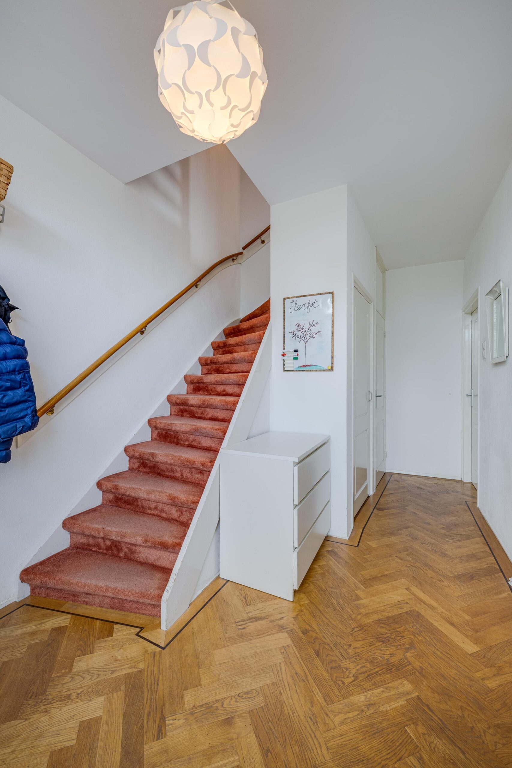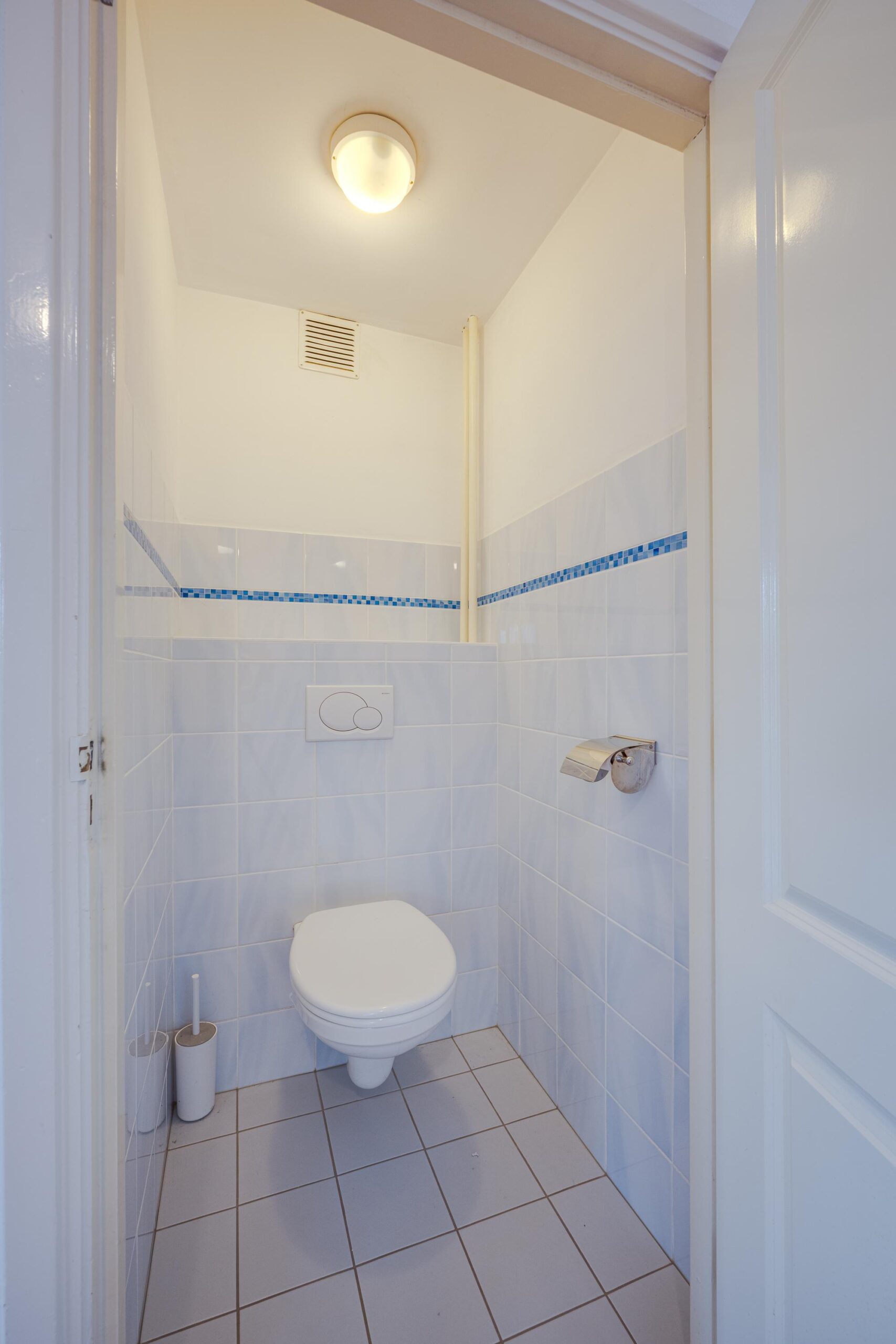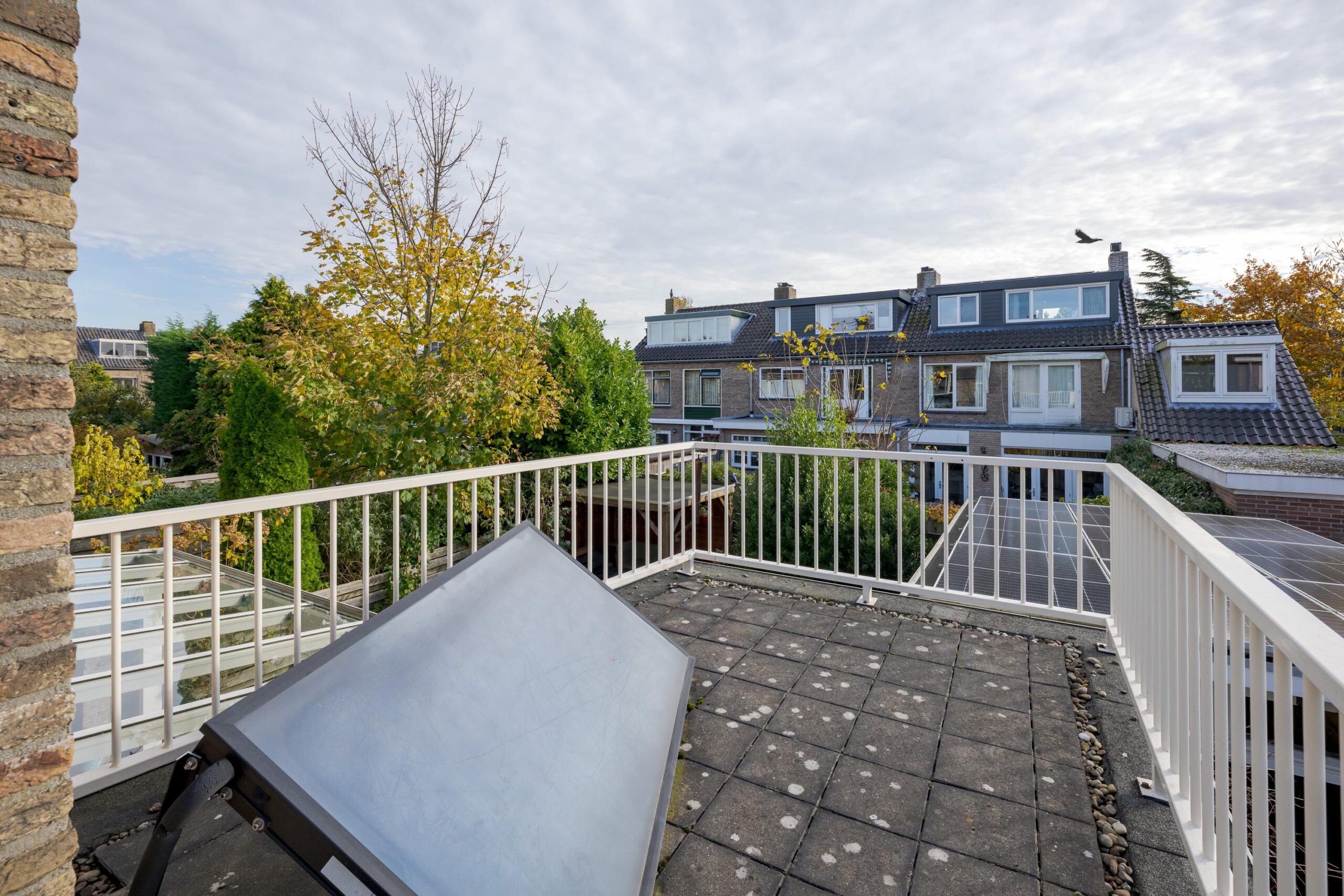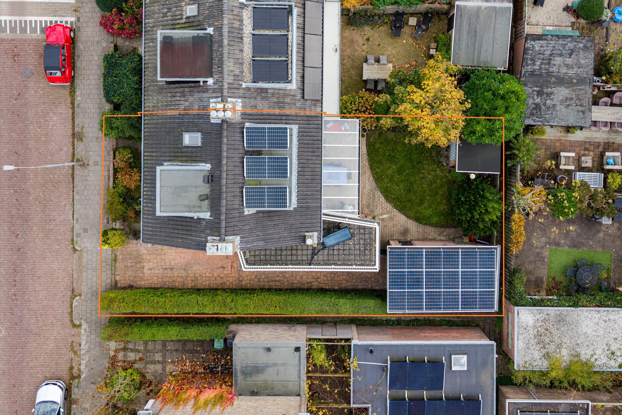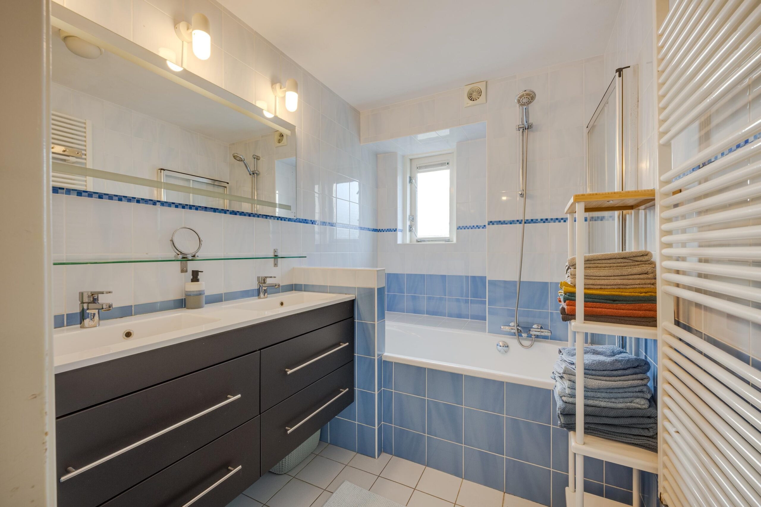 Eerste verdieping: Via de trap in de hal bereik je de eerste verdieping. Vanaf de overloop heb je toegang tot vier slaapkamers, een separaat toilet en de badkamer. De badkamer is voorzien van een dubbel wastafelmeubel, handdoekradiator en een bad / douche. Slaapkamer twee is voorzien van een deur naar het dakterras. Op het dakterras bevindt zich de warmtepomp (hybride) en een zonnecollector.