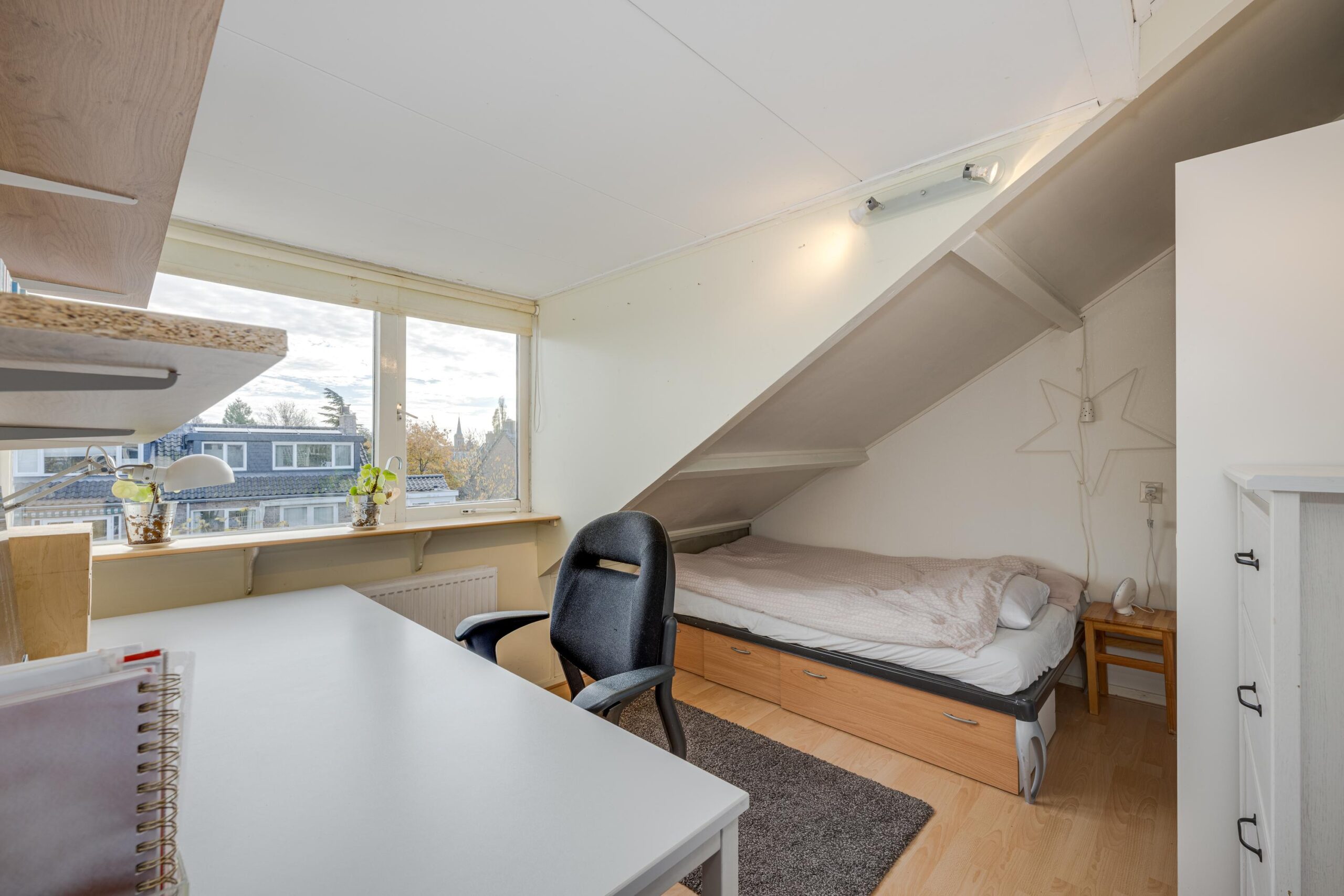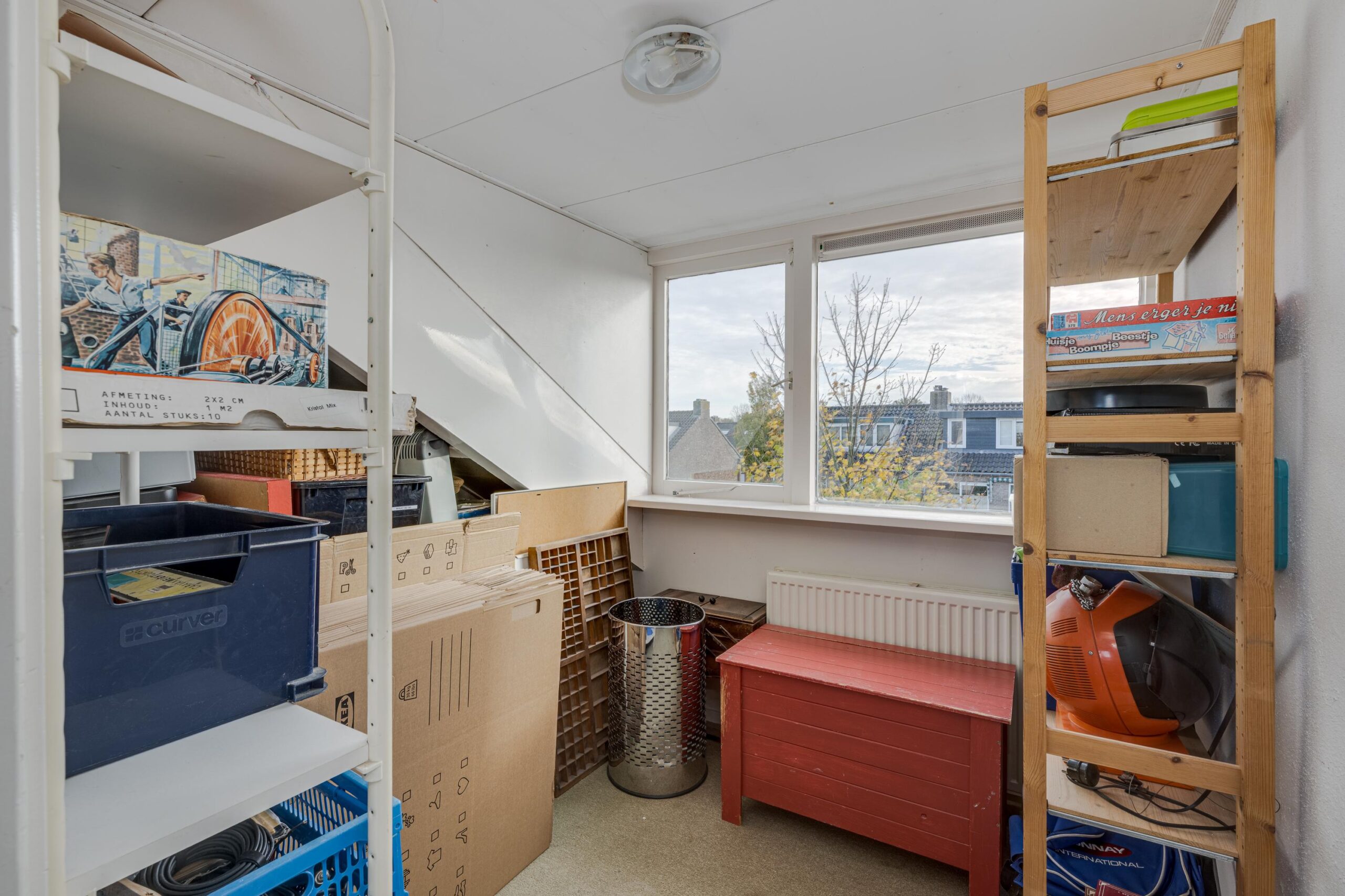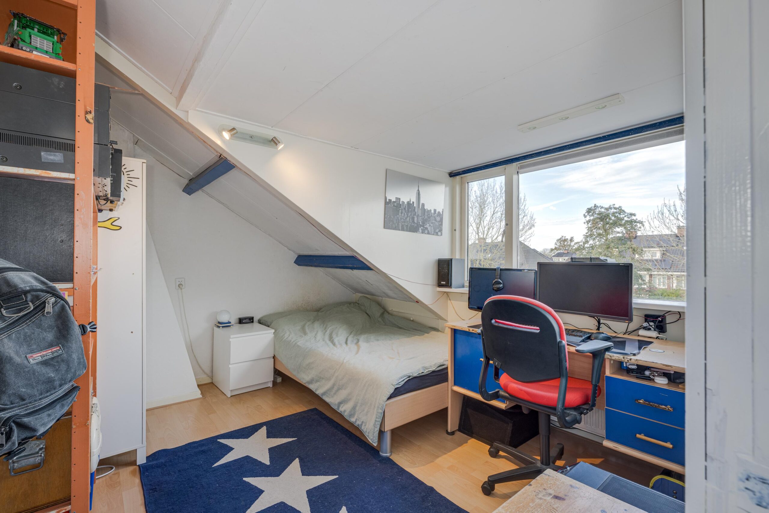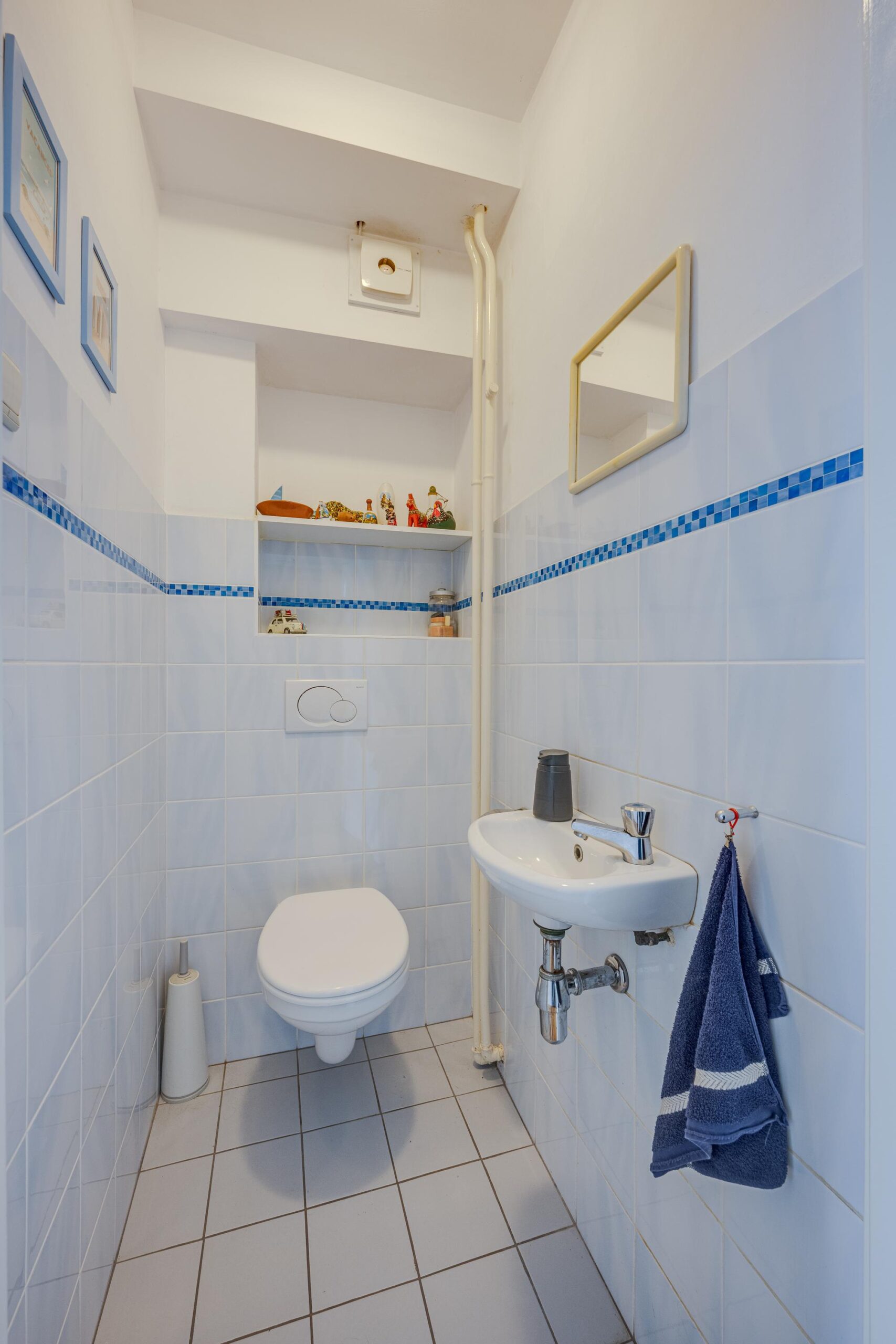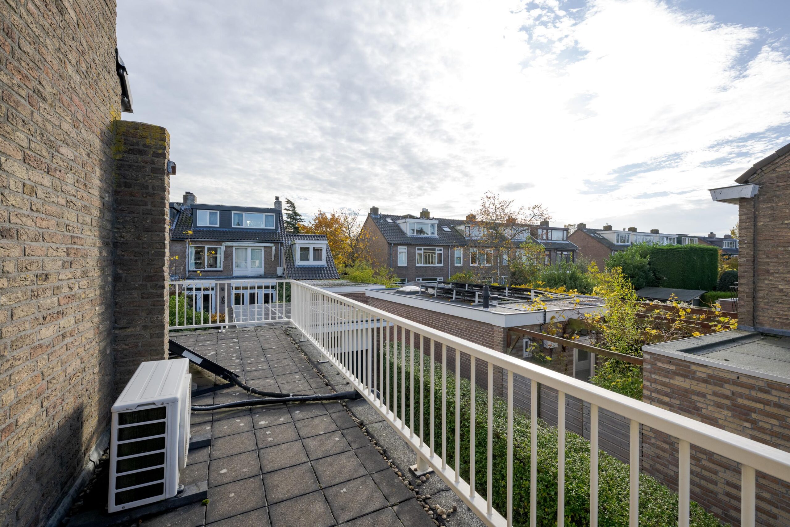 Eerste verdieping: Via de trap in de hal bereik je de eerste verdieping. Vanaf de overloop heb je toegang tot vier slaapkamers, een separaat toilet en de badkamer. De badkamer is voorzien van een dubbel wastafelmeubel, handdoekradiator en een bad / douche. Slaapkamer twee is voorzien van een deur naar het dakterras. Op het dakterras bevindt zich de warmtepomp (hybride) en een zonnecollector.