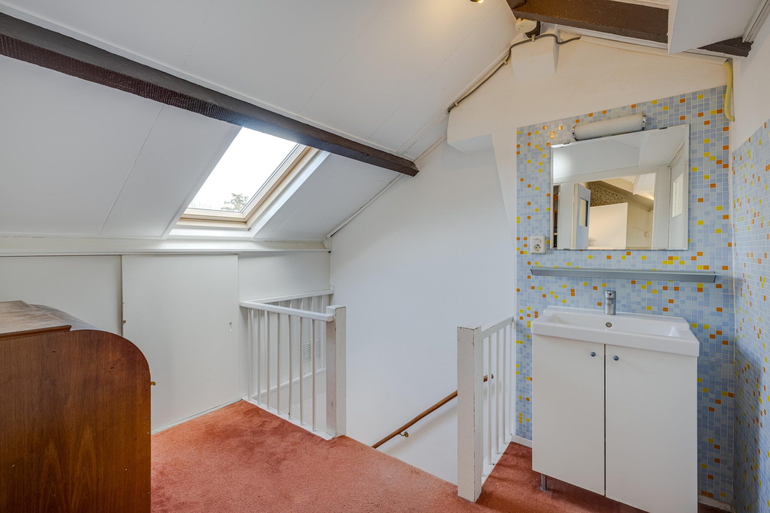 Tweede verdieping: Via de trap naar de overloop bereik je de tweede verdieping. De overloop beschikt over een los wastafelmeubel en geeft toegang tot nog eens drie slaapkamers en een knieschot voor extra bergruimte.