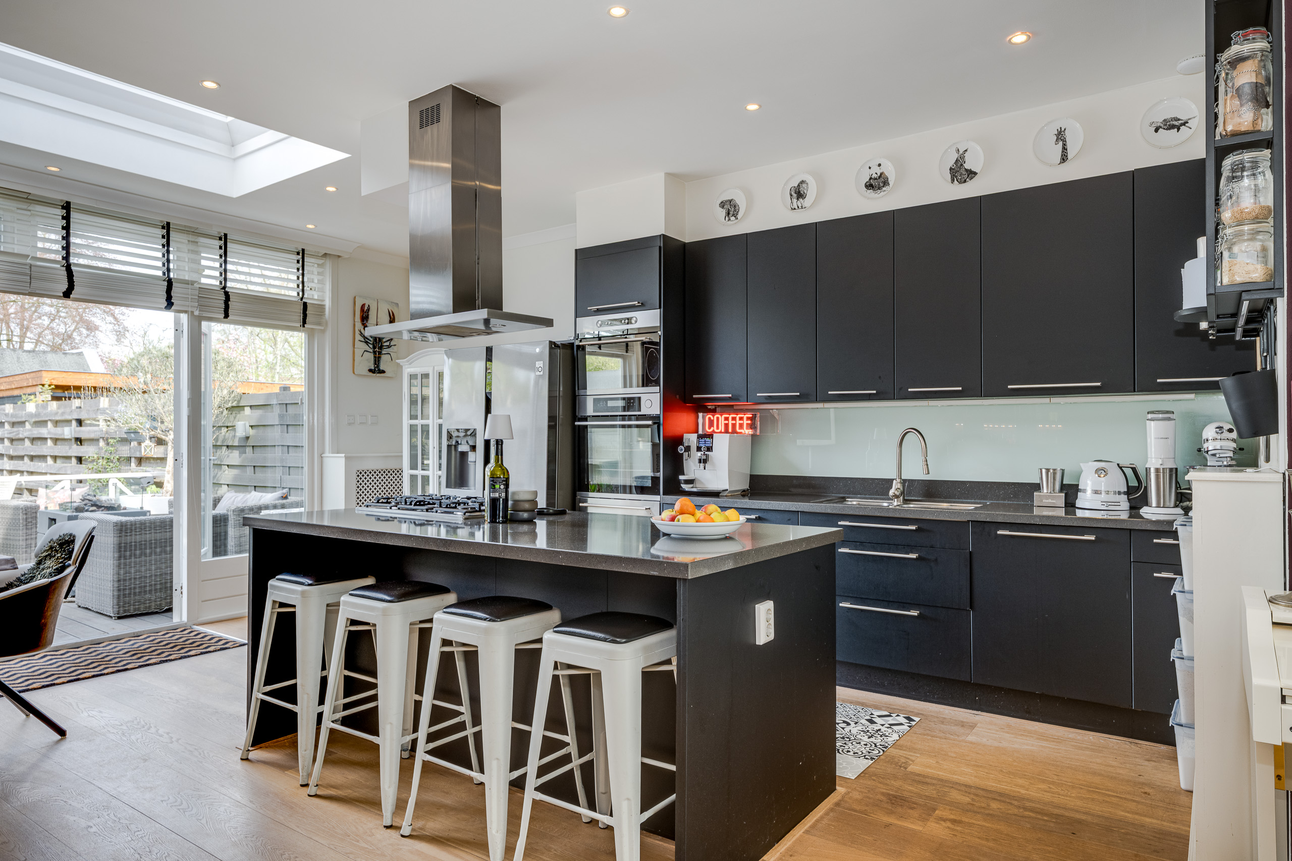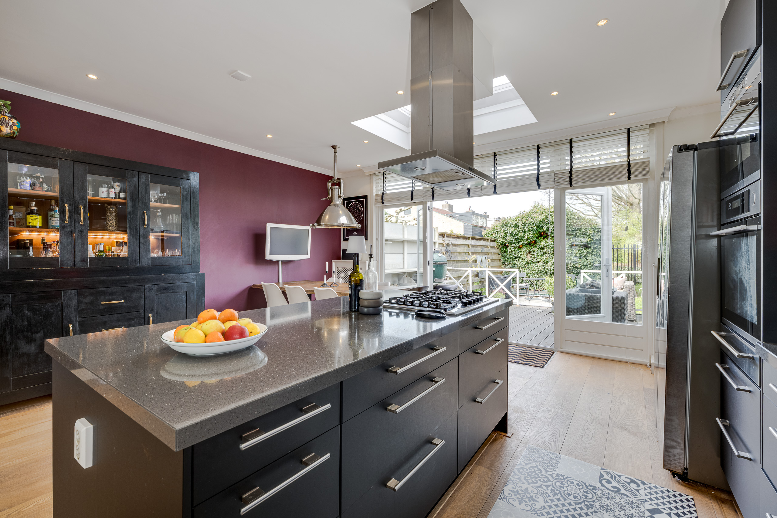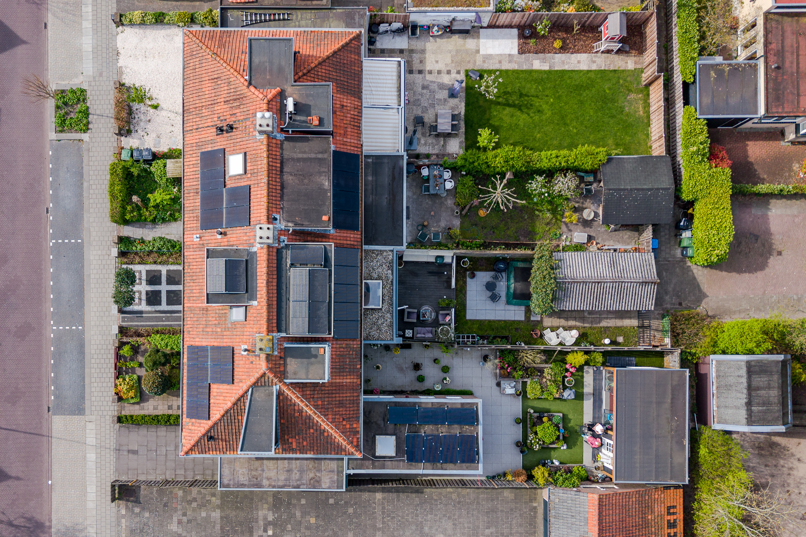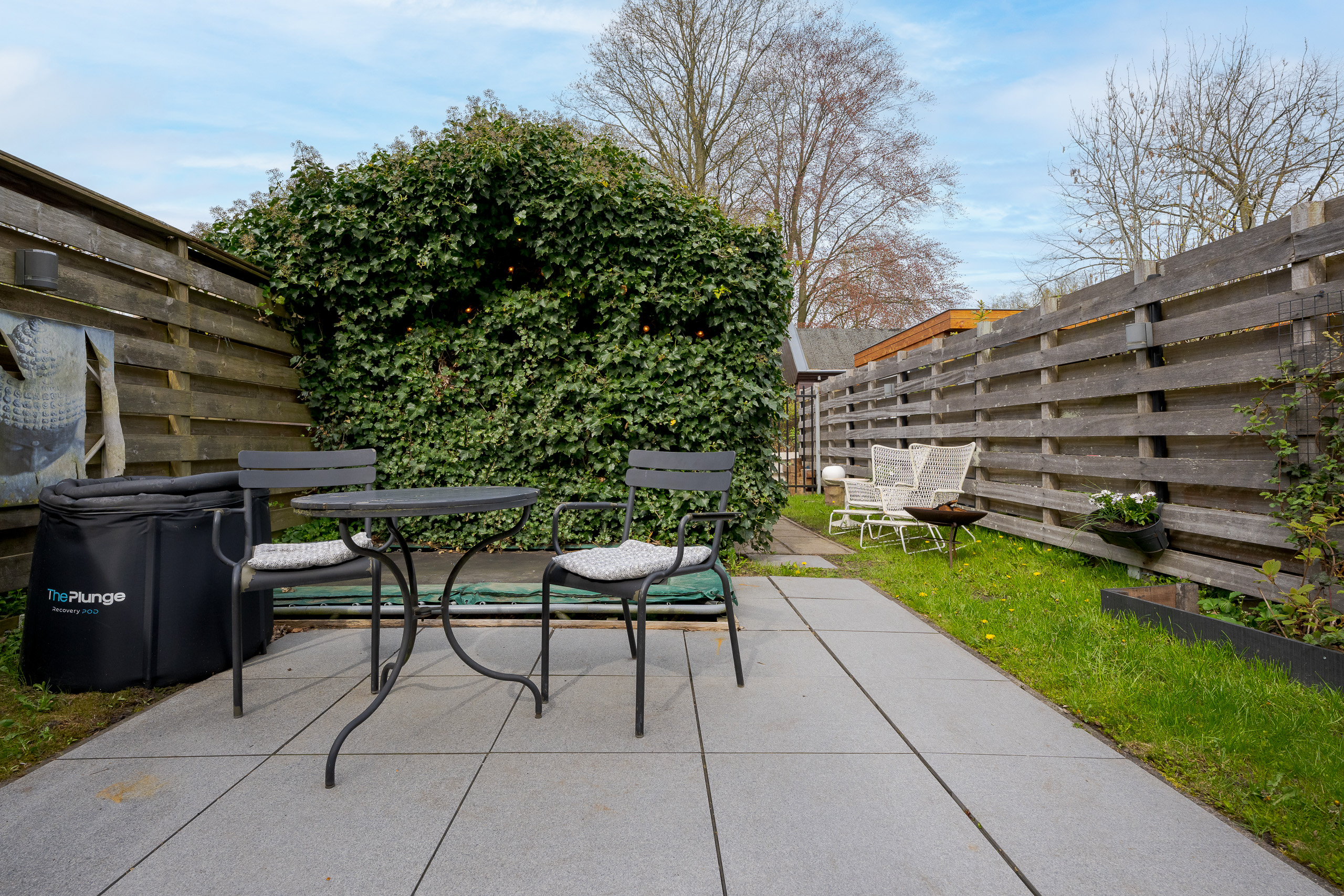 De diepe en fraai aangelegde achtertuin biedt volop privacy en zon. Hier vind je een heerlijk terras met buitenkeuken. Dit is dé plek om lange zomeravonden door te brengen met familie en vrienden.