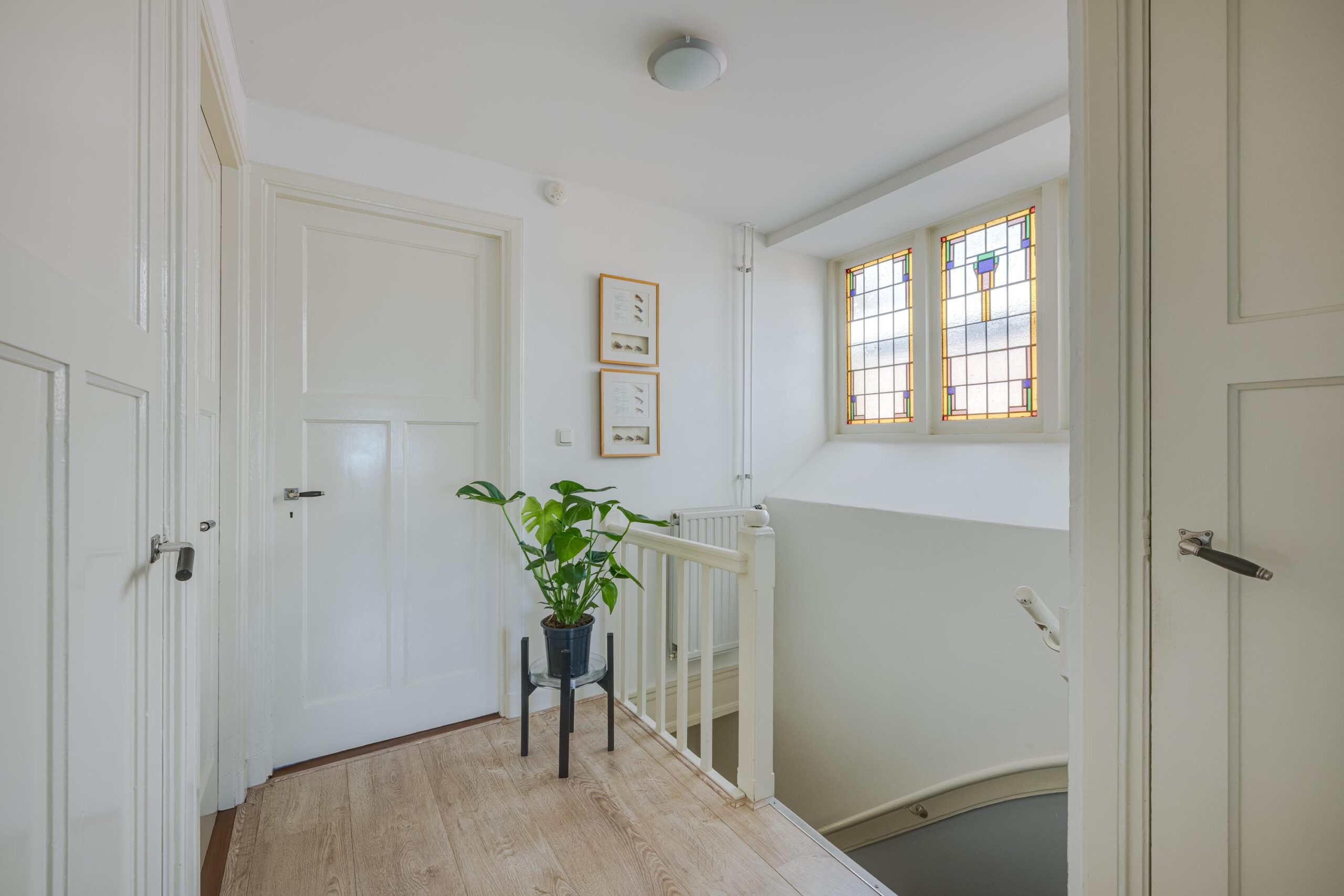 1e verdieping: overloop, drie deuren naar drie mooie slaapkamers, deur naar badkamer, trap naar bovengelegen verdieping.