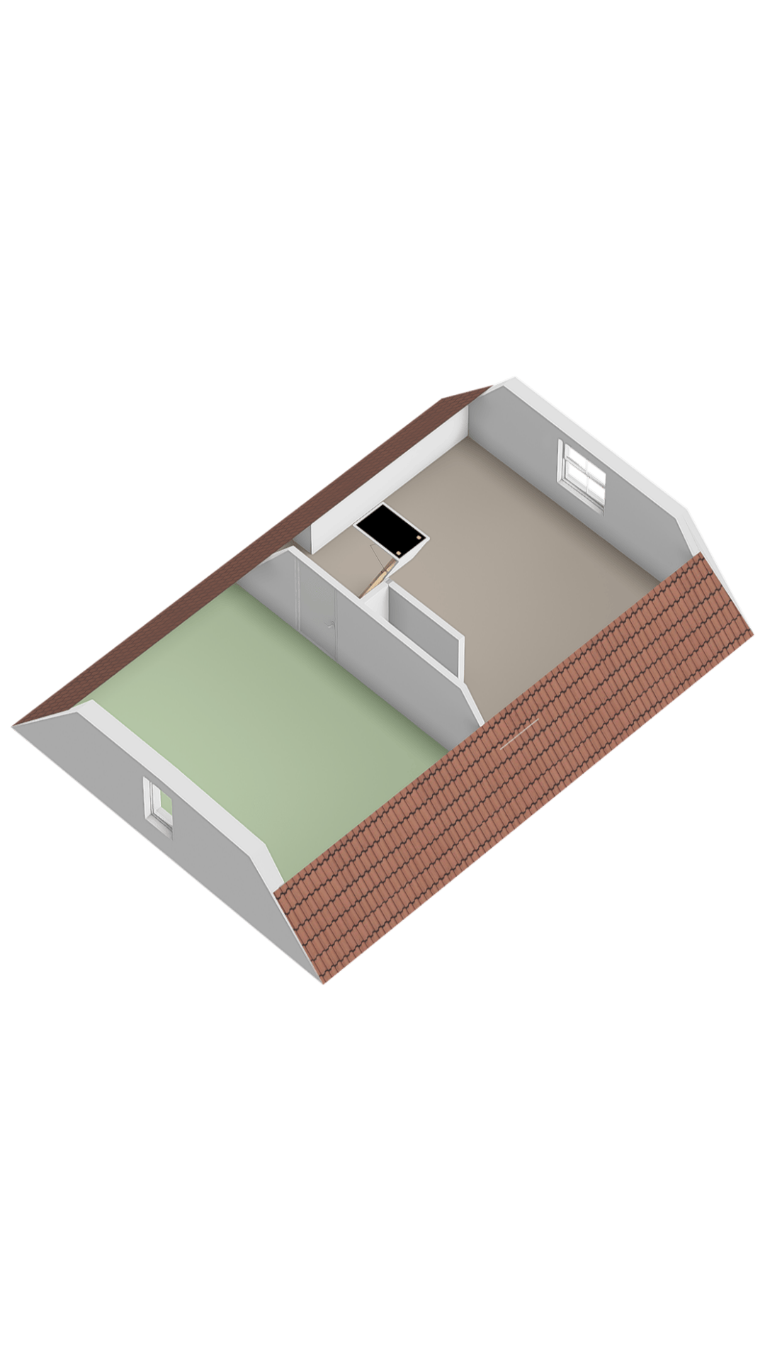 2e verdieping: zeer grote overloop waar u met gemak een vijfde slaapkamer kunt creëren. Deur naar 4e slaapkamer.