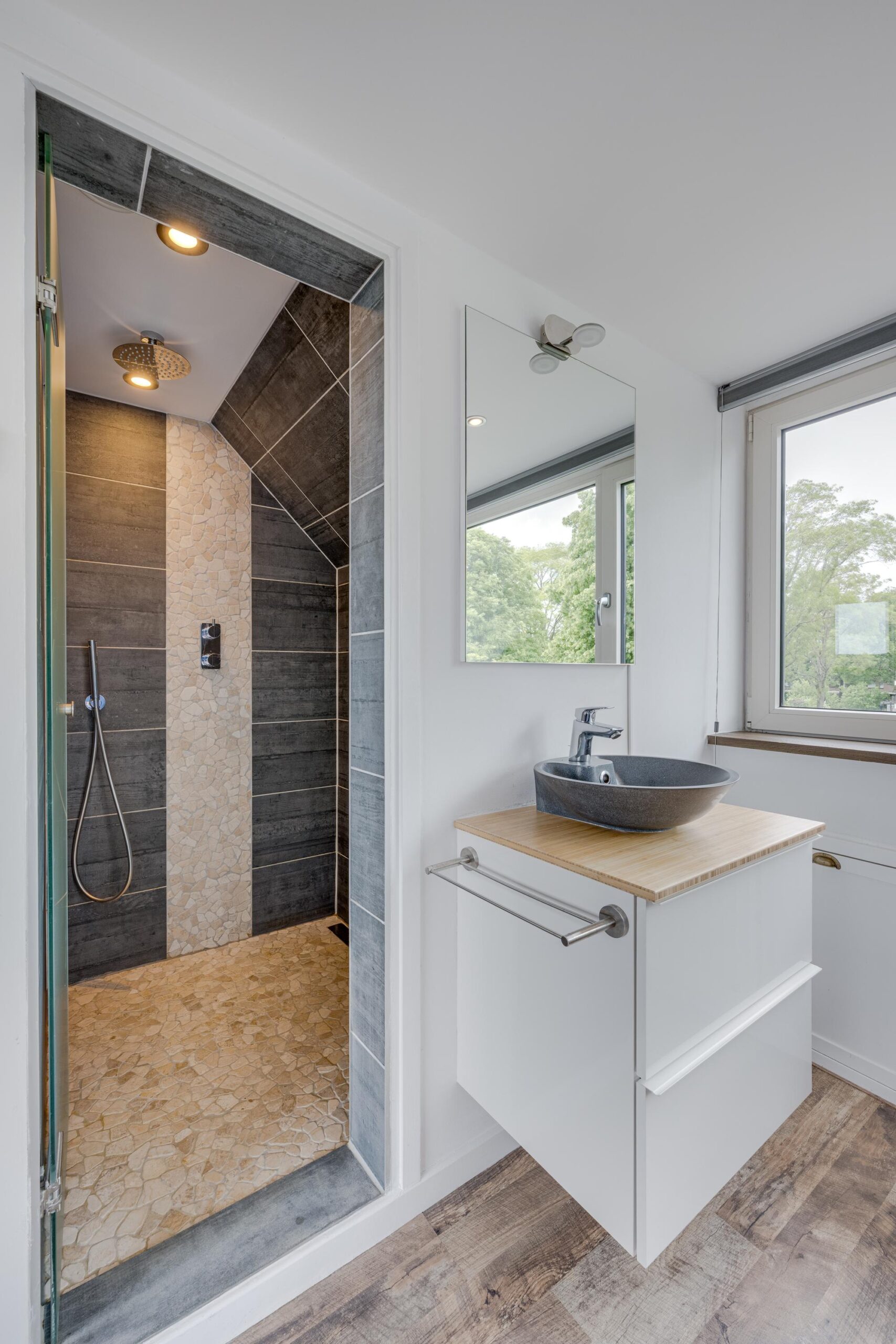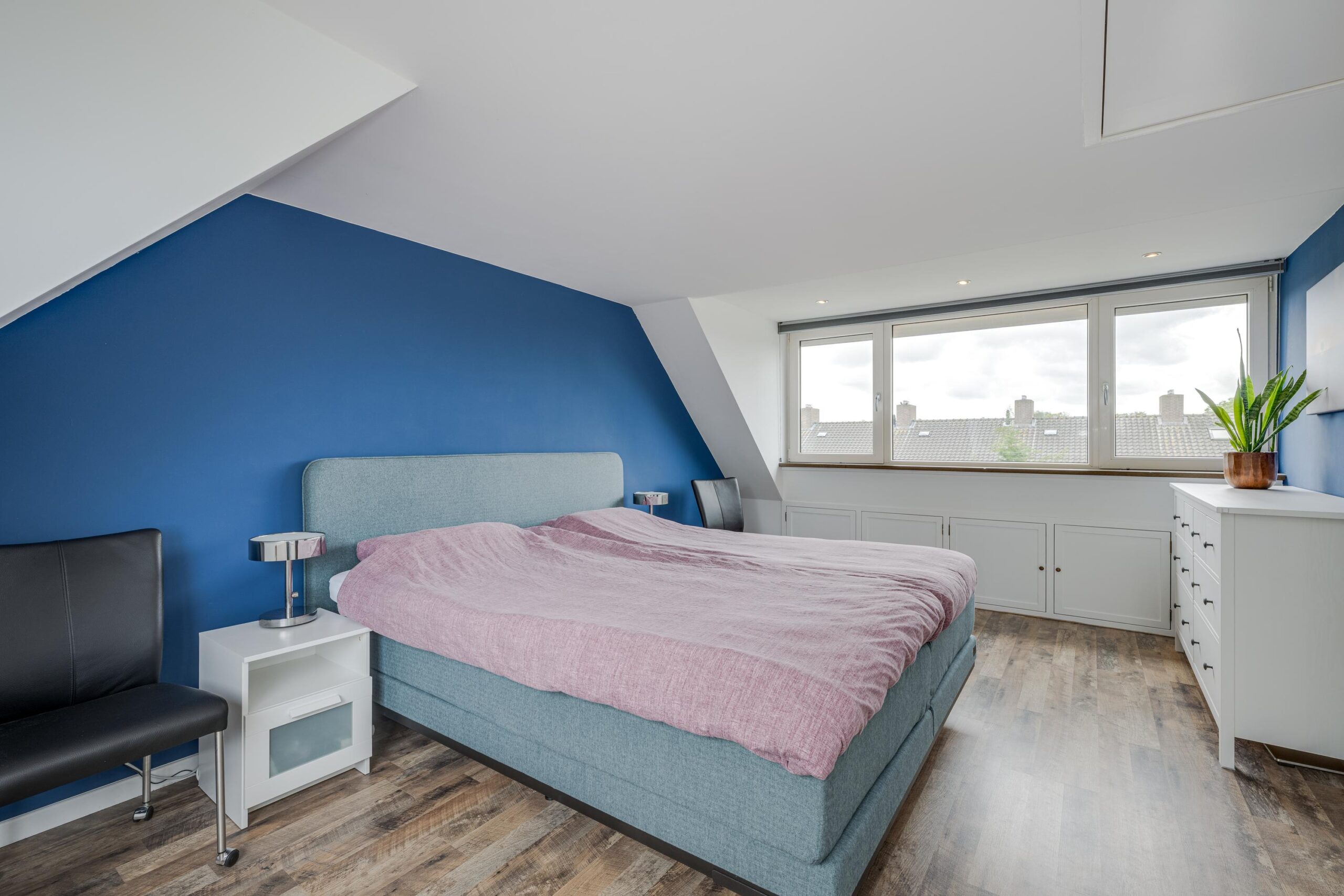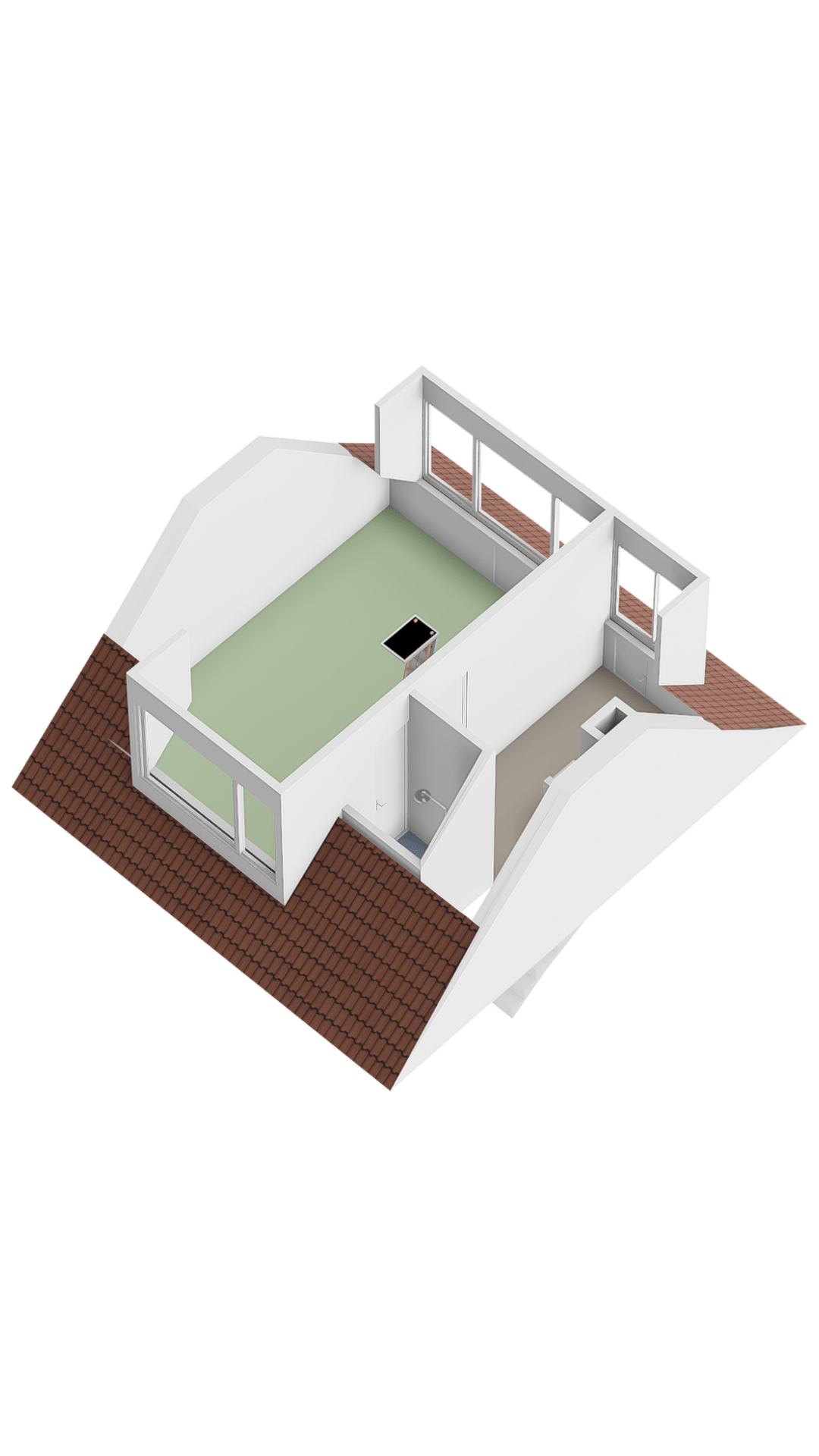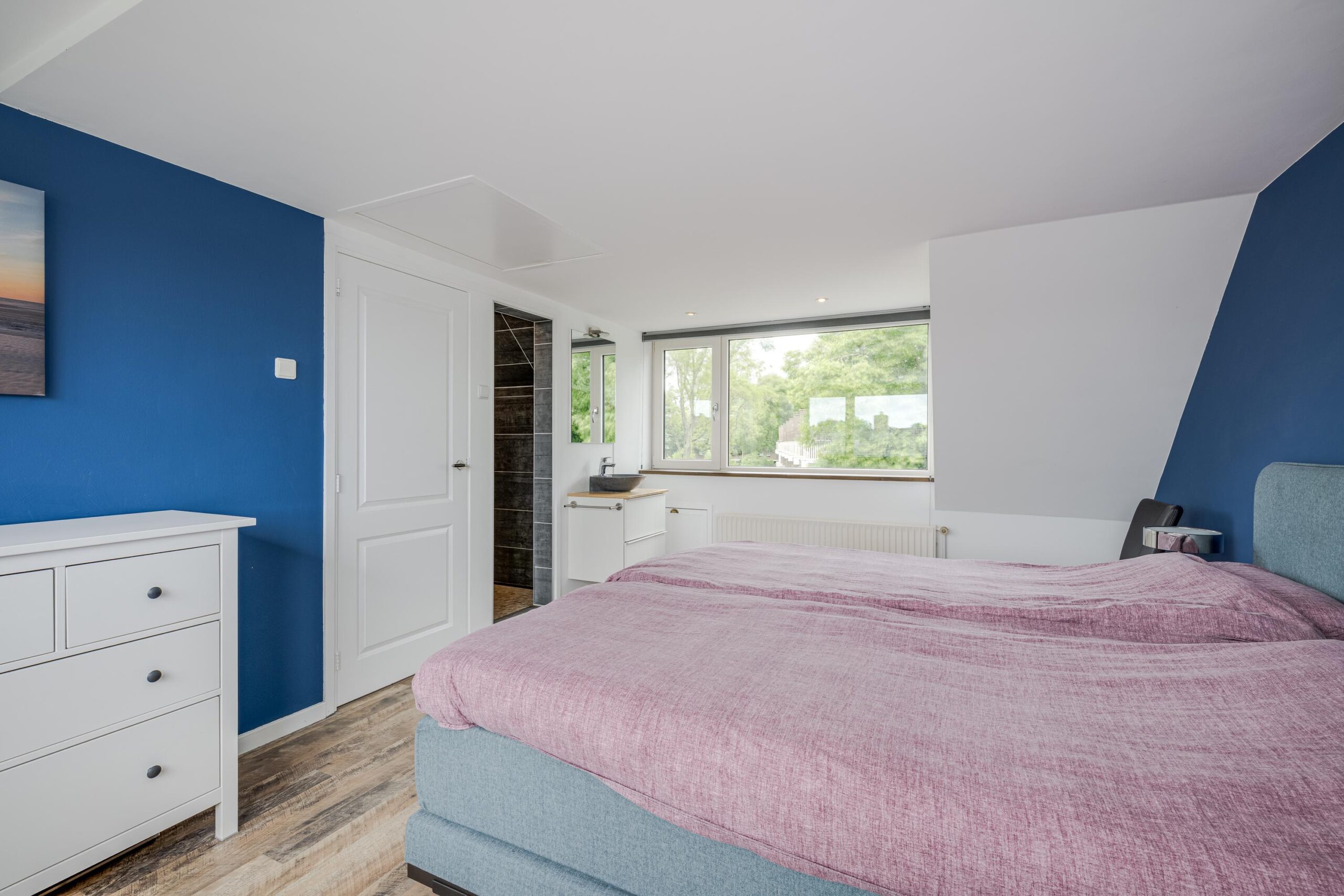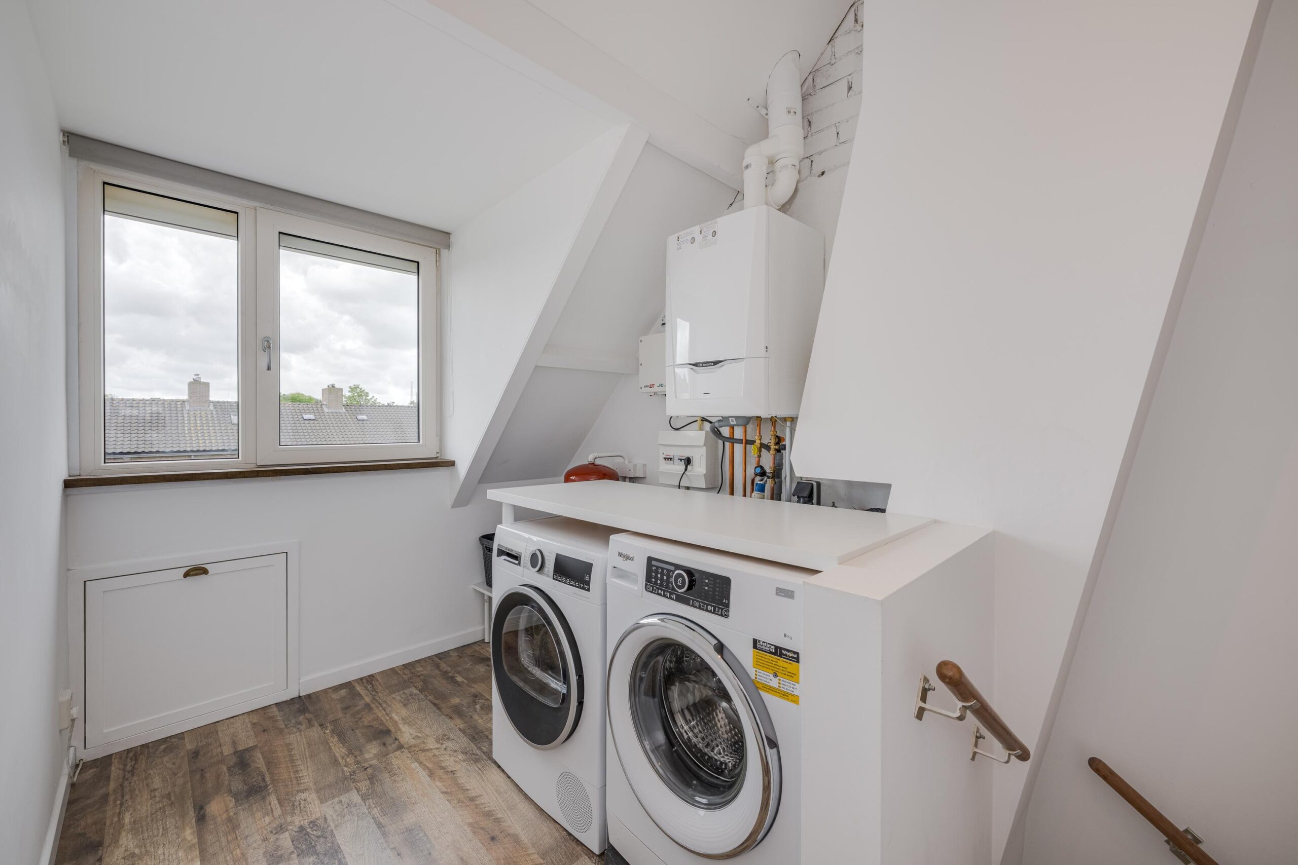 Overloop met aansluitingen voor wasmachine, droger en de CV ketel opstelling. Toegang tot de grote slaapkamer met aan de voor- en achterzijde een dakkapel. De slaapkamer is uitgerust met een wastafel en beschikt over een en suite douche.