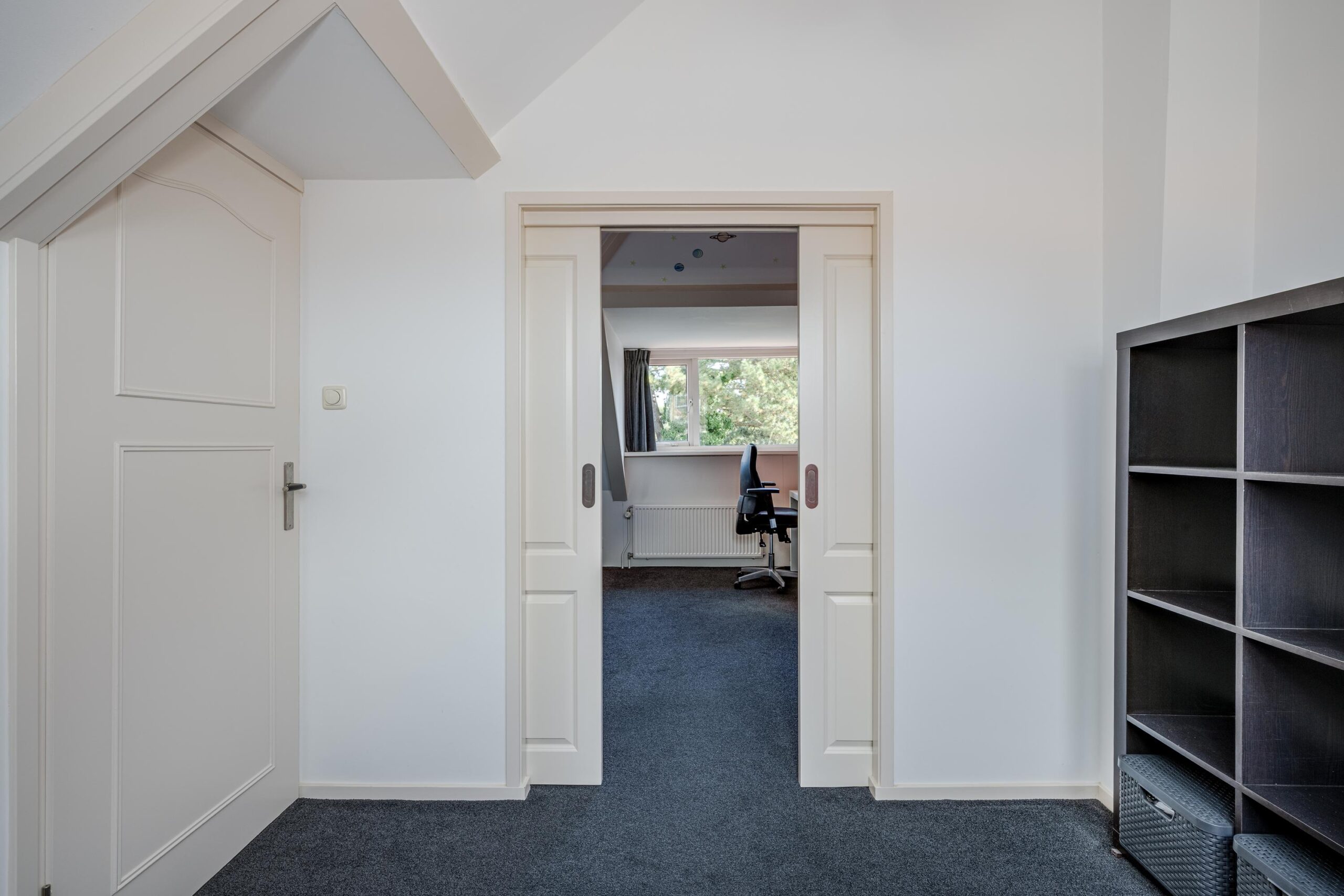 Op de tweede verdieping tref je naast een ruimte overloop, twee kamers die met schuifdeuren van elkaar worden gescheiden. Hierdoor kun je ze gebruiken zoals jij dat wilt: twee aparte kamers, of juist één grote ruimte.