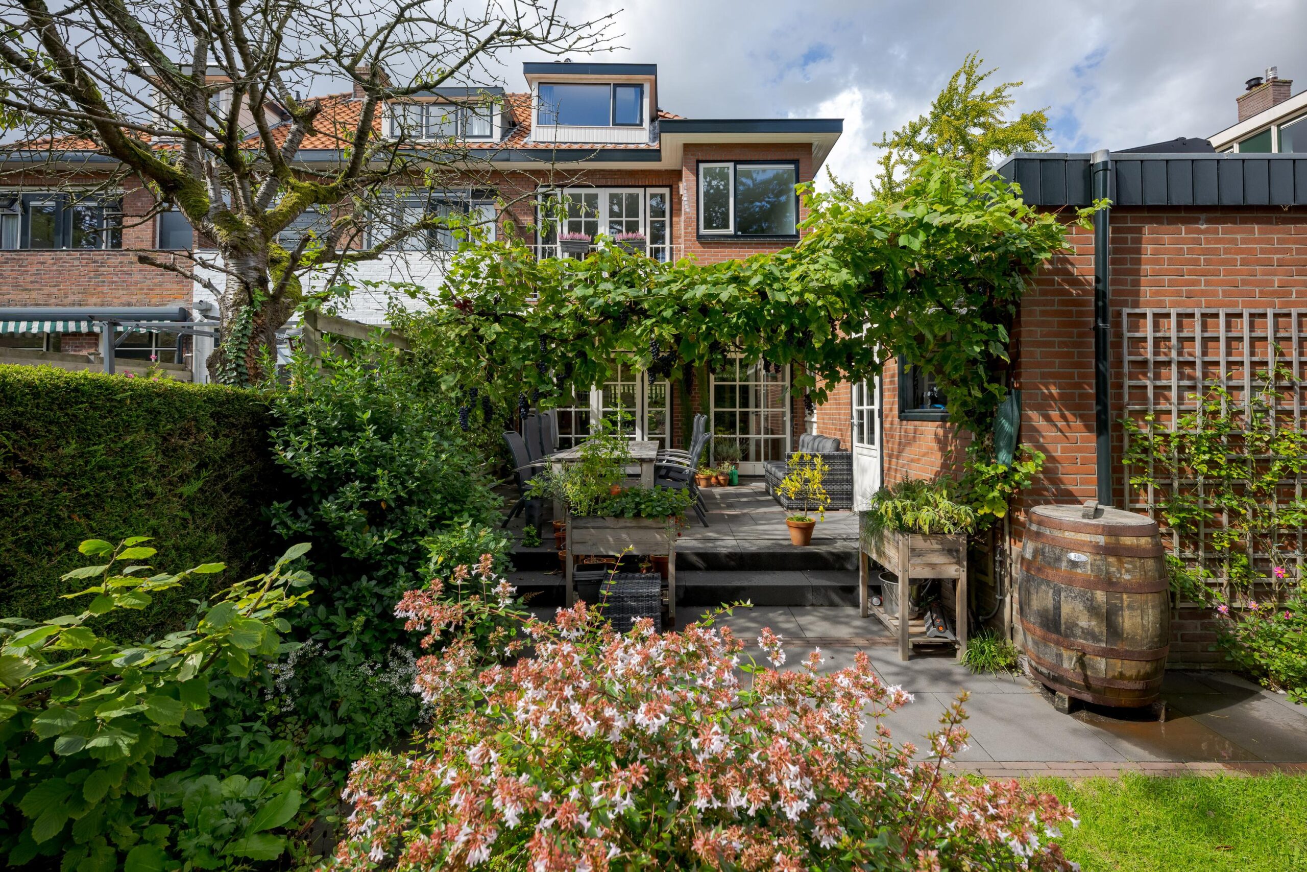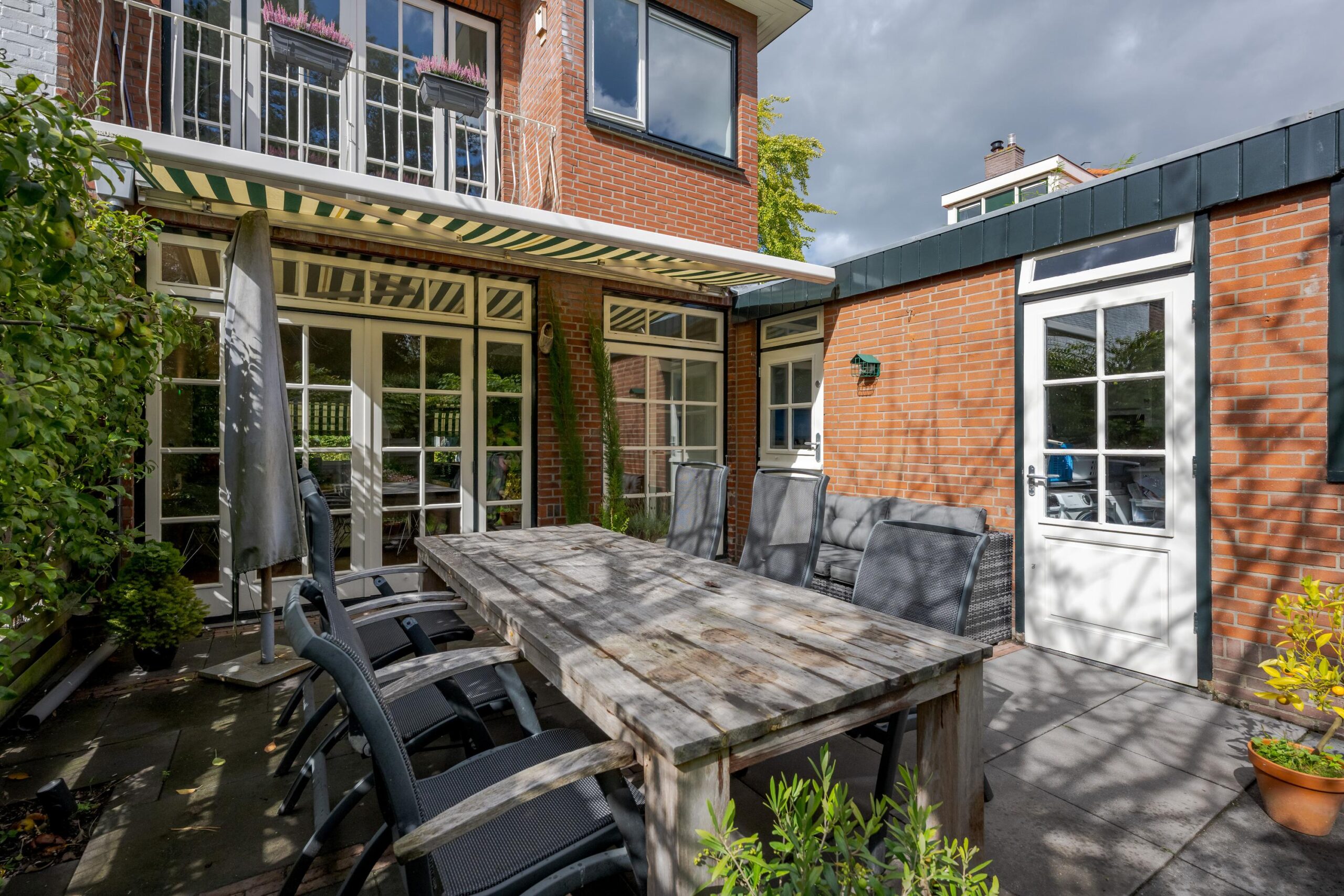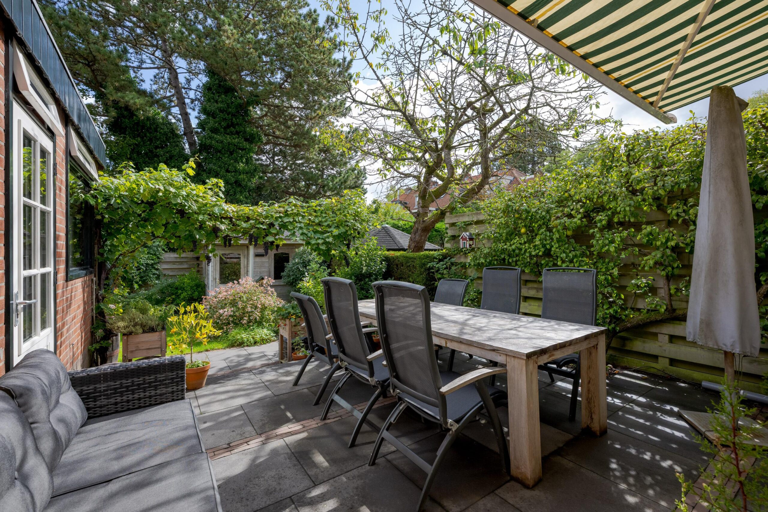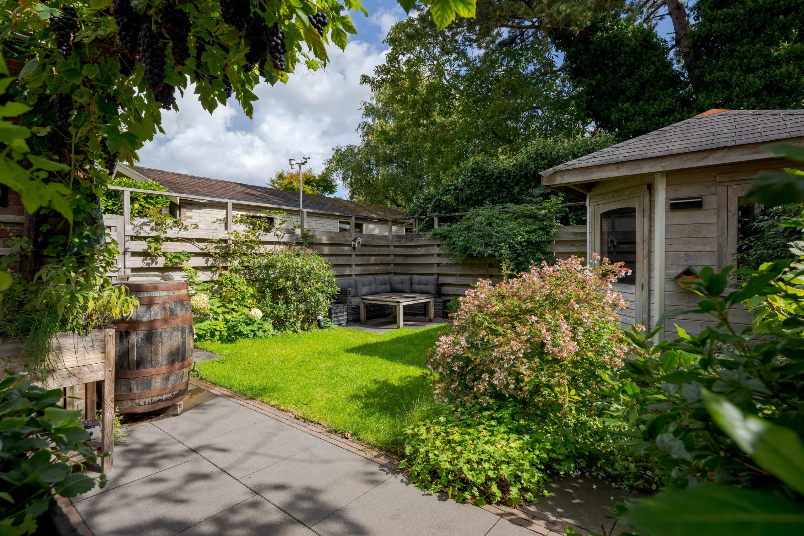 Tuin: Ruime en zonnige achtertuin te bereiken vanuit de eetkamer en keuken. Het verhoogde terras bij de woning beschikt over zonwering. In de uitbouw bevindt zich een separate ruime bijkeuken met CV en wasmachine aansluiting. In het onderste gedeelte van de tuin bevindt zich nog een losstaande berging.