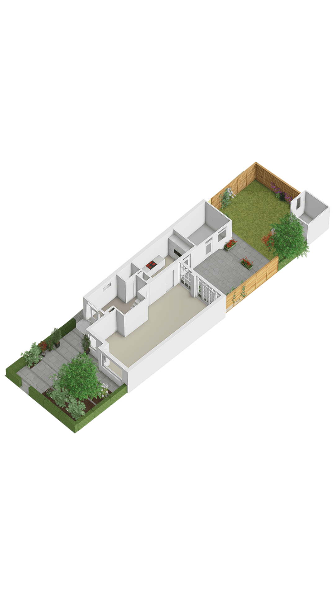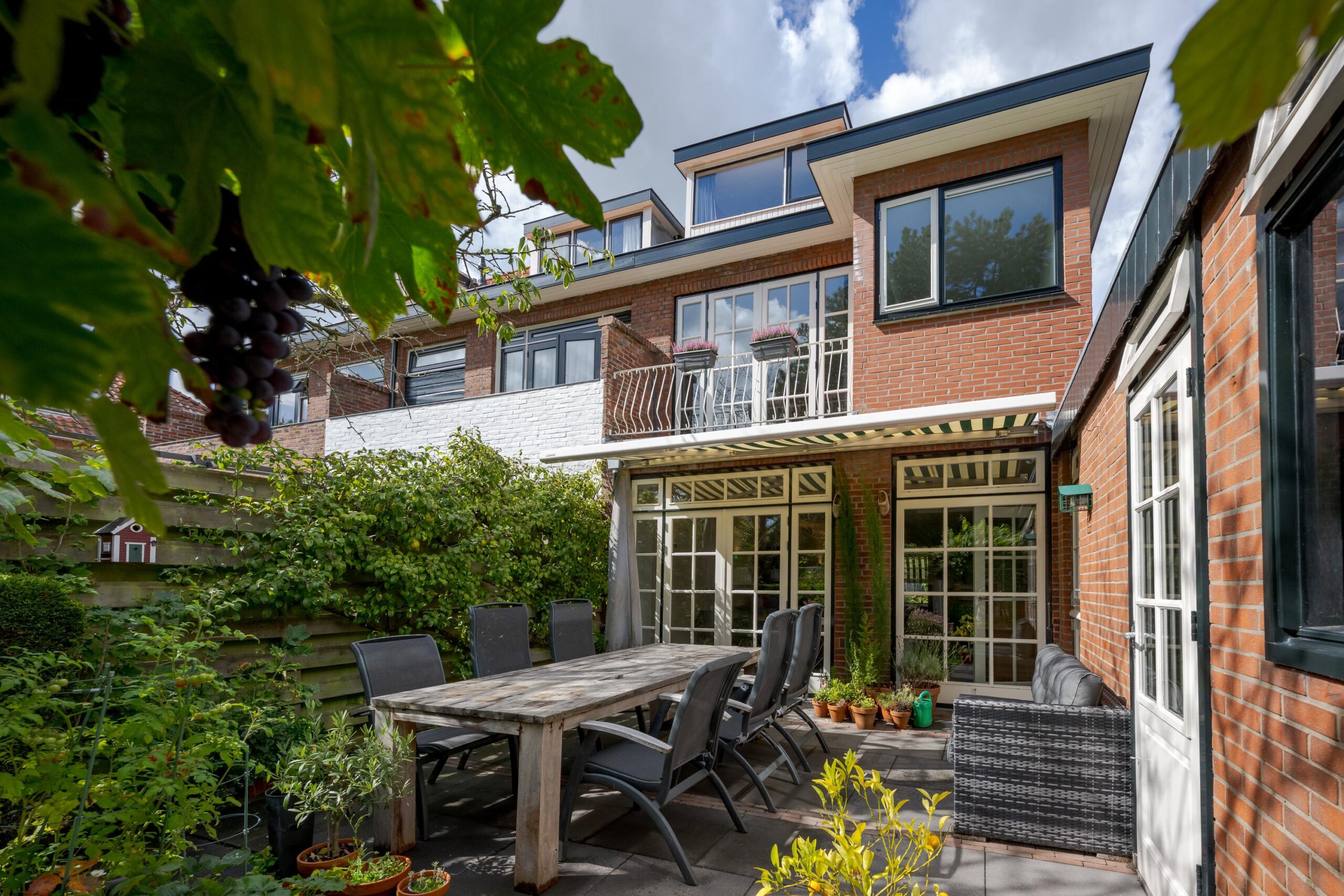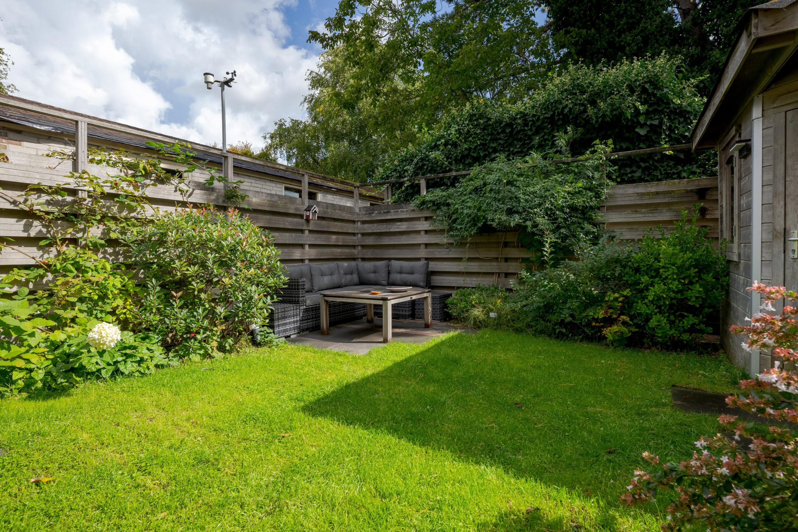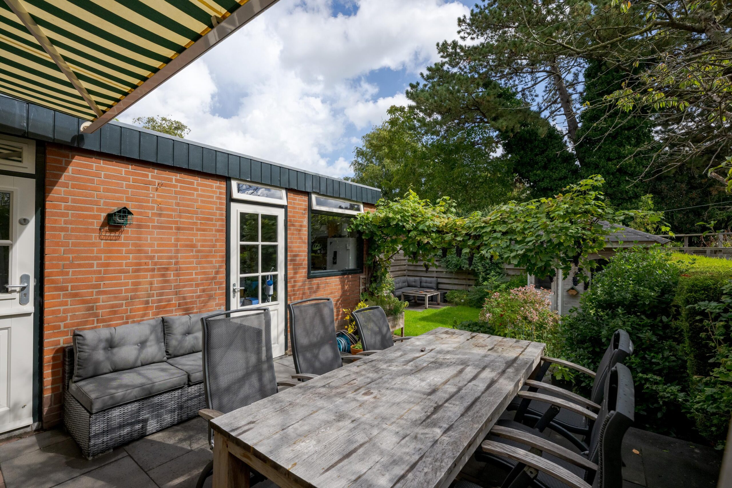 Tuin: Ruime en zonnige achtertuin te bereiken vanuit de eetkamer en keuken. Het verhoogde terras bij de woning beschikt over zonwering. In de uitbouw bevindt zich een separate ruime bijkeuken met CV en wasmachine aansluiting. In het onderste gedeelte van de tuin bevindt zich nog een losstaande berging.