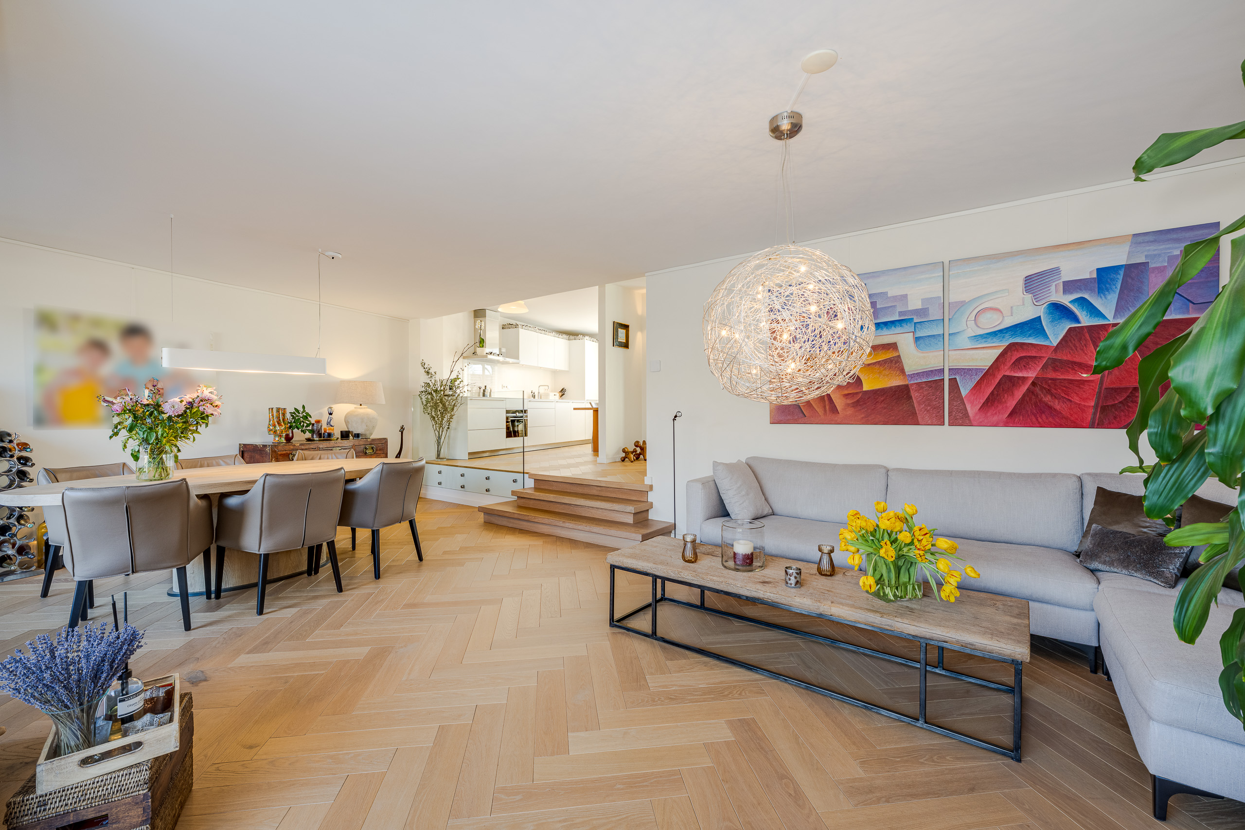 De indeling biedt bovendien enorme flexibiliteit dankzij een volwaardig appartement op de begane grond, ideaal voor ouders, een au pair, studerende kinderen of gasten.