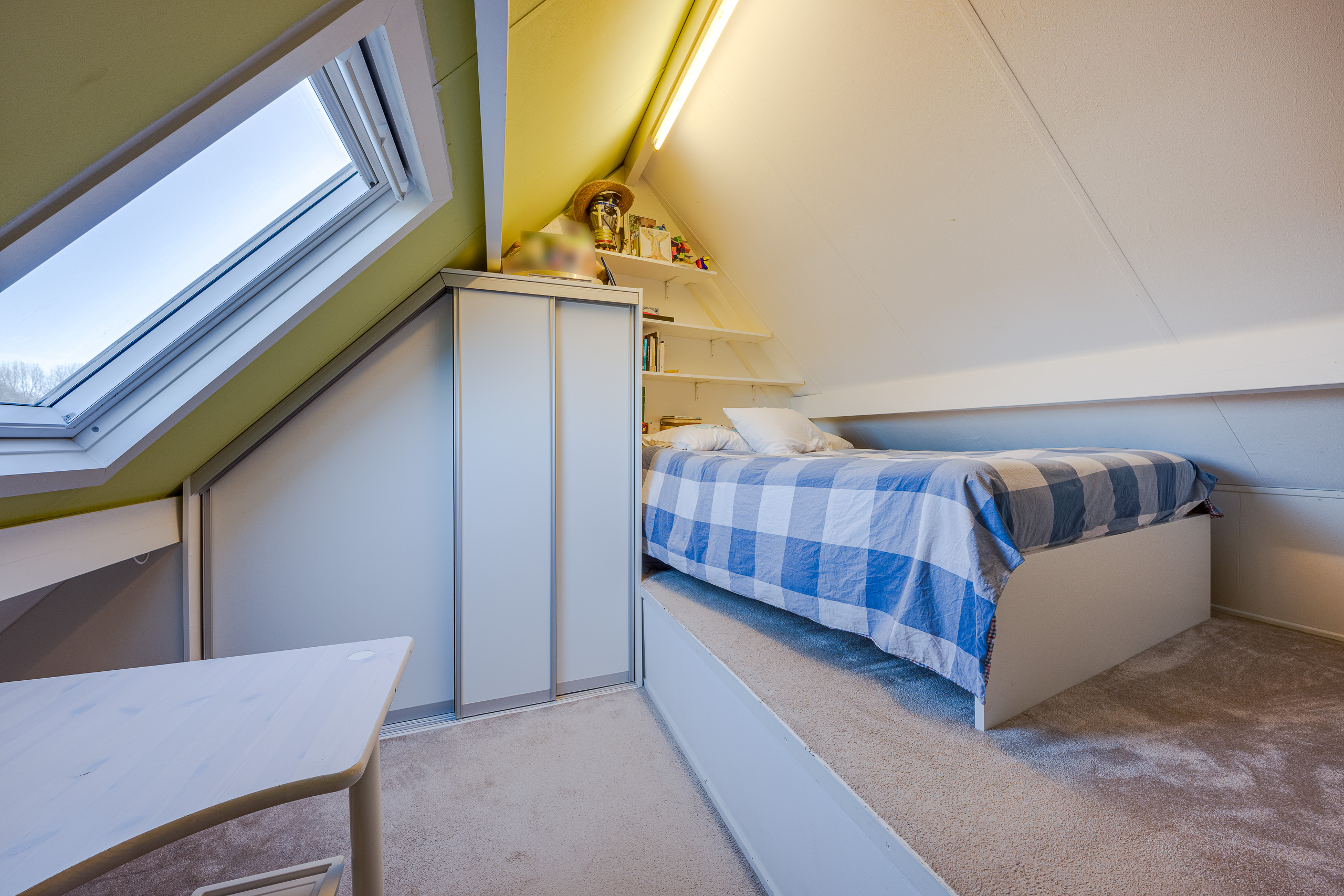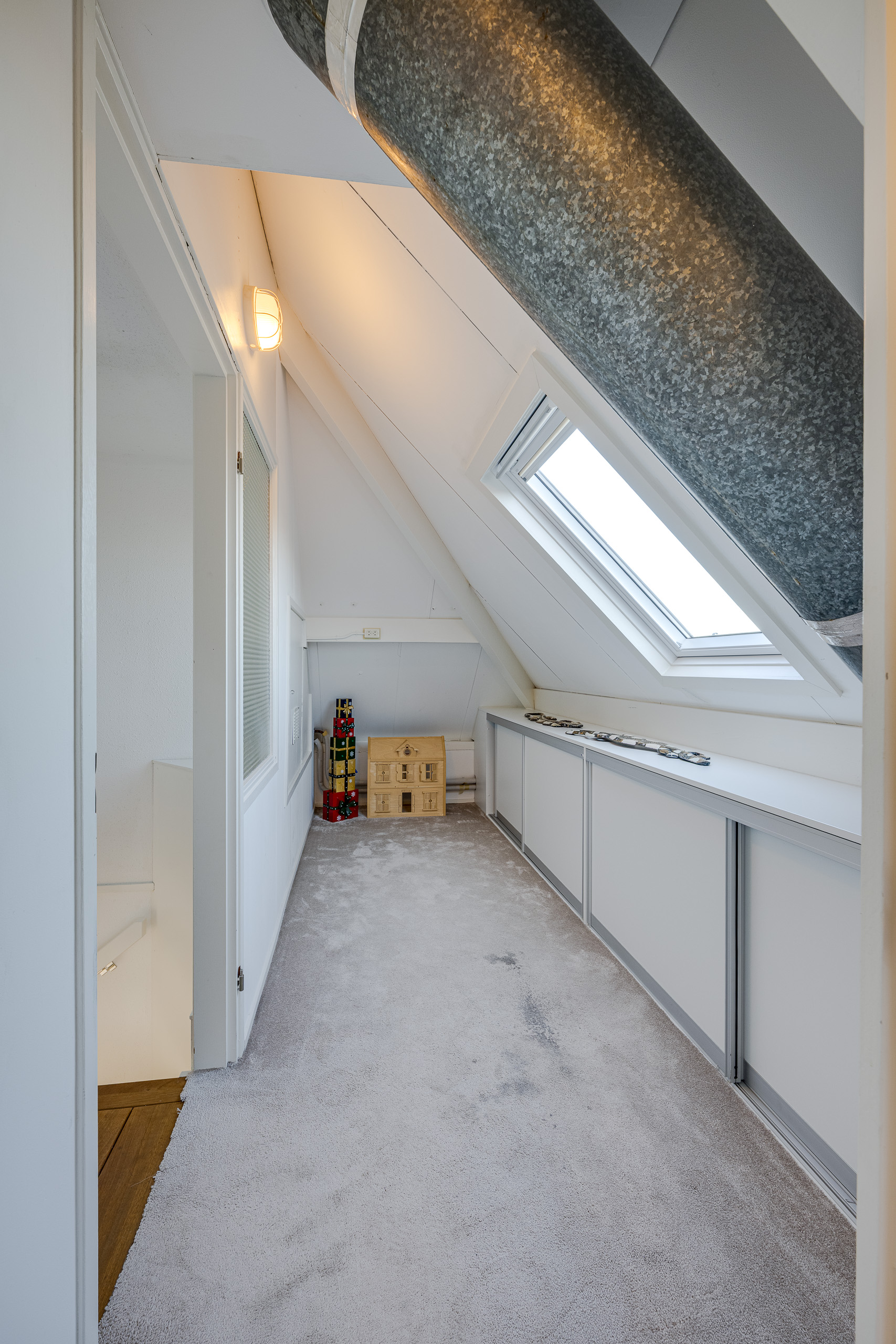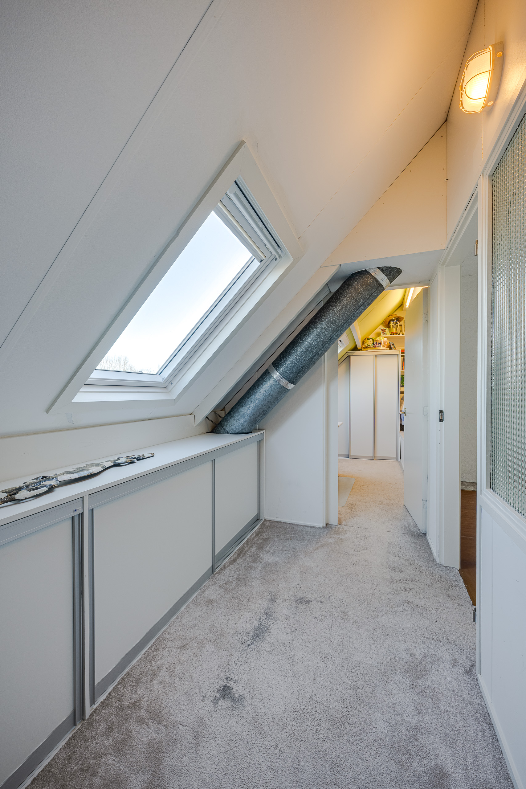 Overloop met grote kastruimte, extra slaapkamer, berging met toegang tot de cv-ruimte.