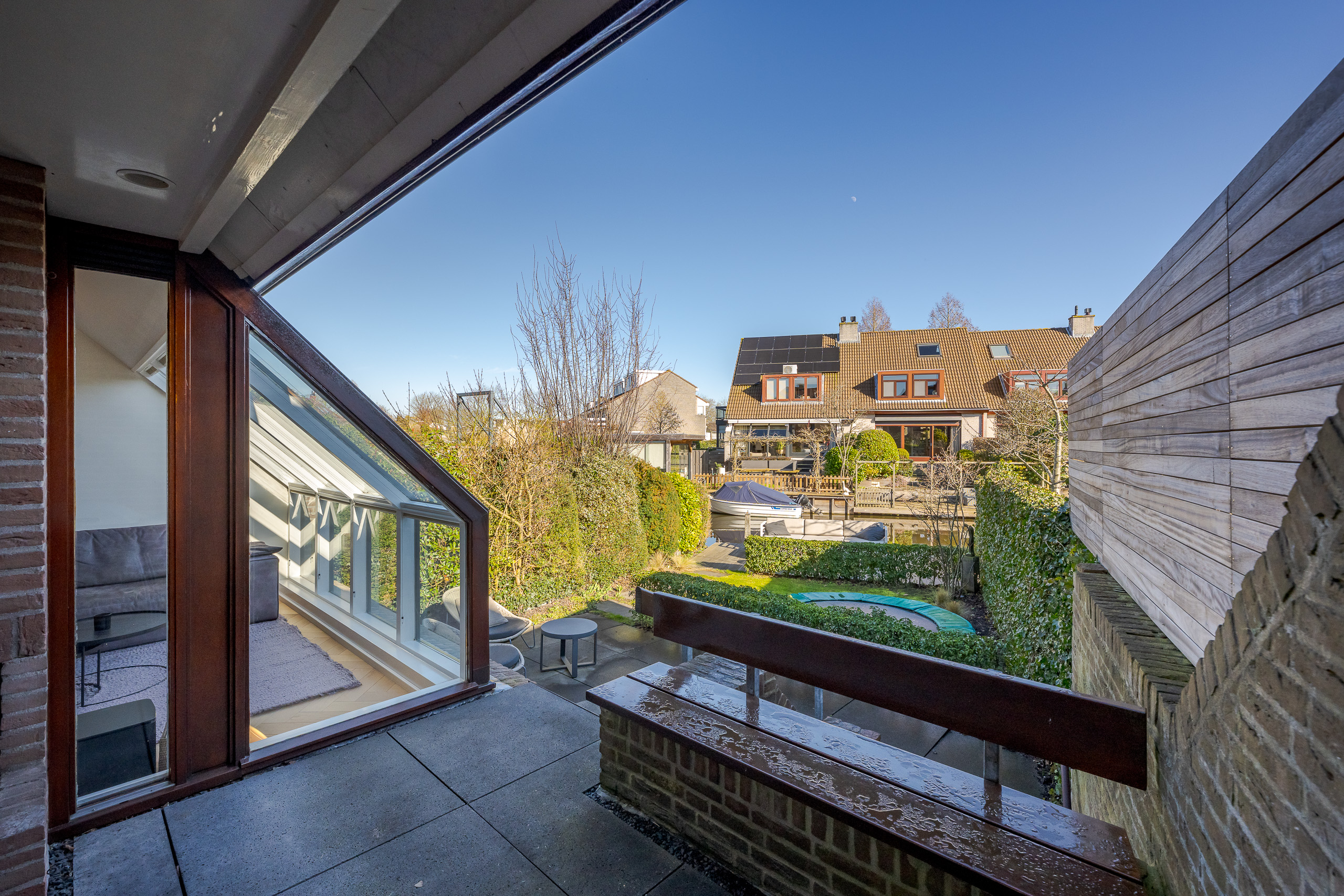 Twee terrassen voor zowel zon- als schaduwmomenten, hardhouten vlonder, eigen aanlegplek voor een boot, een echte luxe in dit gebied.