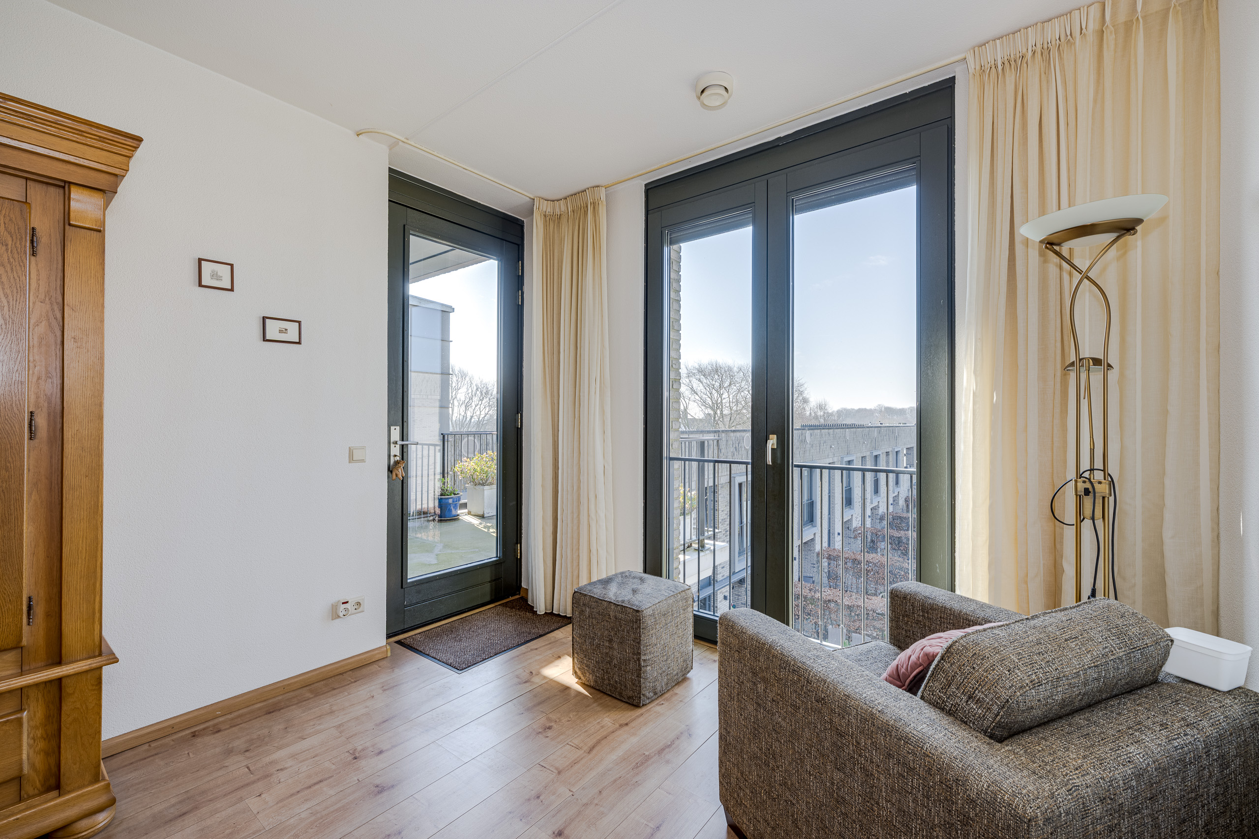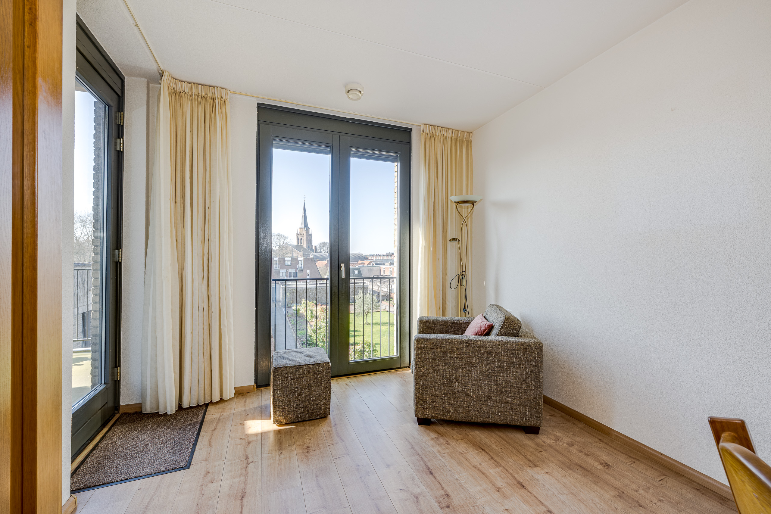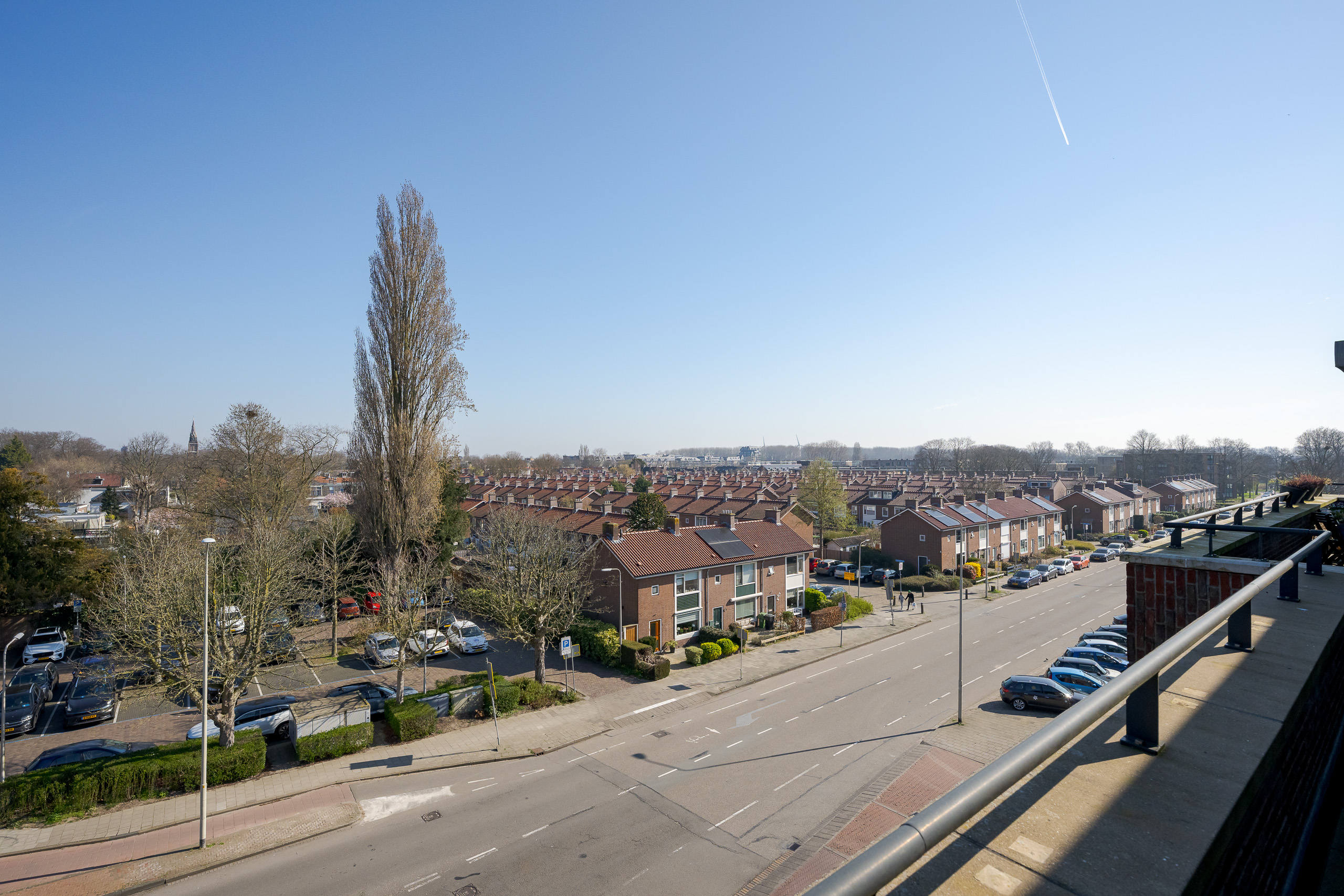 Het appartement ligt op de 3e en bovenste woonlaag aan de Raadhuislaan. De ligging op de topverdieping geeft niet alleen een weids uitzicht, maar ook een extra gevoel van ruimte en privacy. Helemaal omdat het appartement beschikt over een balkon aan de voor- en achterzijde. De binnentuin is fraai aangelegd naar een ontwerp van Copijn Tuin- en landschapsarchitecten en alleen toegankelijk voor bewoners van dit appartementengebouw.