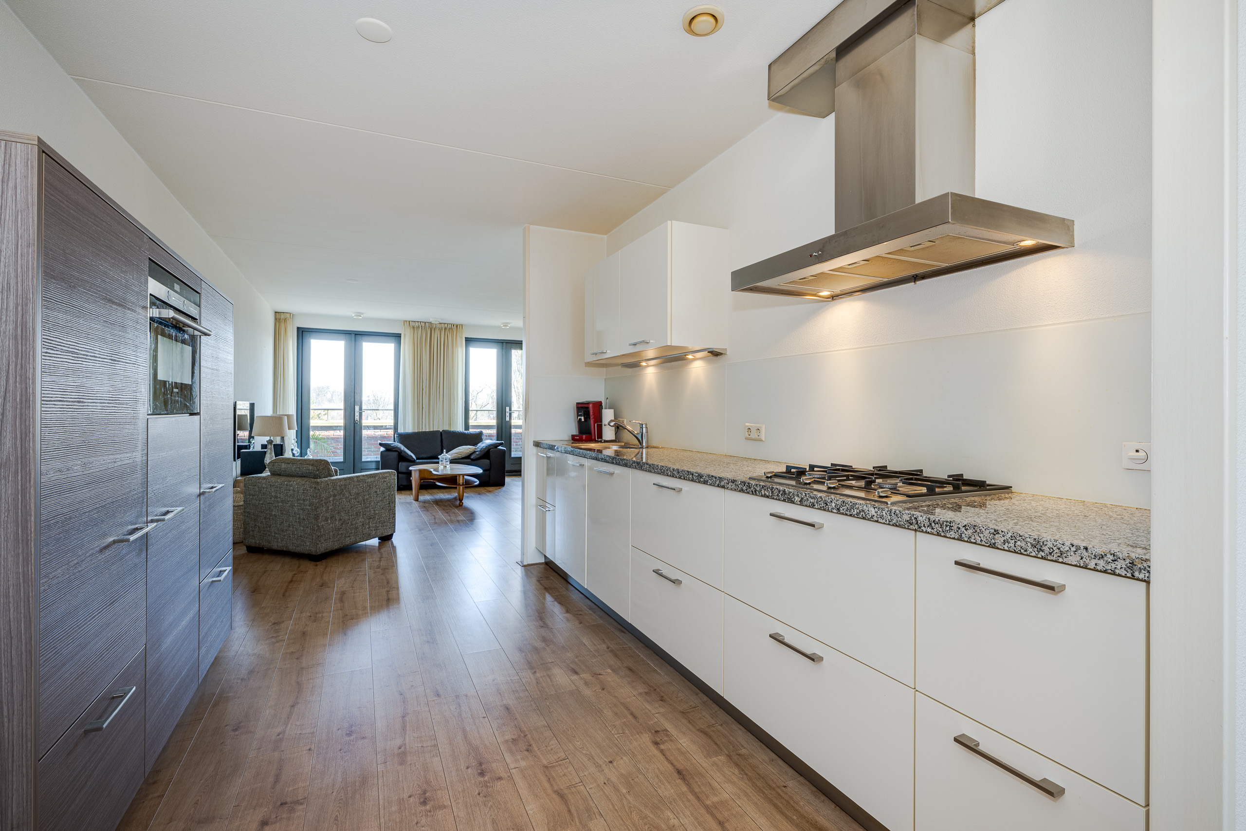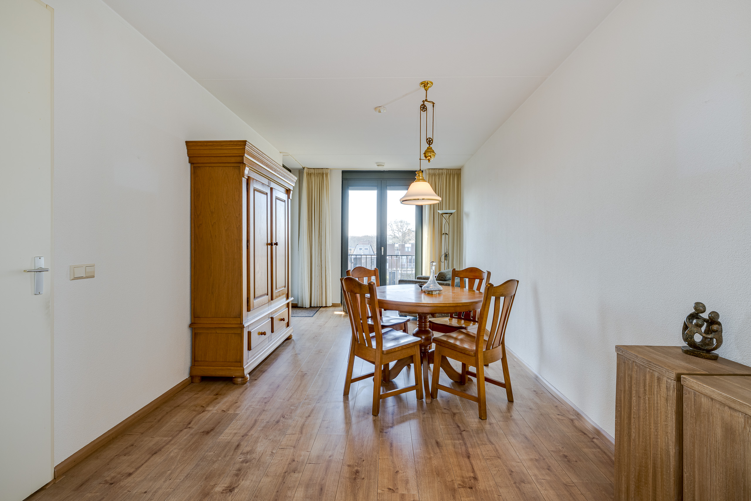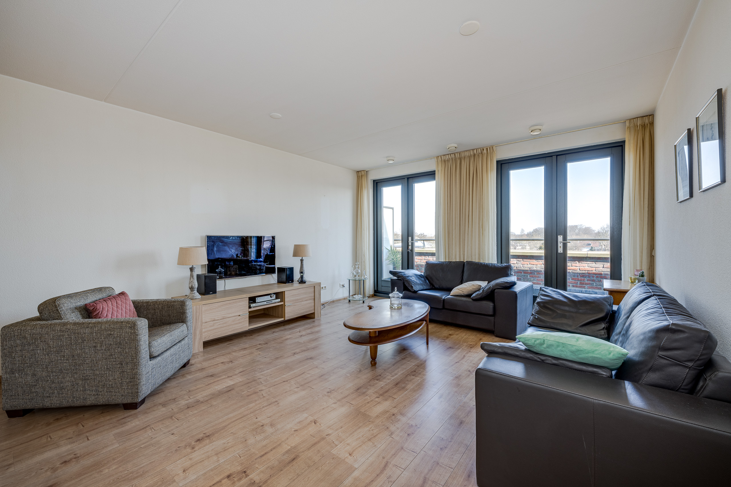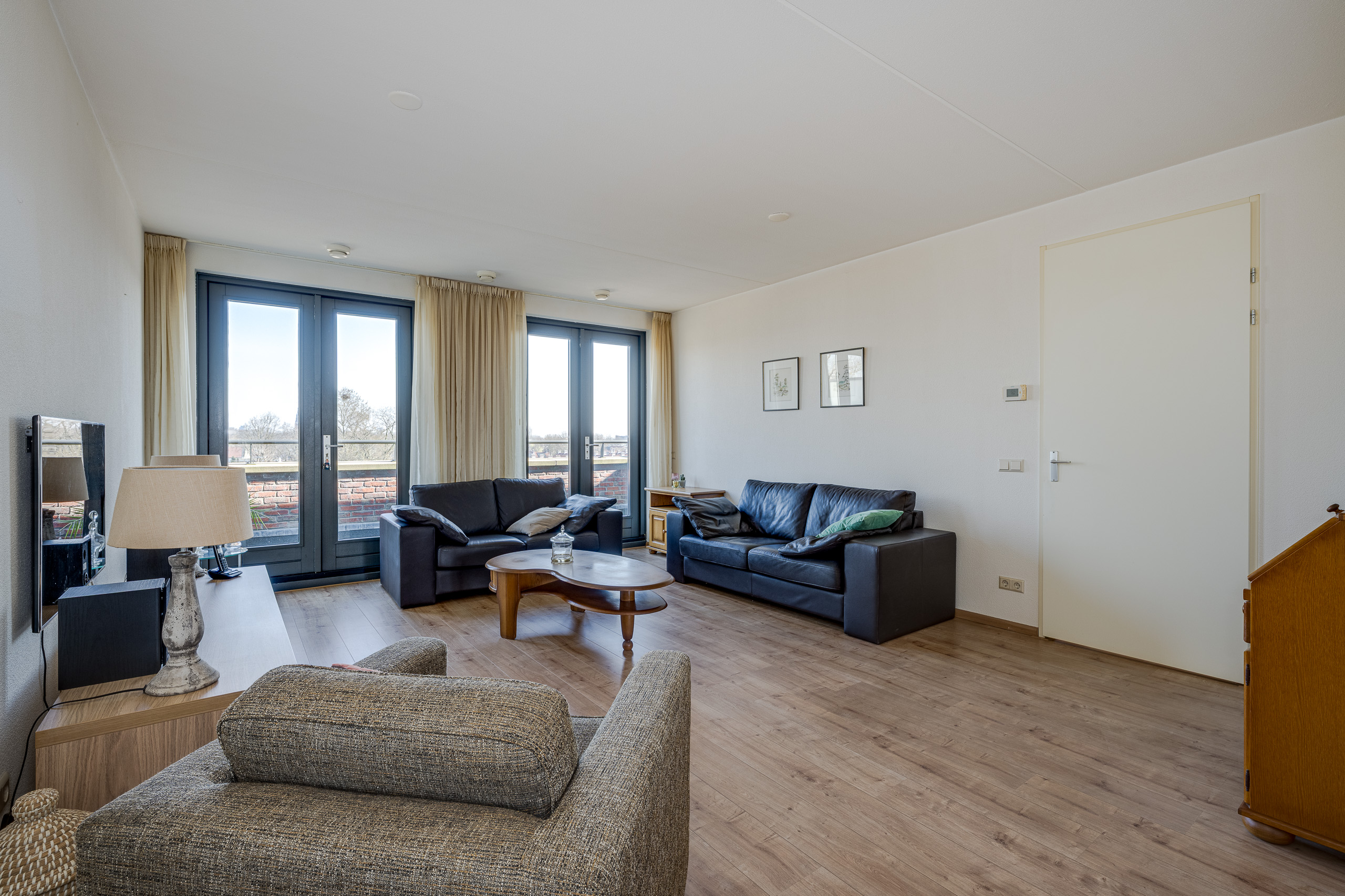 Het appartement ligt op de 3e en bovenste woonlaag aan de Raadhuislaan. De ligging op de topverdieping geeft niet alleen een weids uitzicht, maar ook een extra gevoel van ruimte en privacy. Helemaal omdat het appartement beschikt over een balkon aan de voor- en achterzijde. De binnentuin is fraai aangelegd naar een ontwerp van Copijn Tuin- en landschapsarchitecten en alleen toegankelijk voor bewoners van dit appartementengebouw.