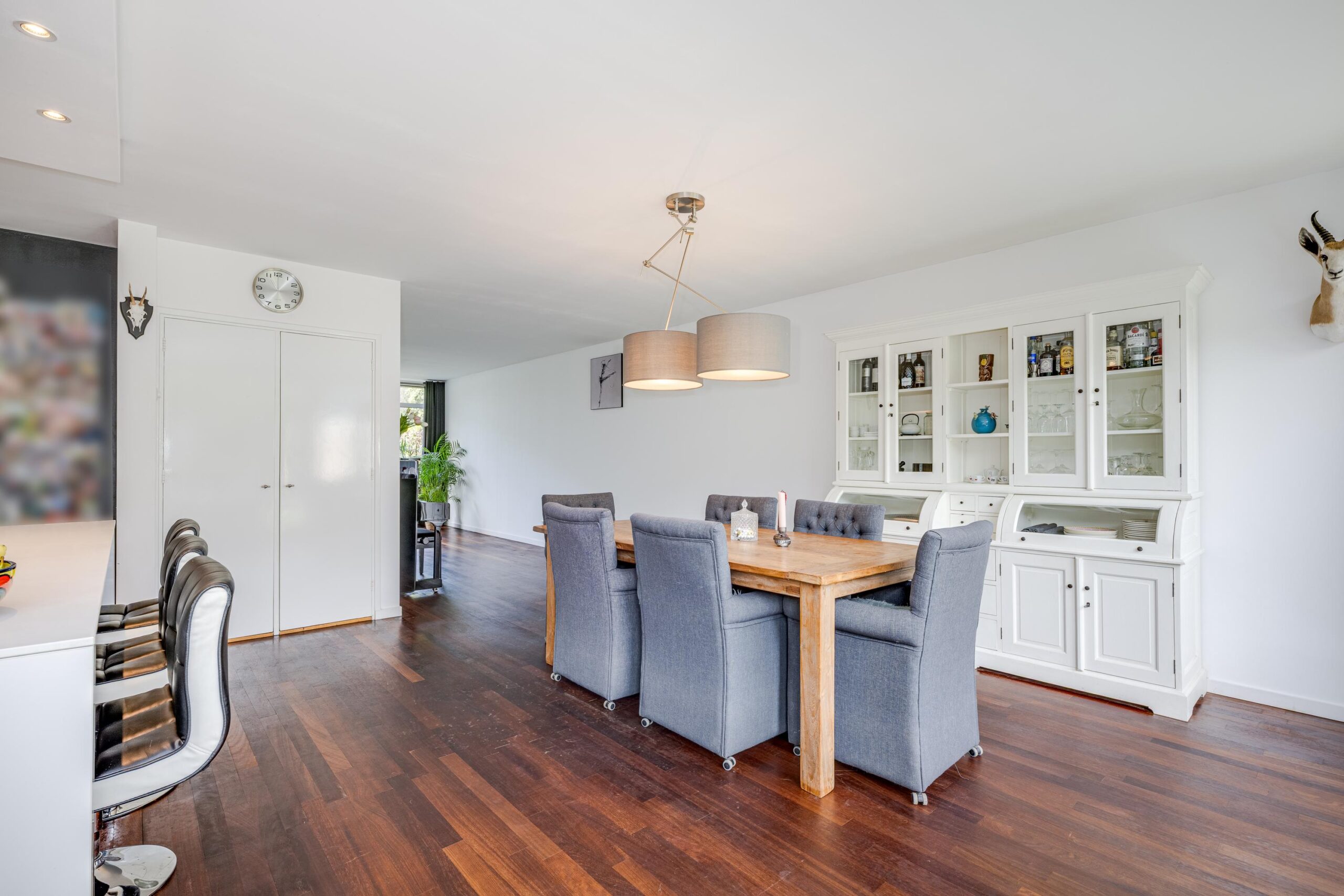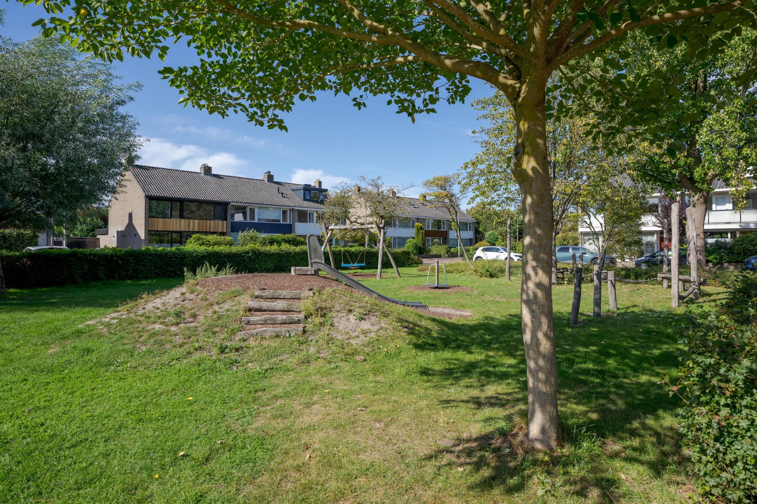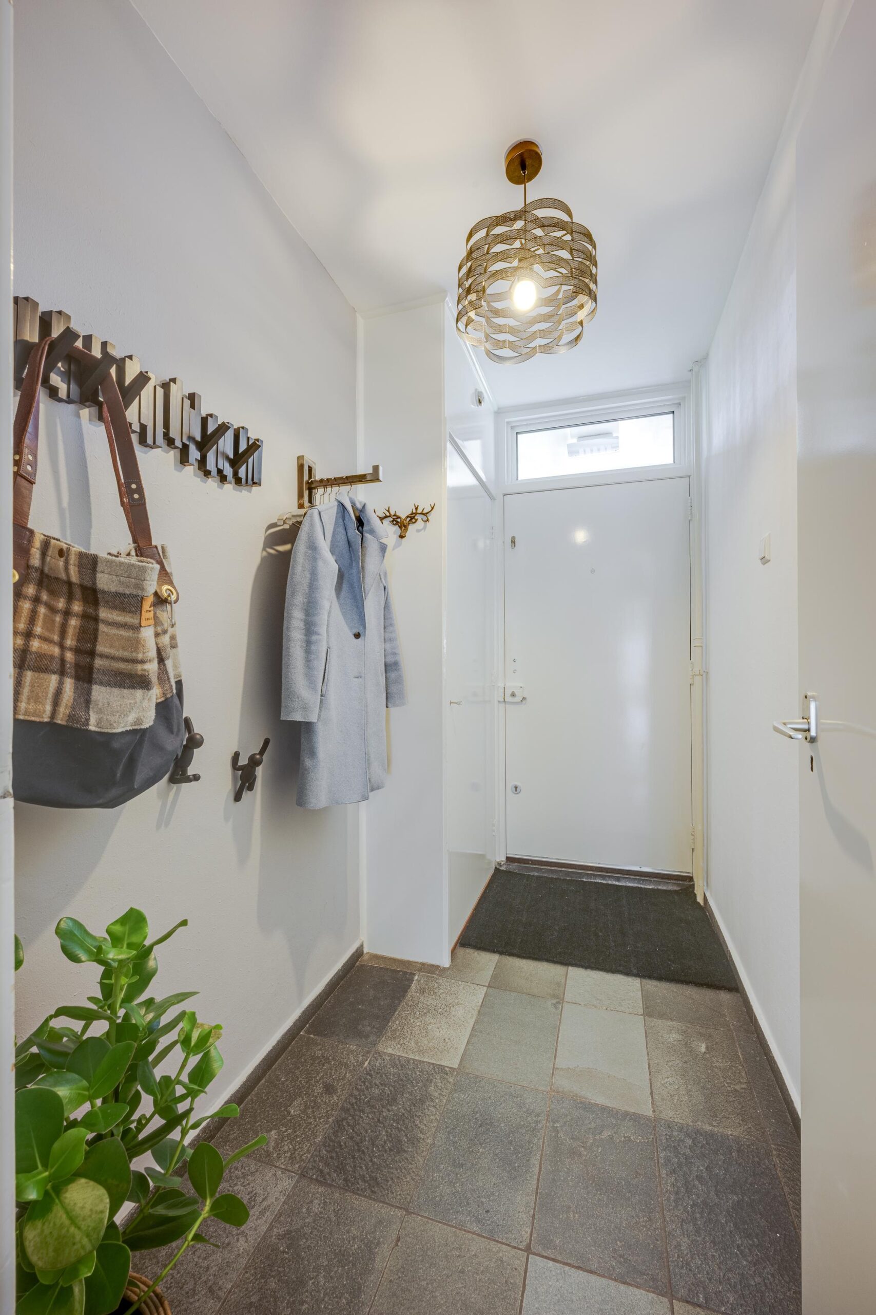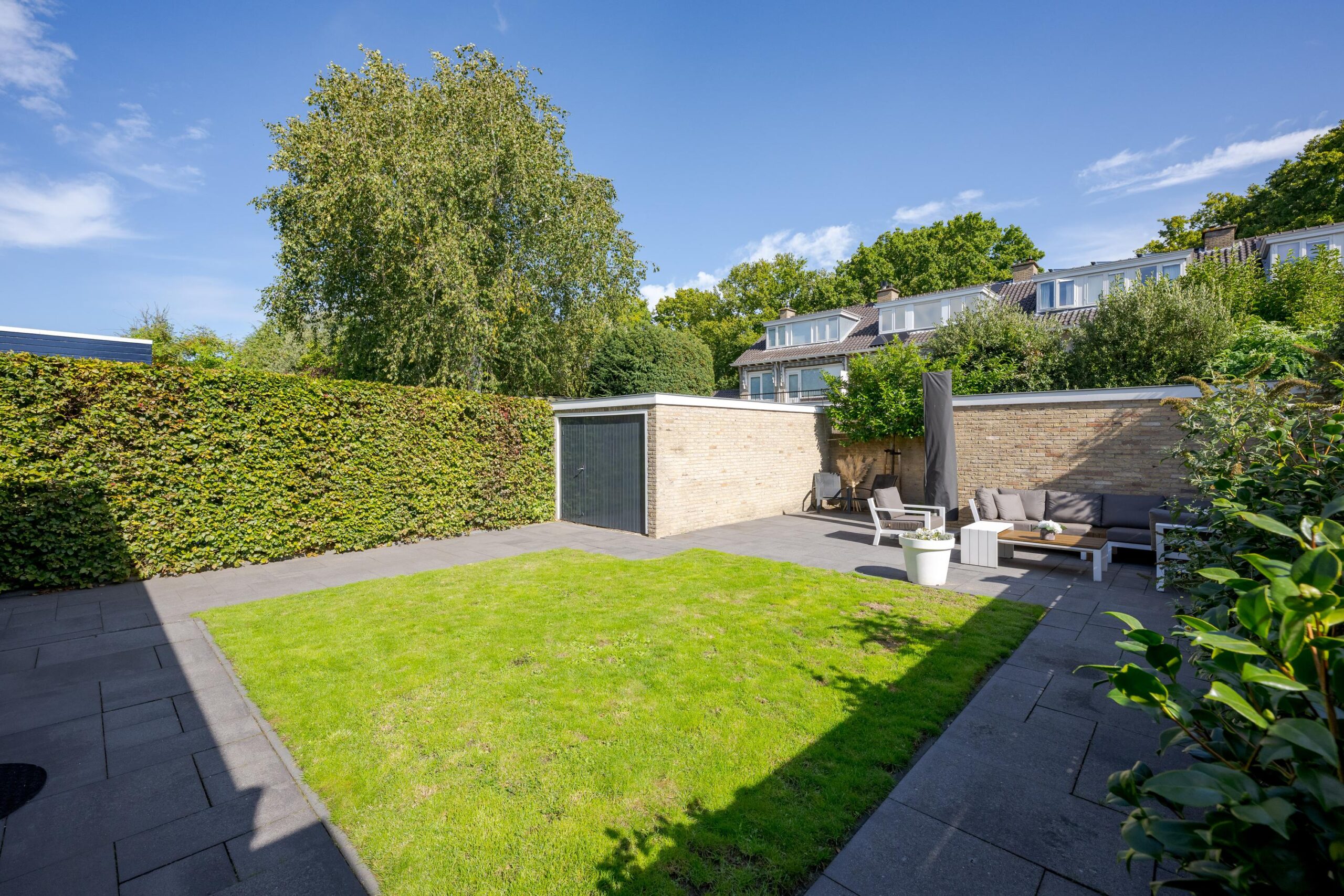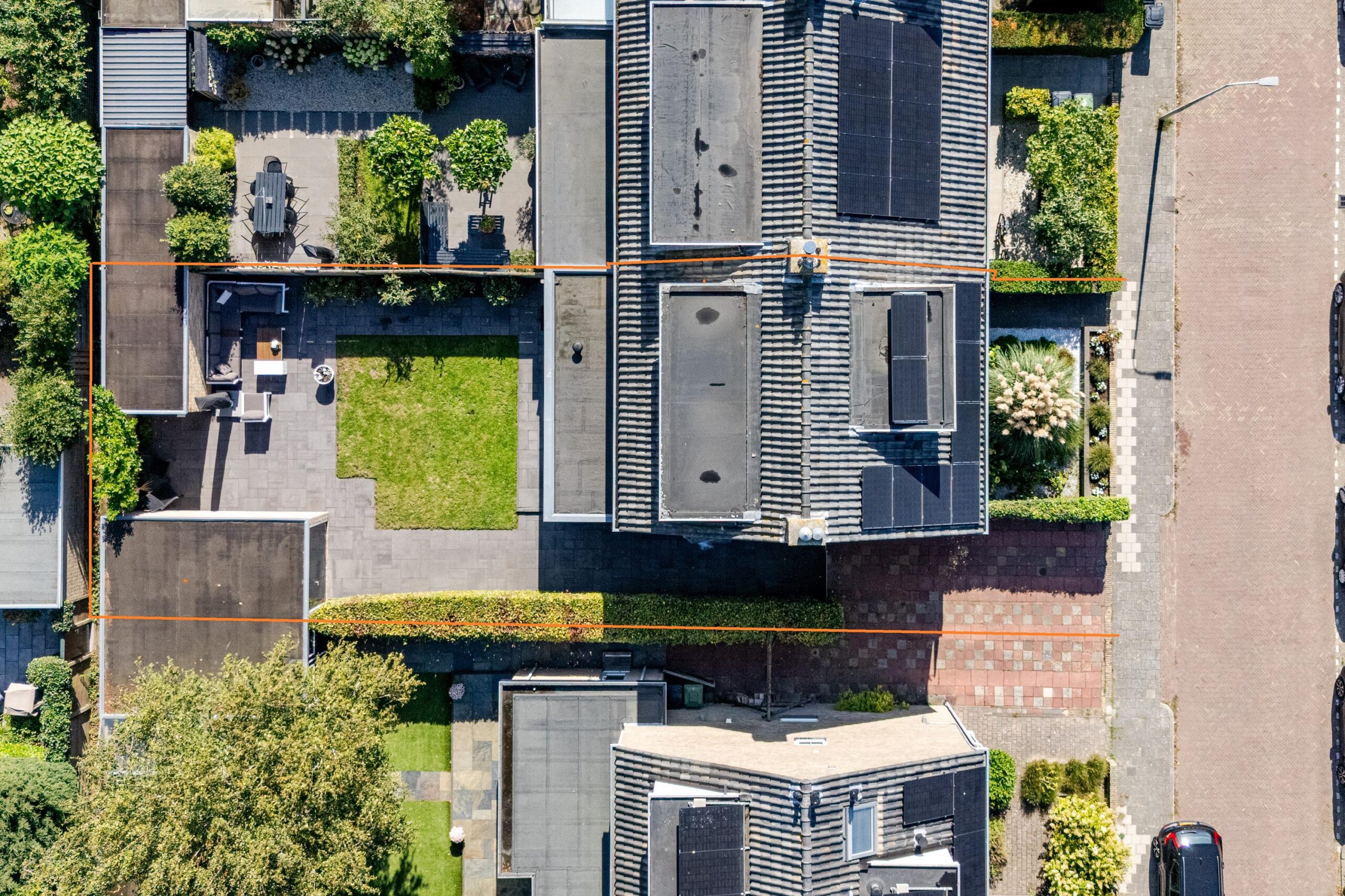Begane grond: Voortuin en entree van de woning met een garderobe en meterkast. De entree loopt over in een hal met separaat toilet, deur naar de woonkamer en trap naar de eerste verdieping. De woonkamer loopt over in de woonkeuken. Vanuit de woonkeuken met kookeiland kijk je de enorm grote achtertuin in. Achter de openslaande deuren, bevindt zich de tuin. In de tuin bevindt zich een vrijstaande garage en stenen berging.