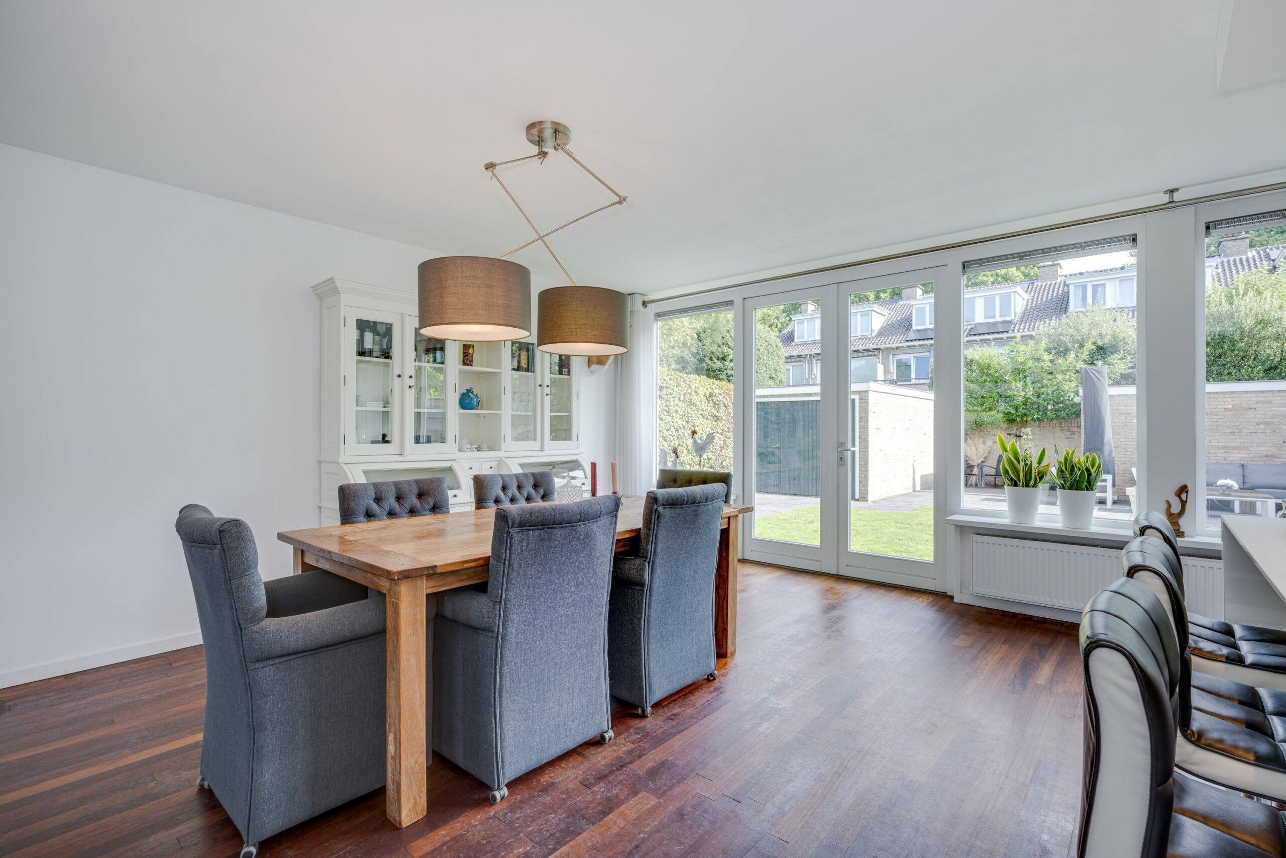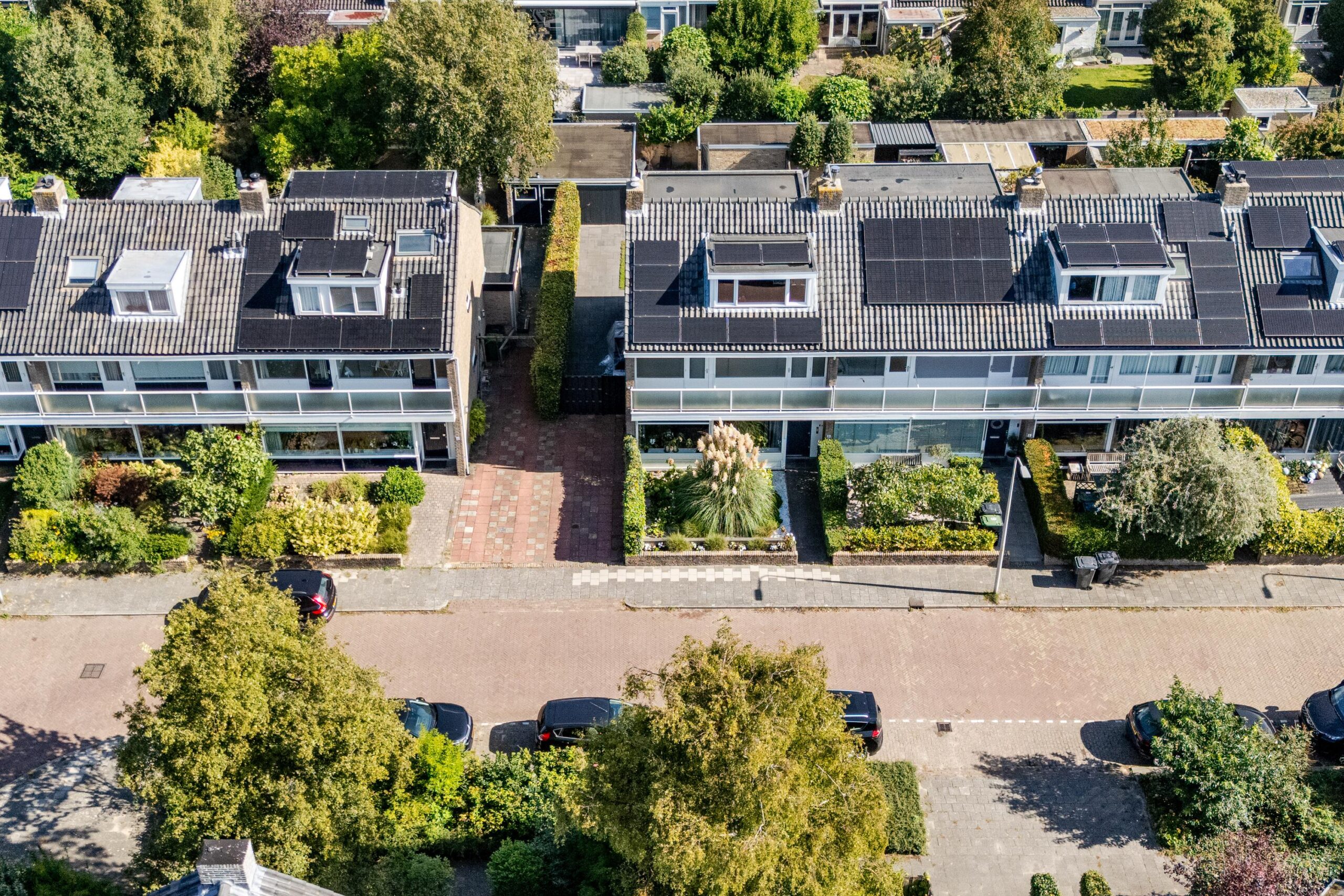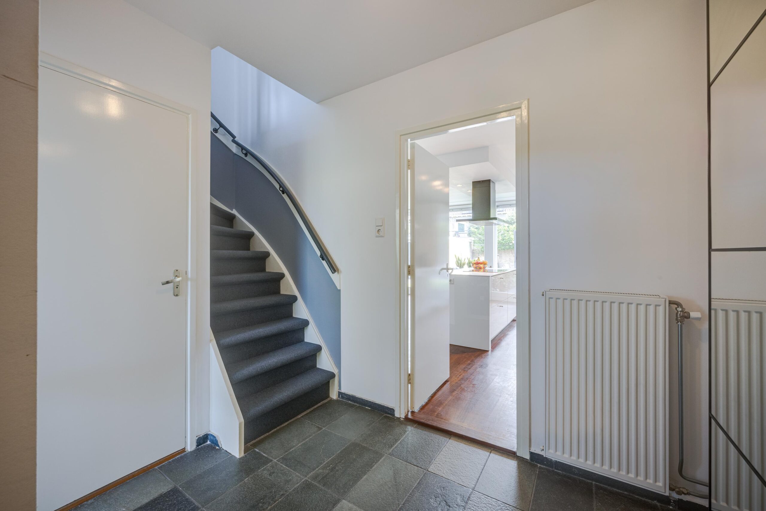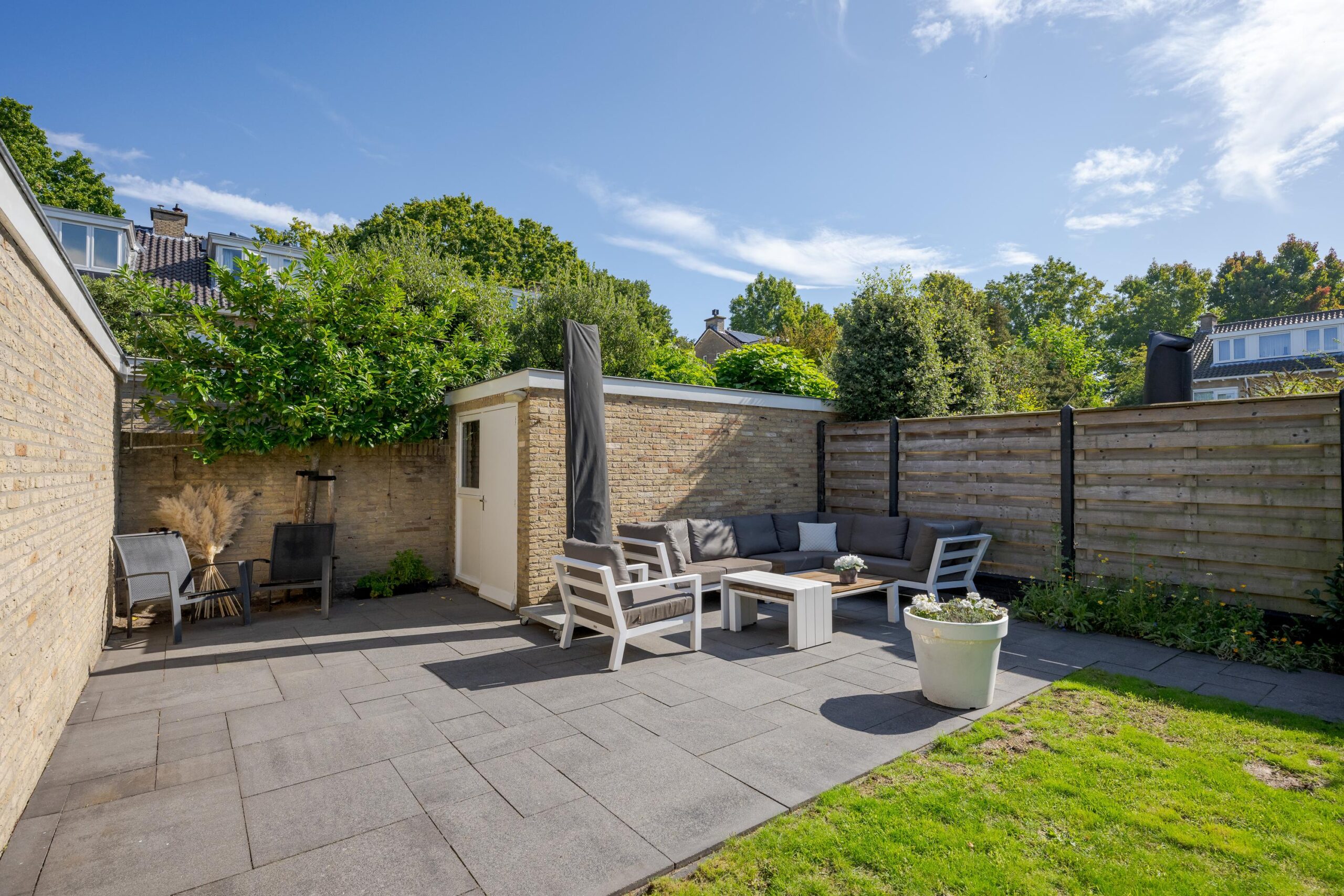 Begane grond: Voortuin en entree van de woning met een garderobe en meterkast. De entree loopt over in een hal met separaat toilet, deur naar de woonkamer en trap naar de eerste verdieping. De woonkamer loopt over in de woonkeuken. Vanuit de woonkeuken met kookeiland kijk je de enorm grote achtertuin in. Achter de openslaande deuren, bevindt zich de tuin. In de tuin bevindt zich een vrijstaande garage en stenen berging.