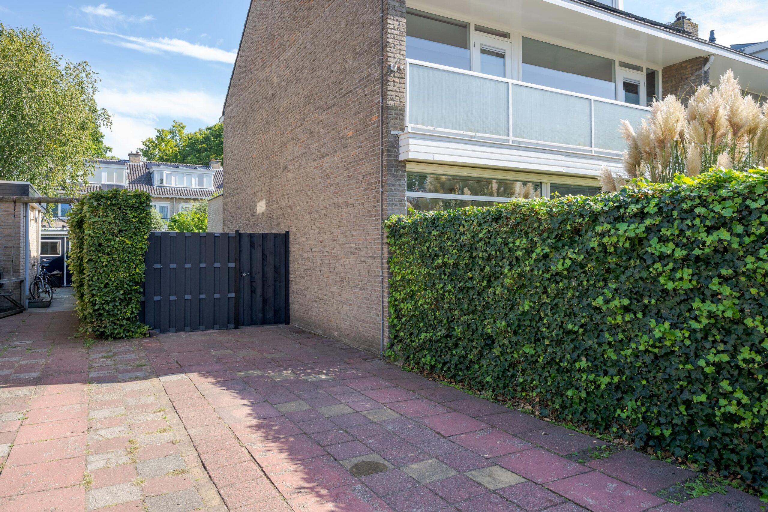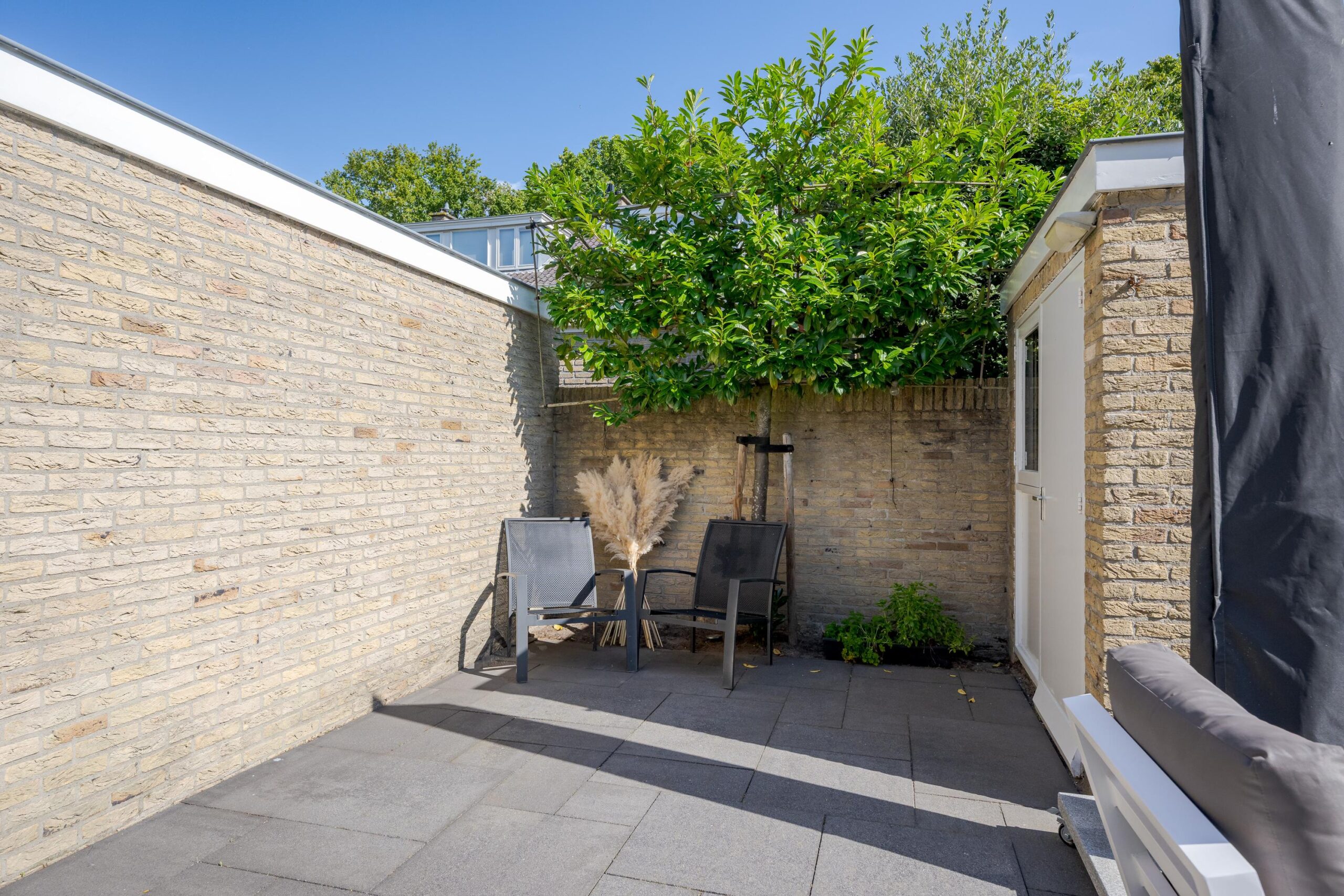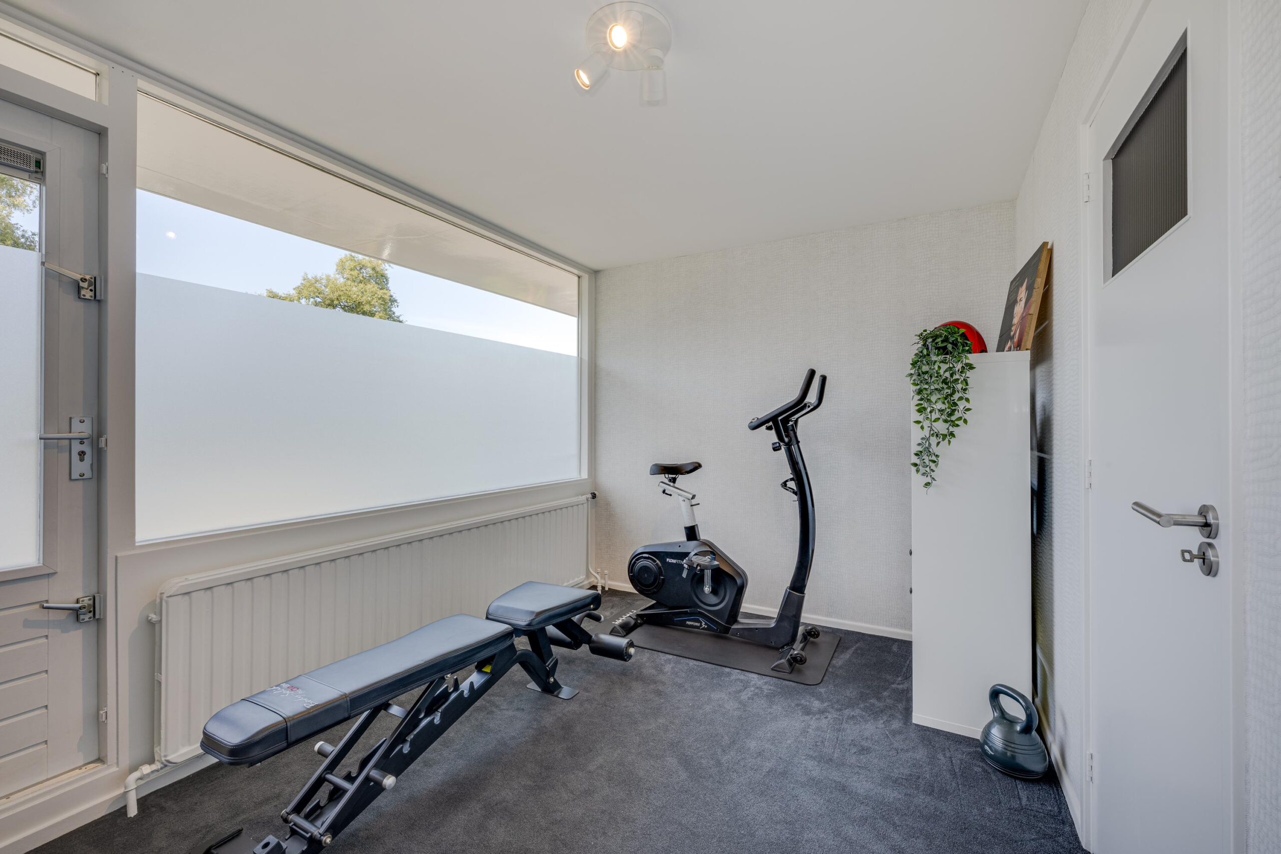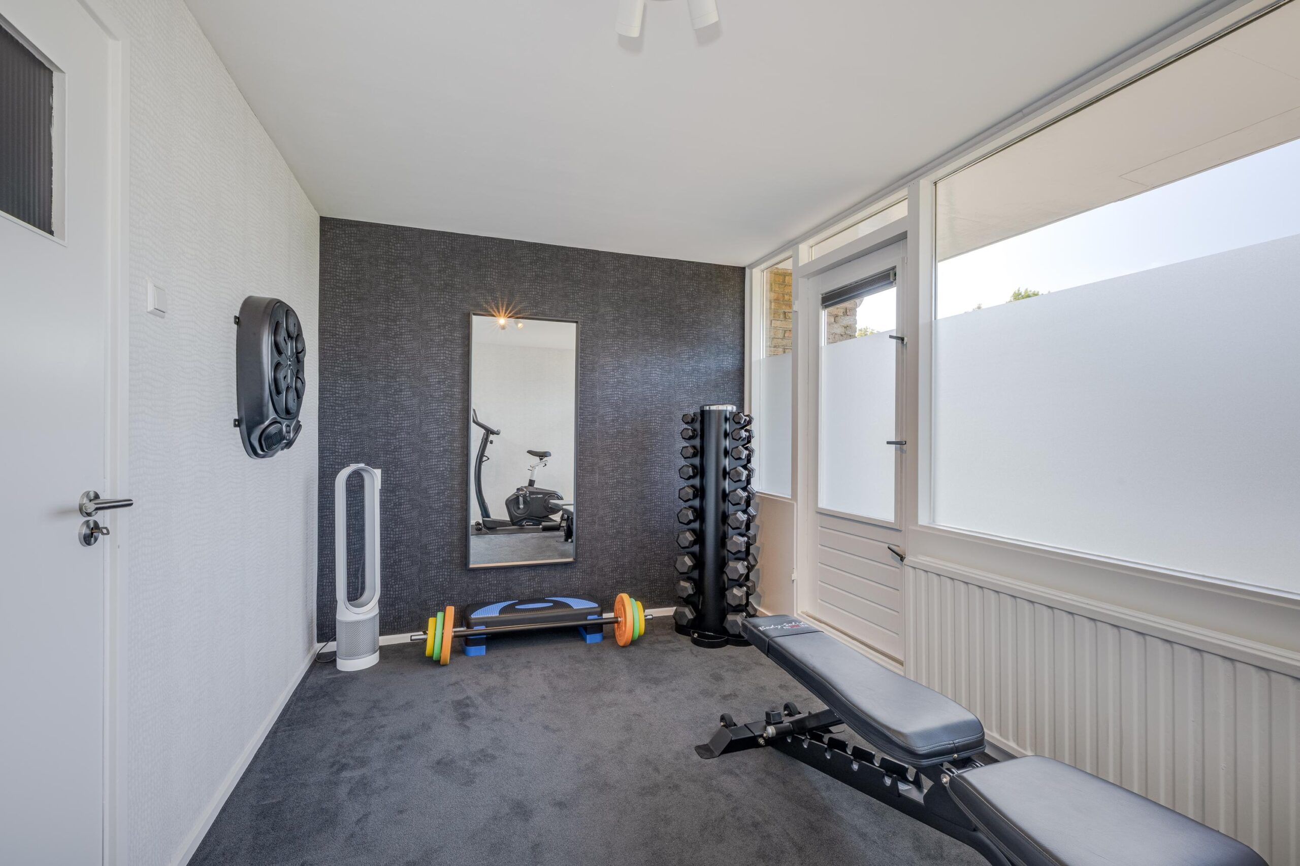 Begane grond: Voortuin en entree van de woning met een garderobe en meterkast. De entree loopt over in een hal met separaat toilet, deur naar de woonkamer en trap naar de eerste verdieping. De woonkamer loopt over in de woonkeuken. Vanuit de woonkeuken met kookeiland kijk je de enorm grote achtertuin in. Achter de openslaande deuren, bevindt zich de tuin. In de tuin bevindt zich een vrijstaande garage en stenen berging.