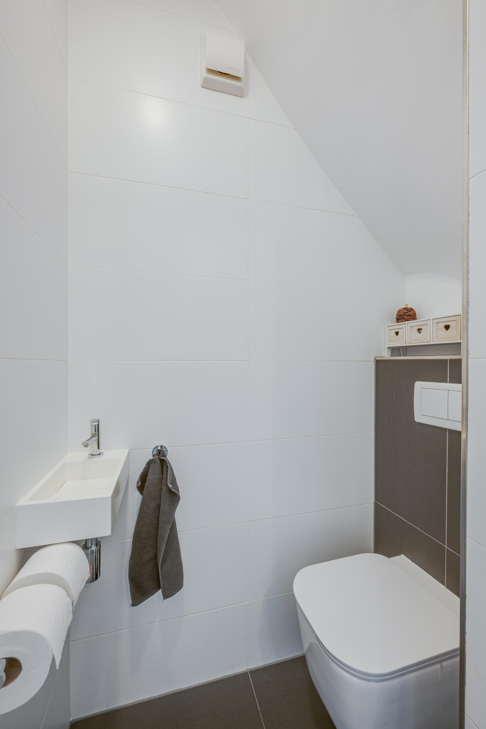 Tweede verdieping: Zeer ruime overloop met losse wastafel en toegang tot slaapkamer vier en vijf. Slaapkamer vier beschikt over een wasmachine aansluiting.