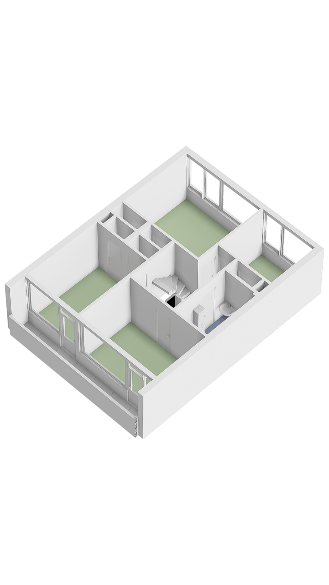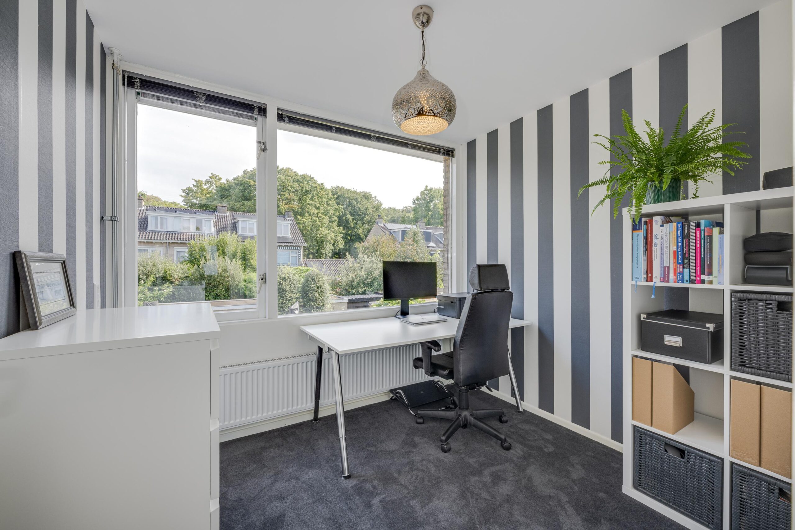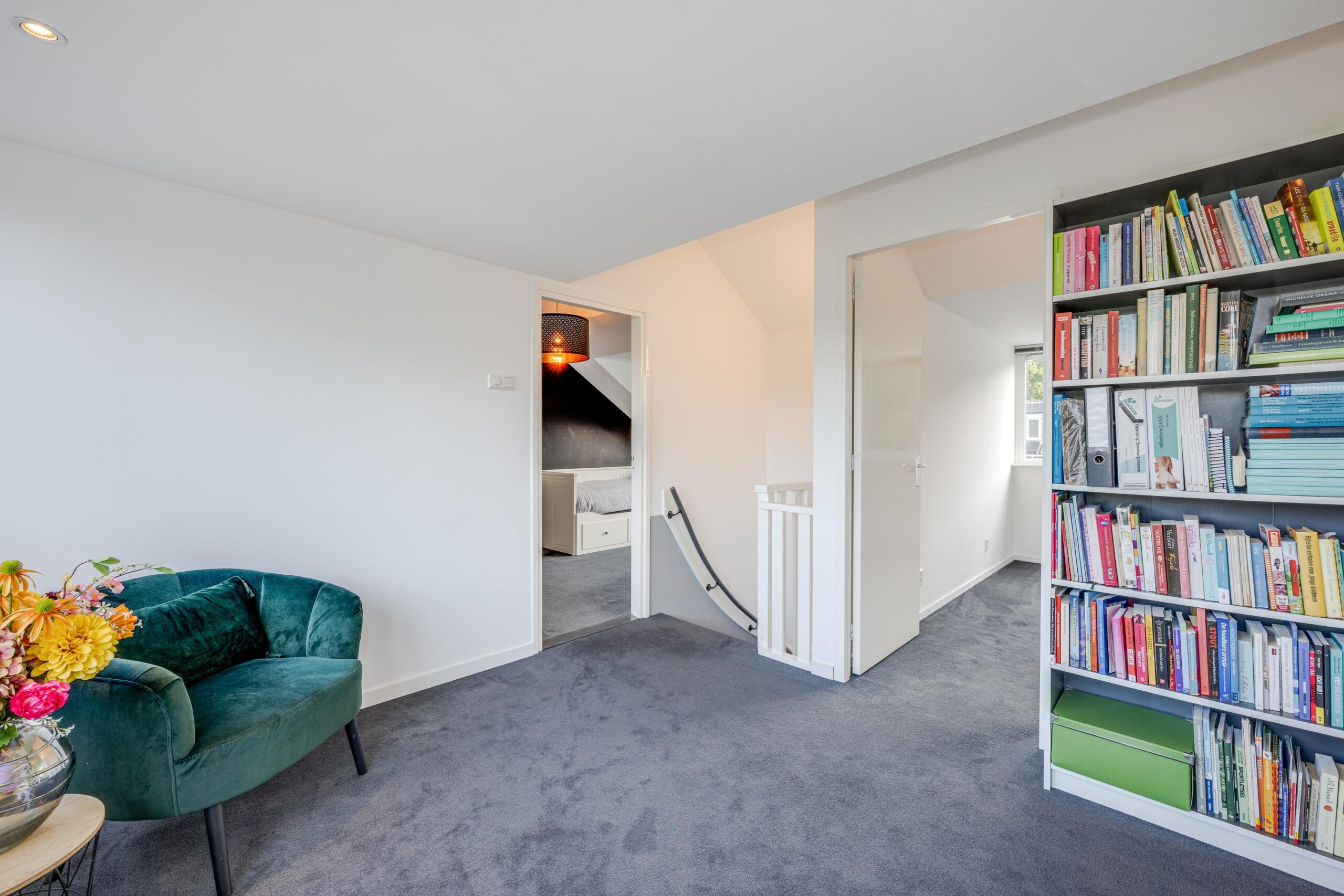 Eerste verdieping: Overloop met diverse deuren naar maar liefst vier slaapkamers. Slaapkamer een en twee met toegang tot het balkon. Slaapkamer drie en vier hebben uitzicht op de achtertuin. De badkamer is voorzien van een toilet, bad en douche. Trap naar de tweede etage.