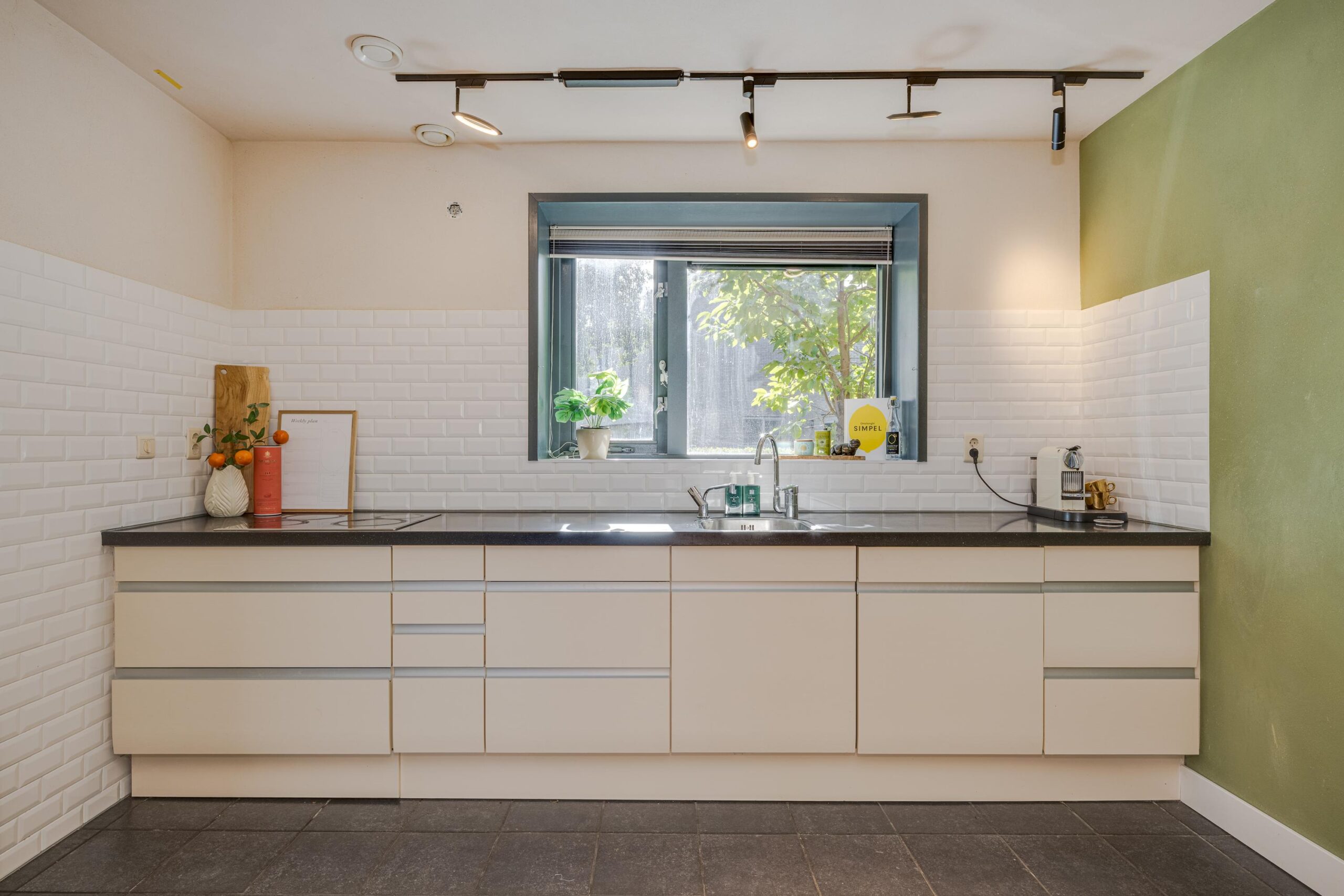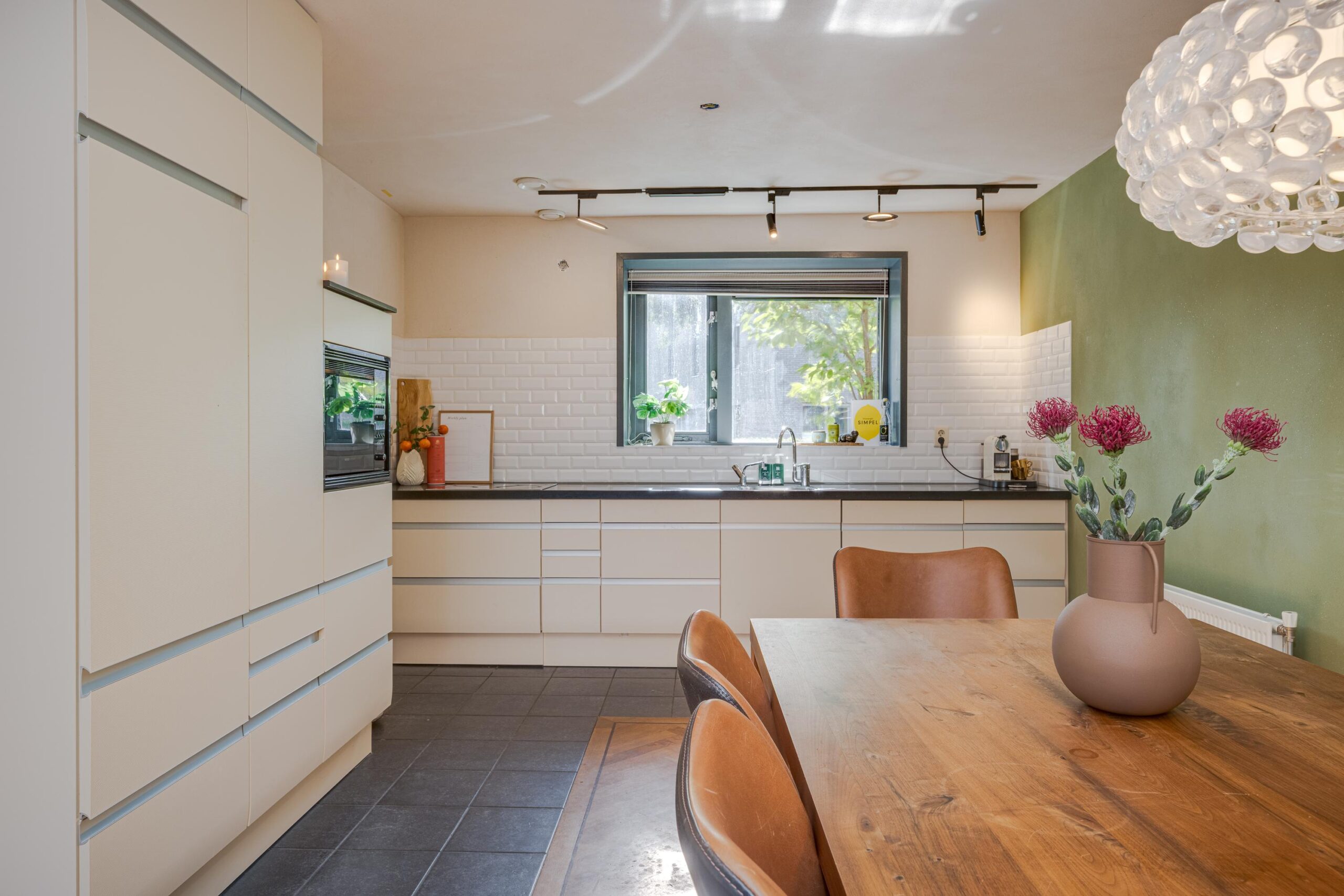 Aan de voorzijde van de woning de grote moderne open keuken voorzien van diverse inbouwapparatuur.