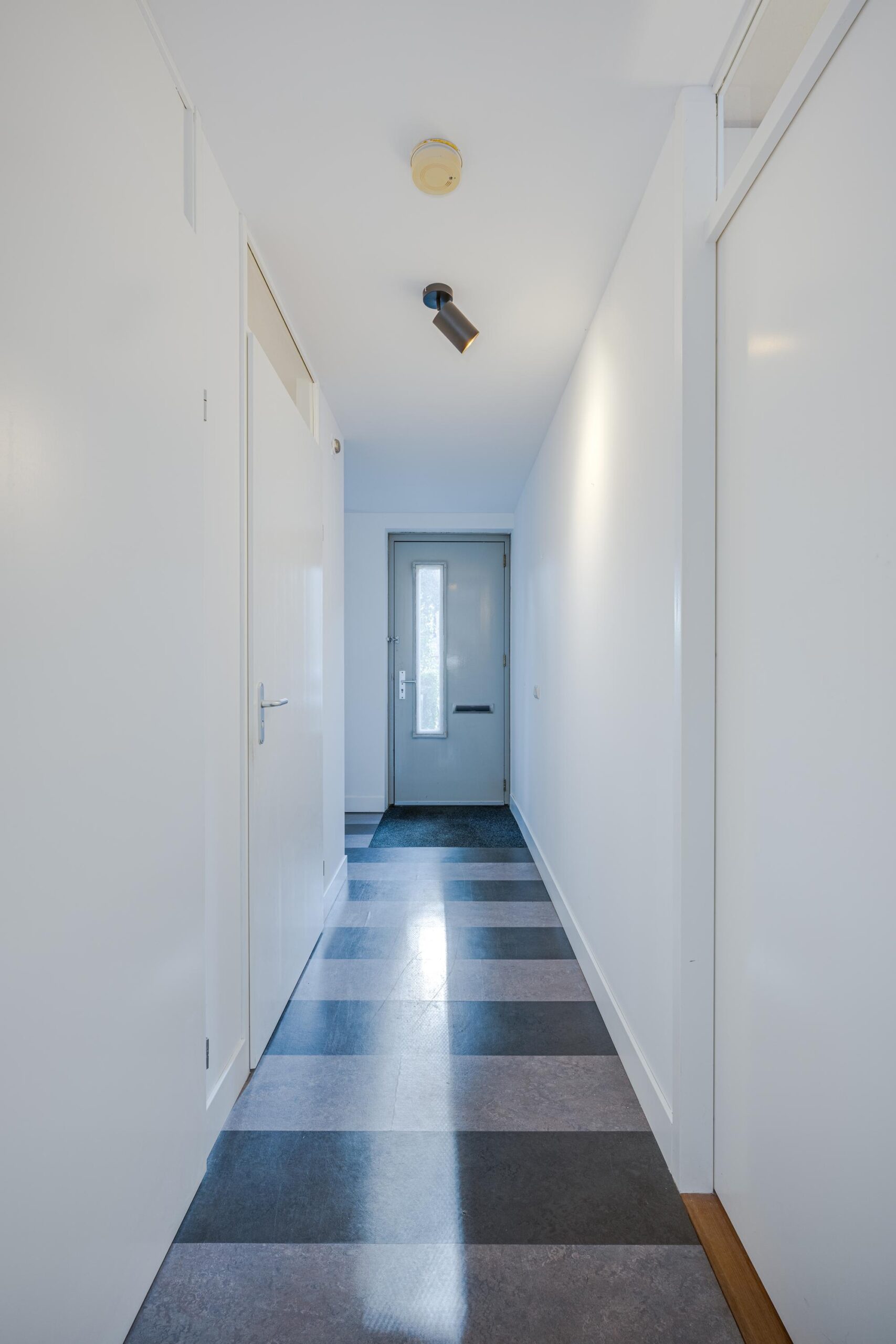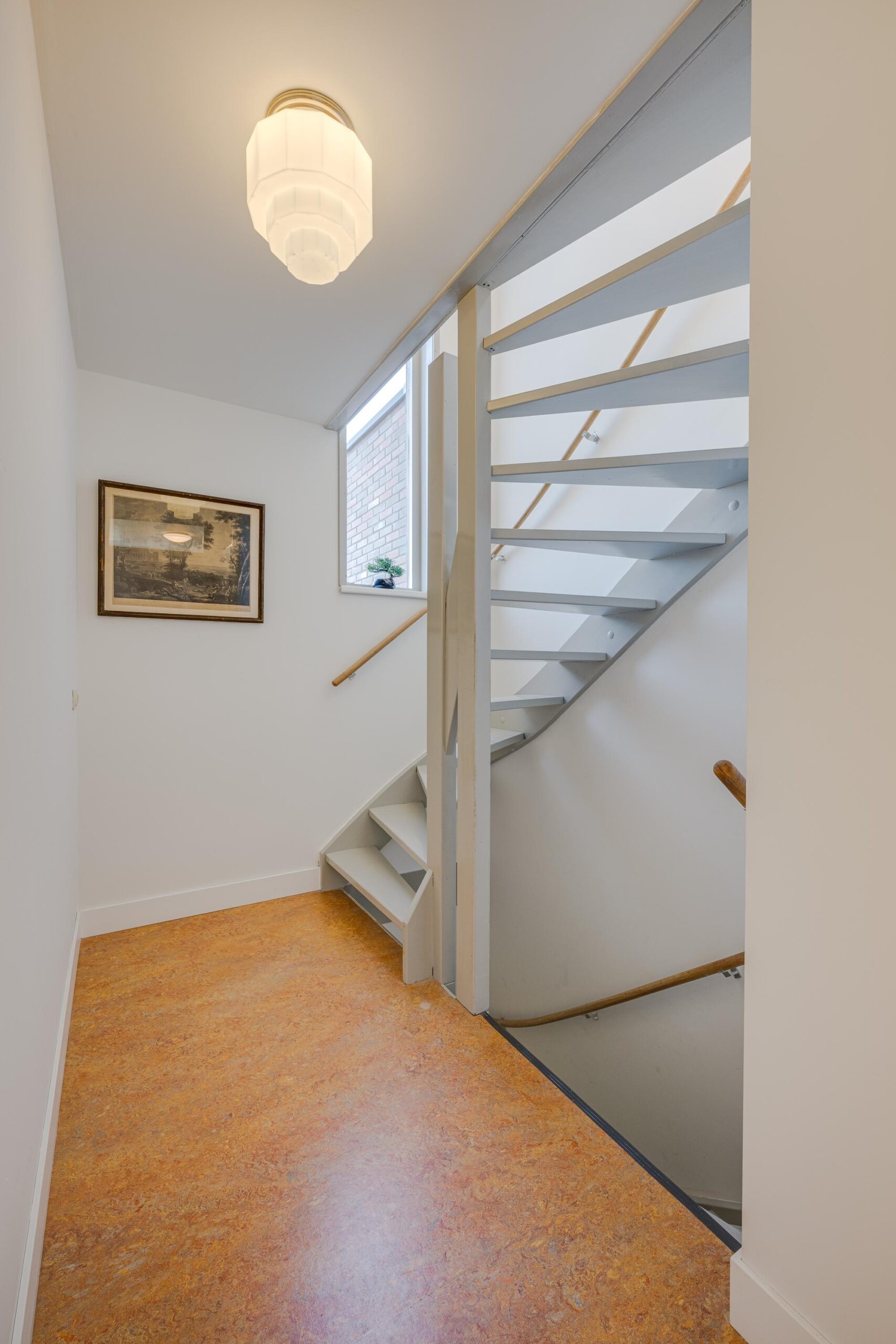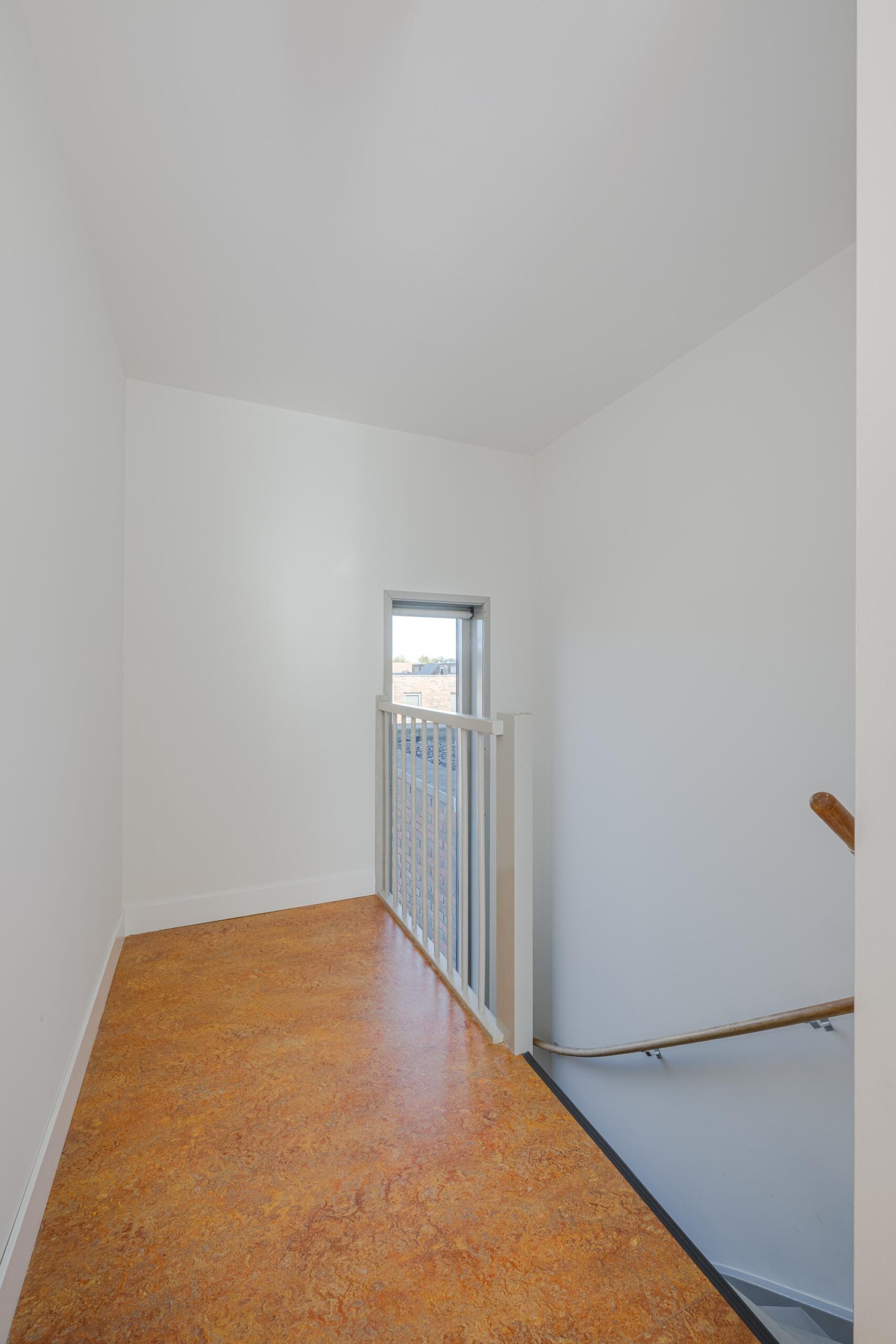 Overloop met kast voor de opstelplaats cv combi ketel (2023), zonneboiler en wasmachine en 2 slaapkamers.