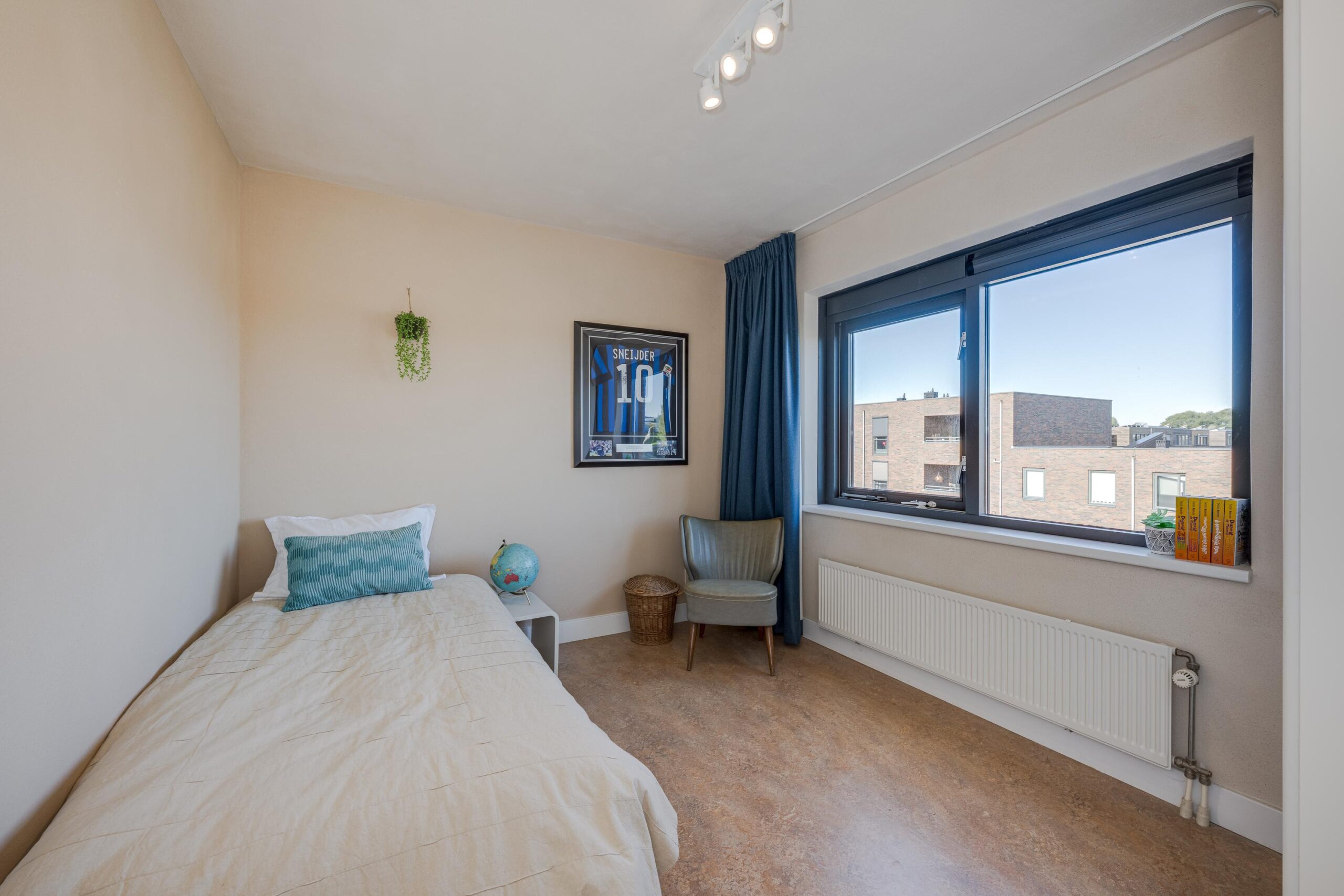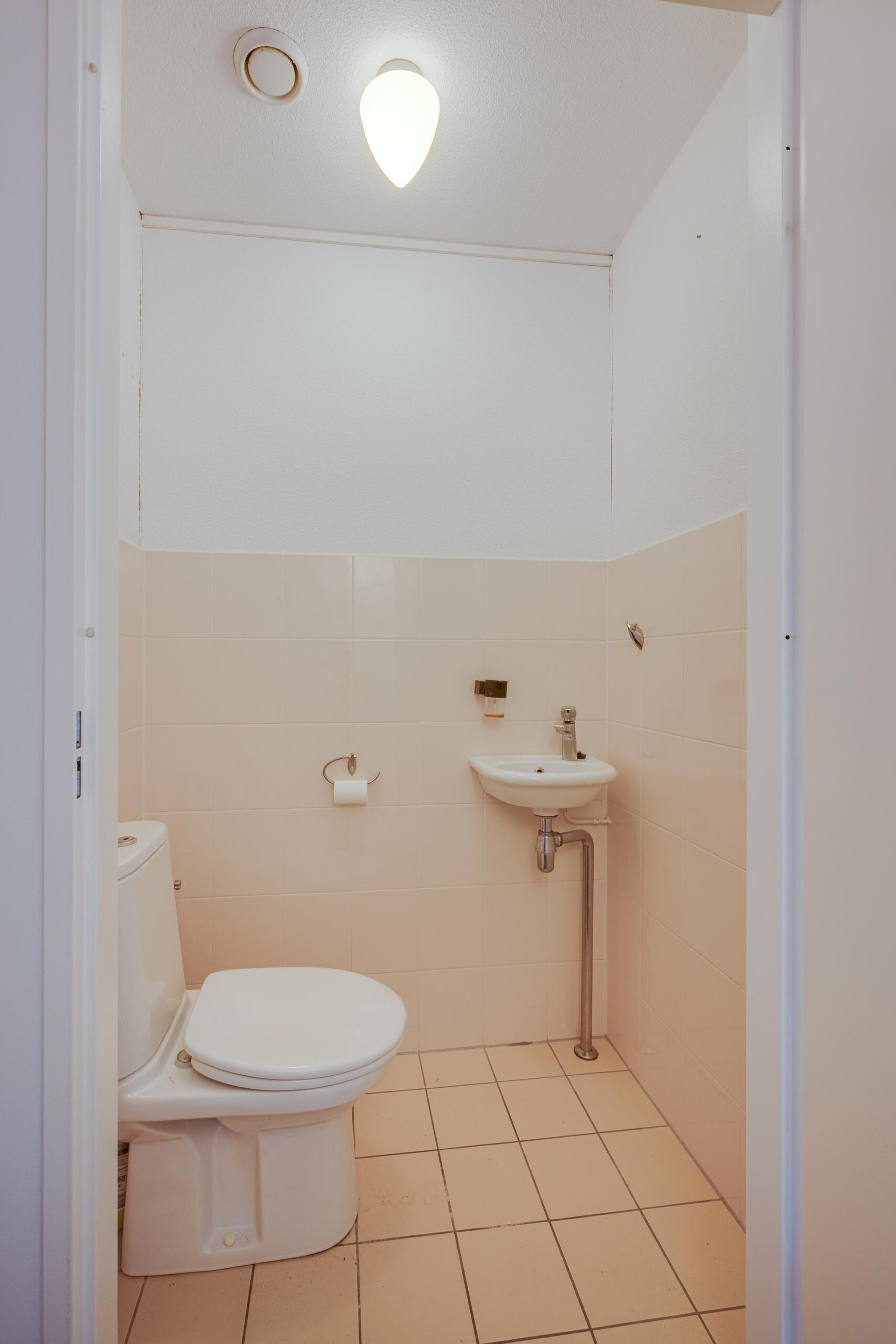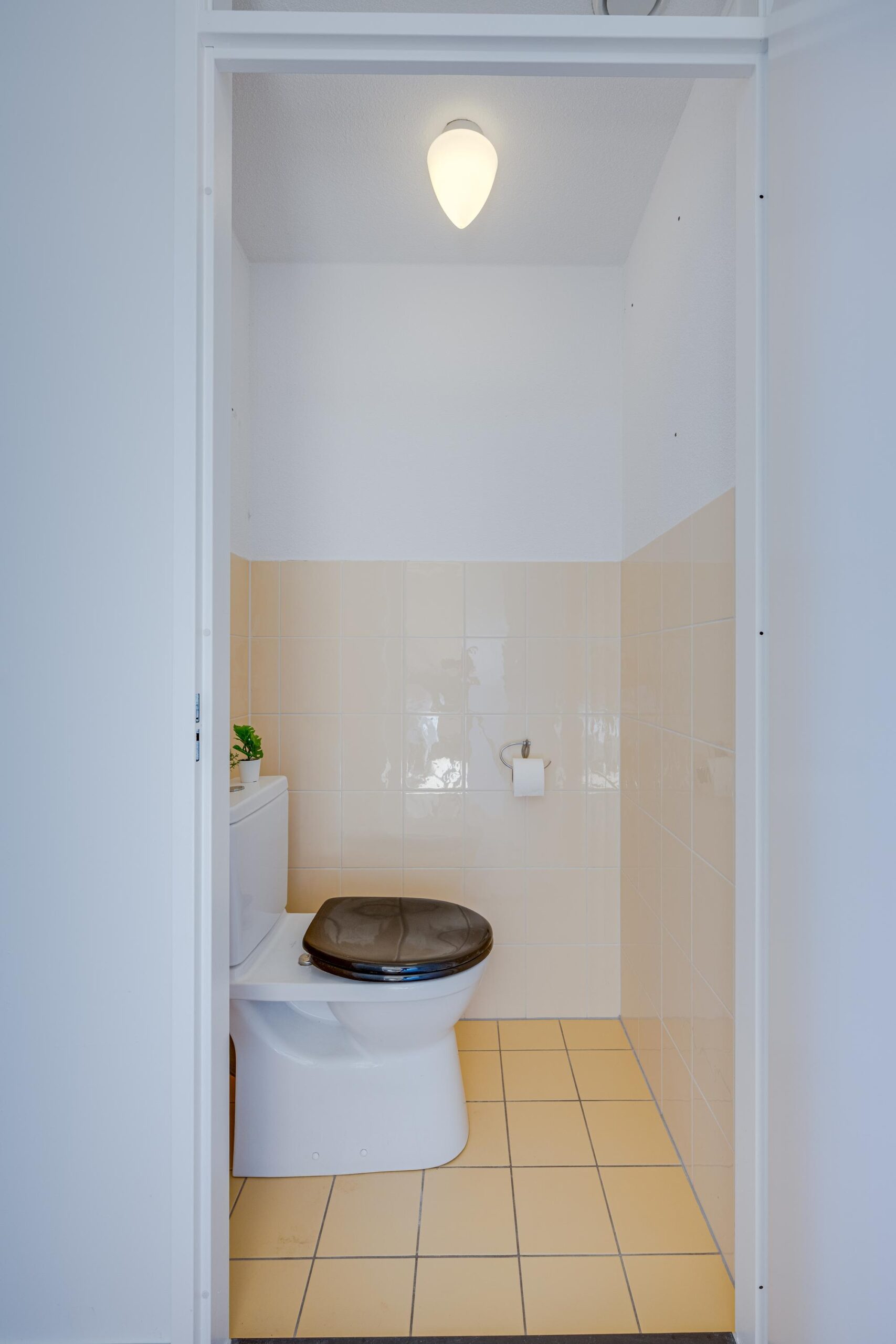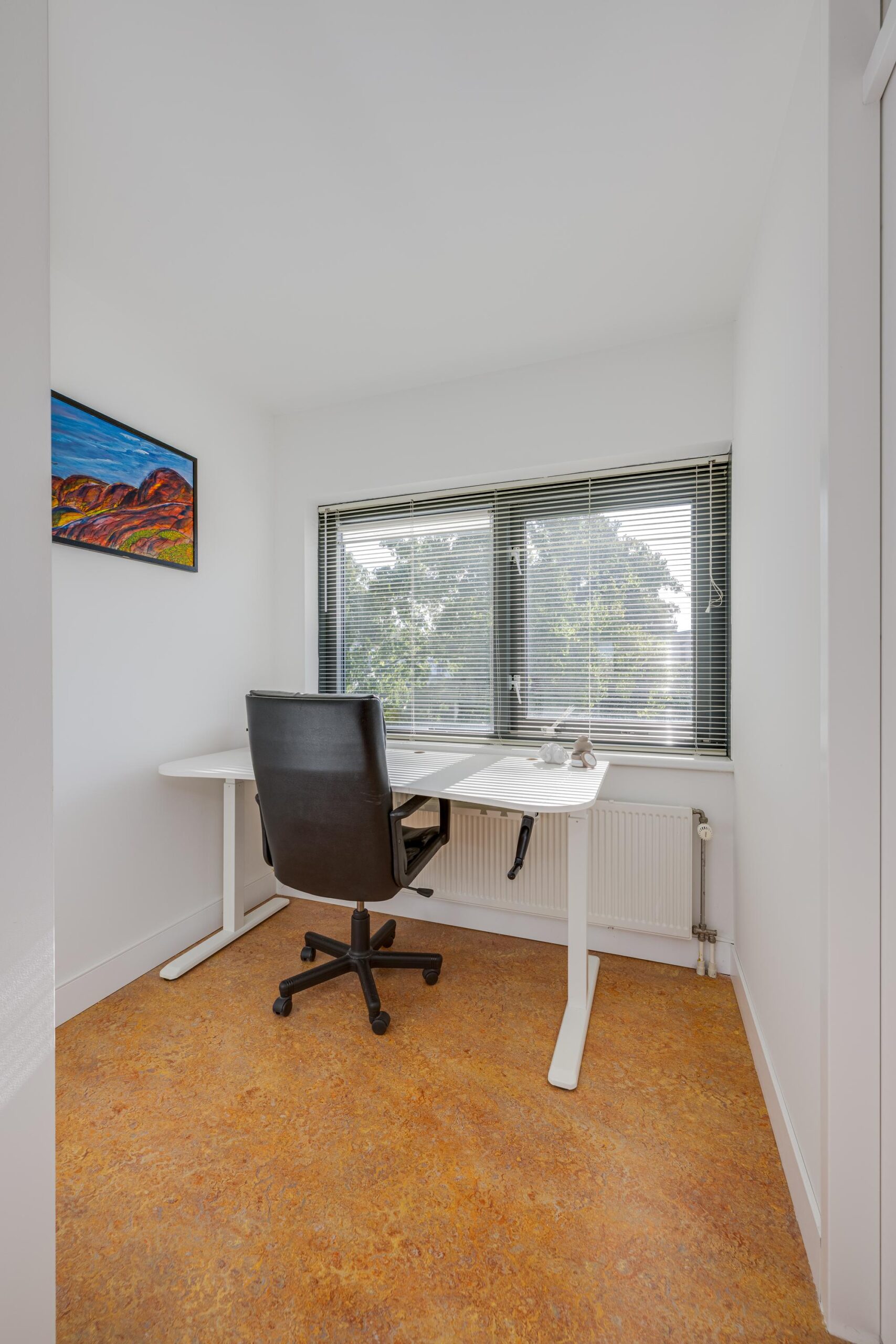Overloop, 2e toilet, prachtige, nieuwe badkamer met vloerverwarming en een zeer ruime slaapkamer (die op eenvoudige wijze omgetoverd kan worden in twee slaapkamers). Zoals gezegd: ‘door middel van een opbouw is deze verdieping met 30 m2 uit te breiden waardoor er ruimte ontstaat voor drie grotere slaapkamers.