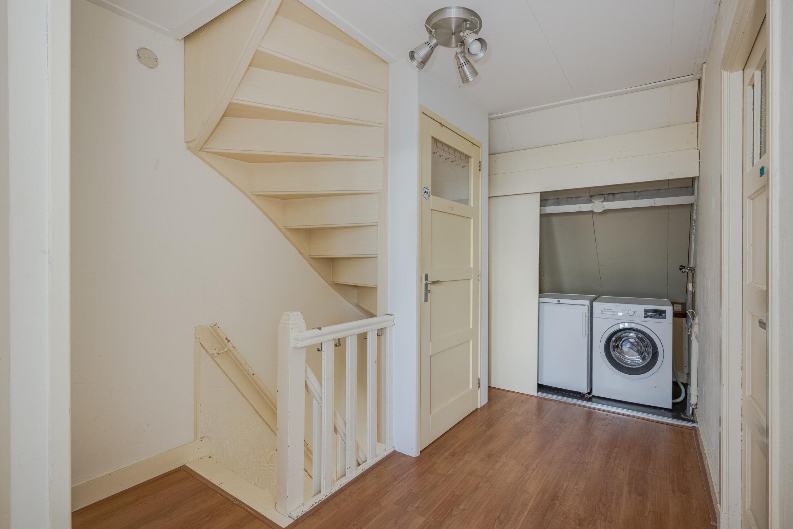 Begane grond: entree met meterkast, trap naar 1e verdieping en berging aan de achterzijde van de woning die ruimte bied aan meerdere fietsen.
