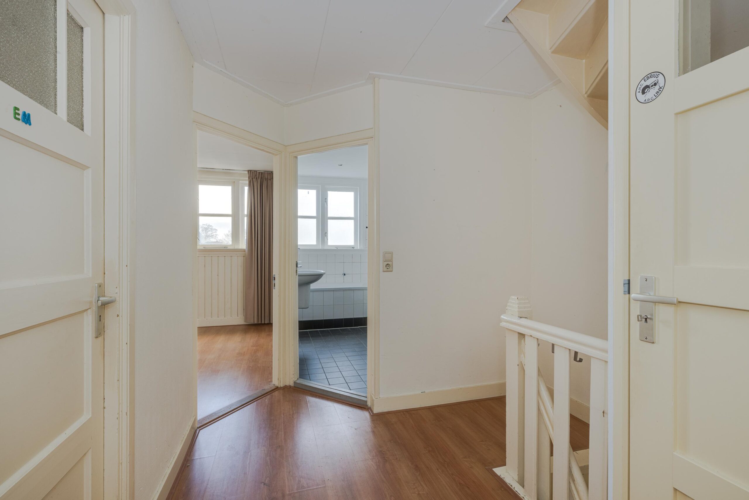 2e verdieping: grote overloop met toegang tot twee slaapkamers, badkamer met toilet en bad, aansluiting voor wasmachine en vaste trap naar de zolder.