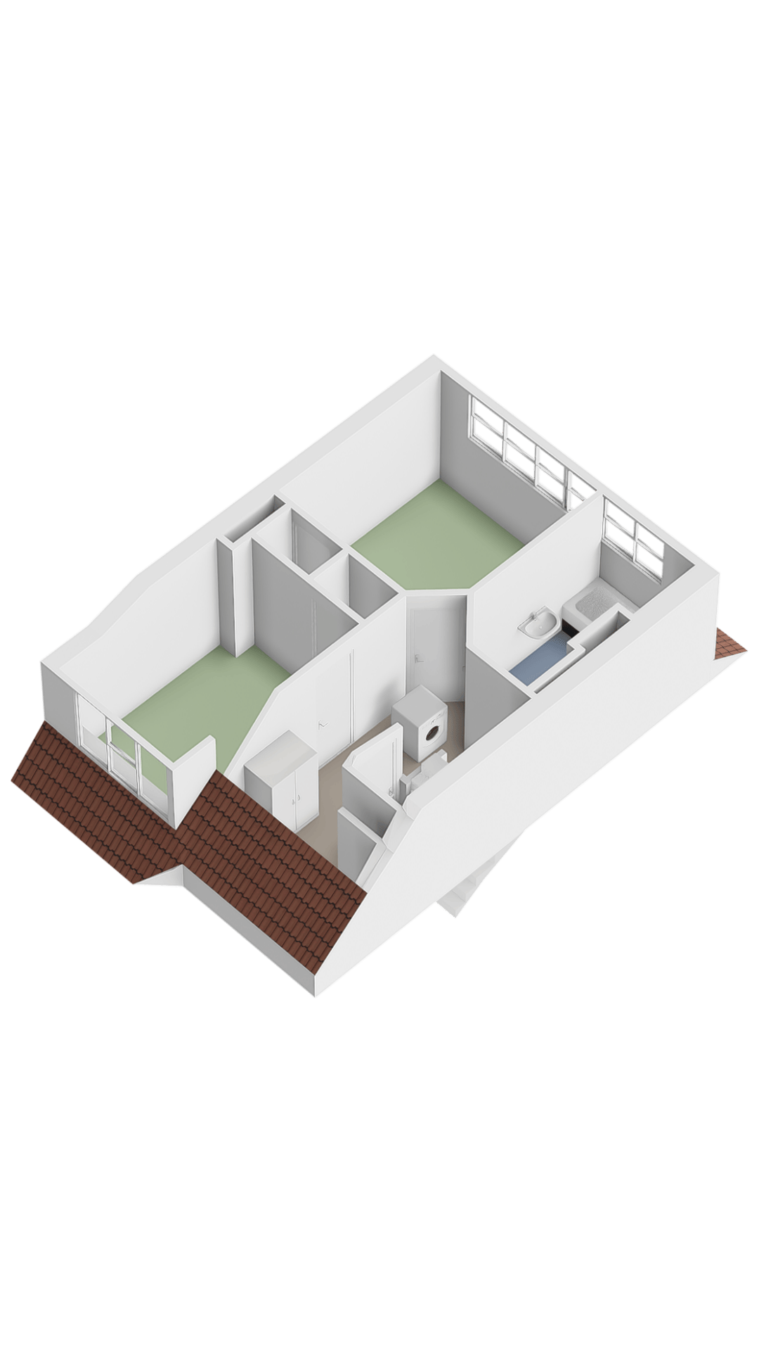 Zolder: de ruime zolder beschikt over twee grote dakramen waardoor het perfect al slaapkamer kan fungeren.