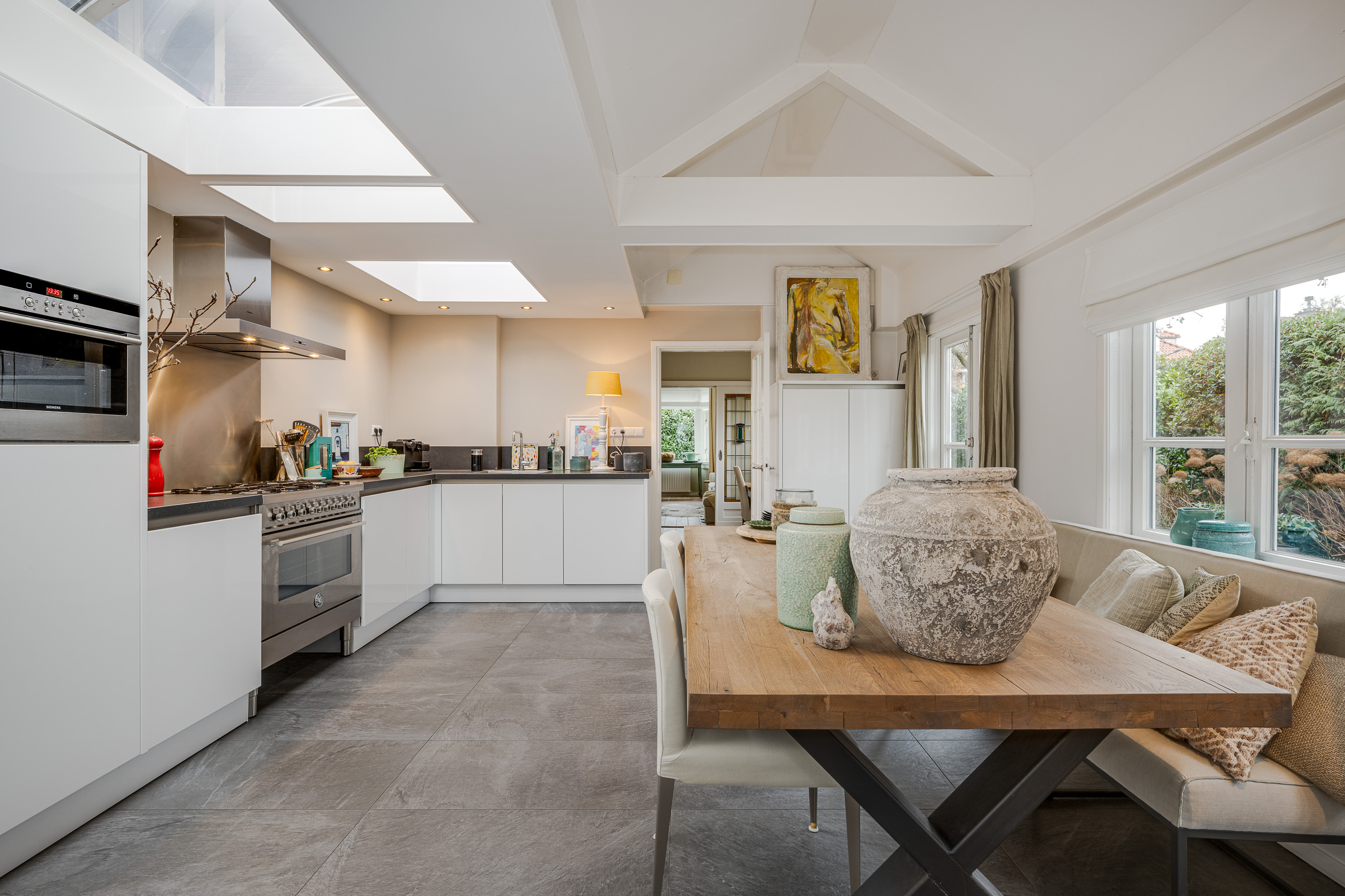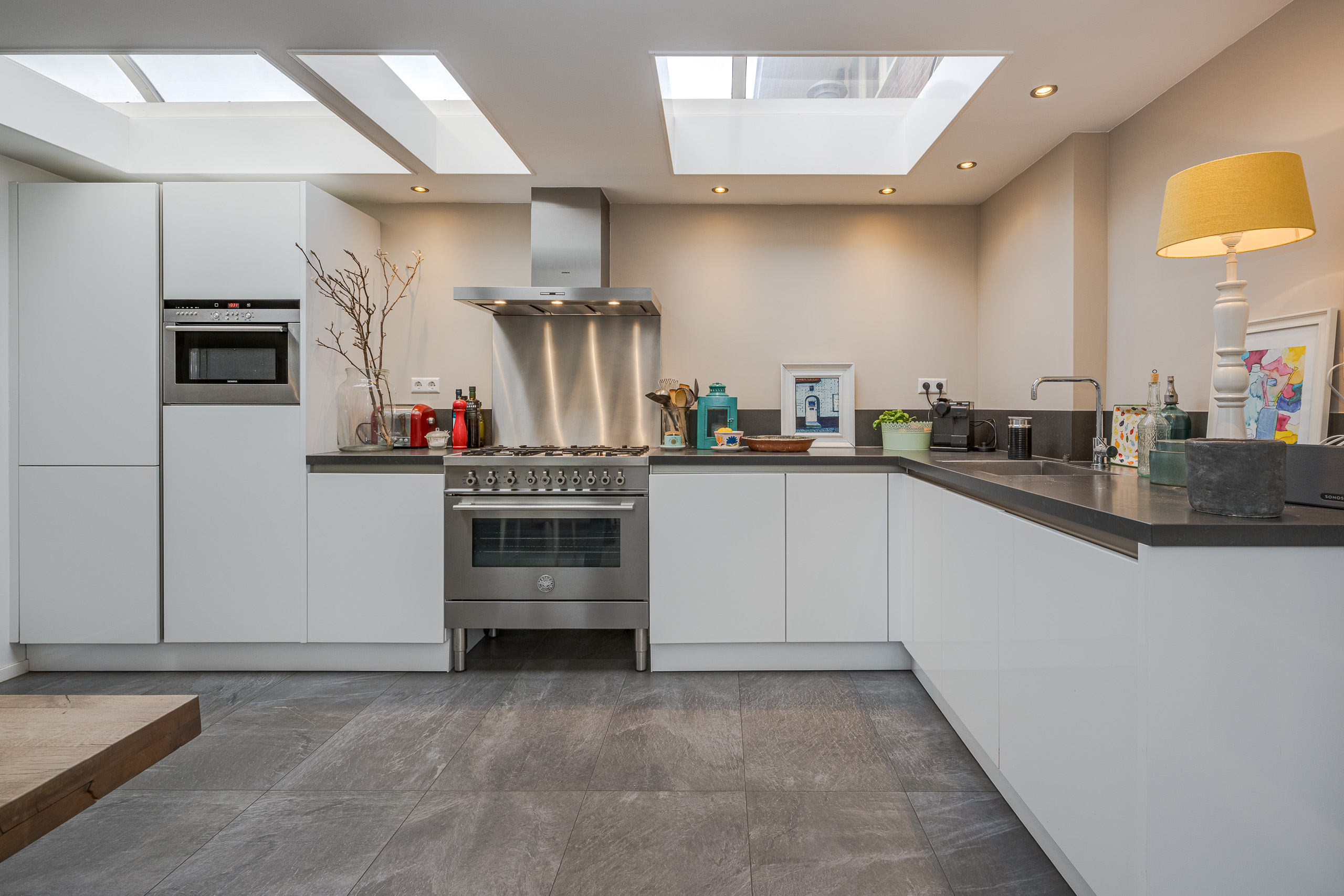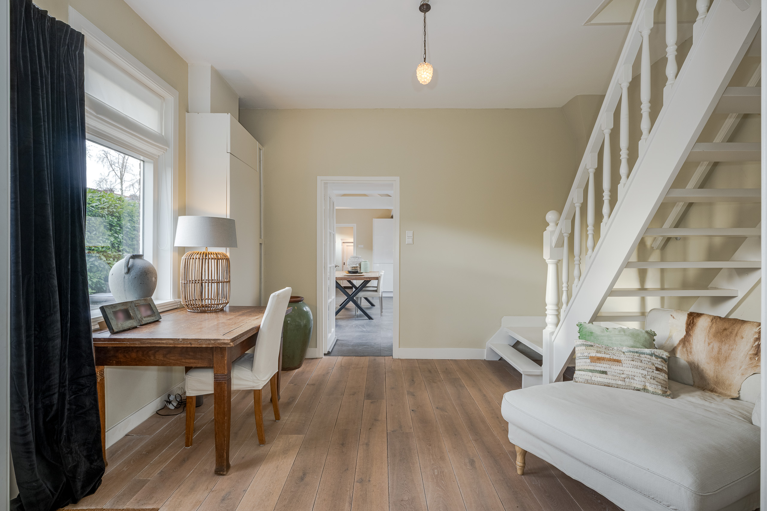 Zo mag je deze jaren ’30 woning wel noemen. Wat een “warme deken” valt er hier over je heen als je deze woning betreed. Zo fijn, zo bijzonder! Wat maakt deze woning zo bijzonder: vooral de keuken, die de woonkamer met de voormalige garage verbindt zorgt voor een uniek(e) gevoel en beleving. De woonkeuken is het centrale middelpunt van de woning. Hier ga je lekker borrelen, koken en eten om vervolgens met je familie en/of vrienden tot een mooie avond te komen. Bewoners hebben de voormalige garage tot woonruimte omgebouwd. Deze kamer is nu te gebruiken als slaap- werk- of speelruimte. Heb jij liever een garage? Dat is op eenvoudige wijze te realiseren. Deze woning ligt met de voor- en zij tuin op het zuidwesten en heeft hierdoor volledige privacy. Zo heb je op ieder moment van de dag de mogelijkheid om in de zon te zitten. De entree van deze woning is bijzonder ruim en aangenaam. Dat, tezamen met de mooie statige trap naar de 1e verdieping geeft de woning cachet. De vele originele details maken deze woning nog extra bijzonder. Een bezichtiging is hier zeker niet een “waste off time”.